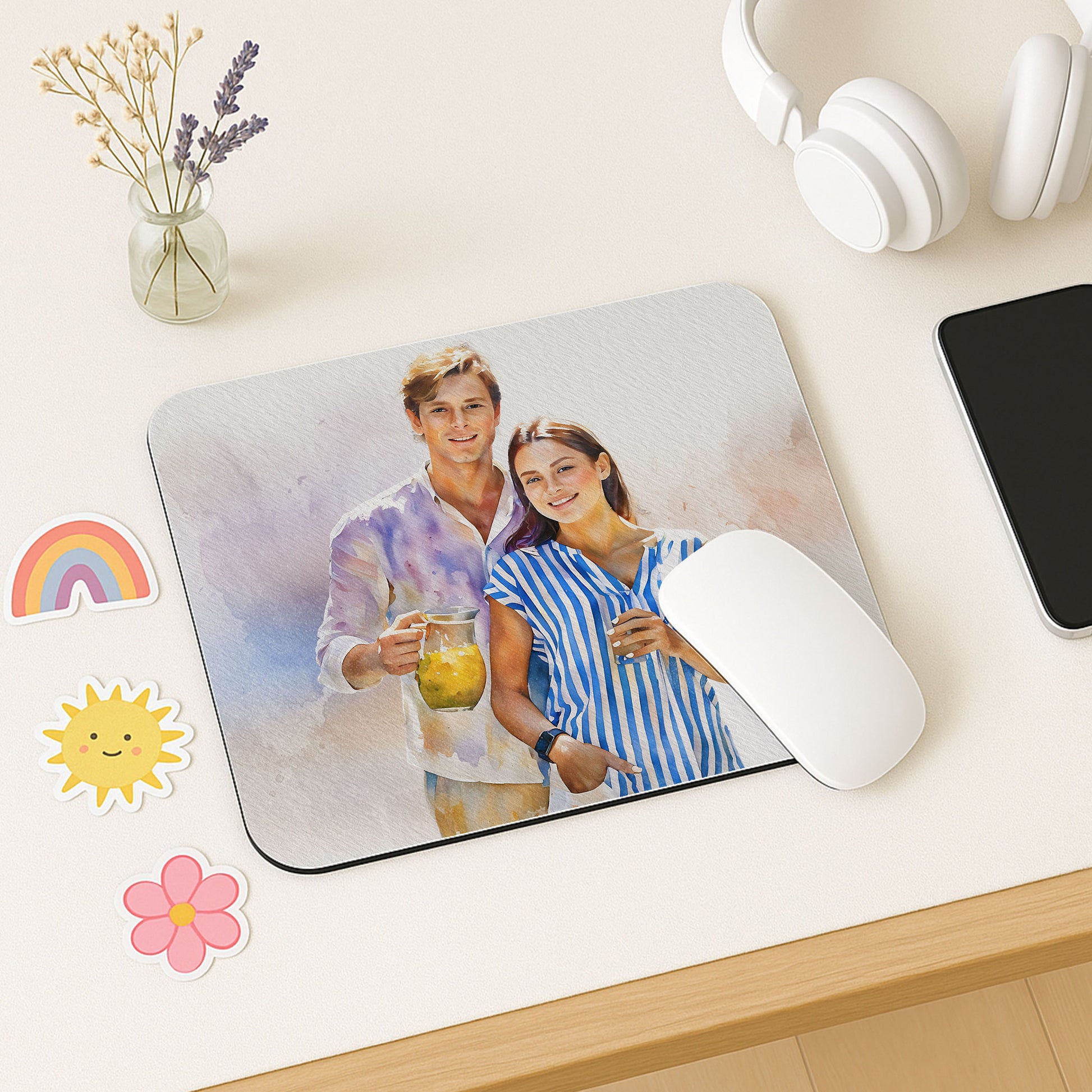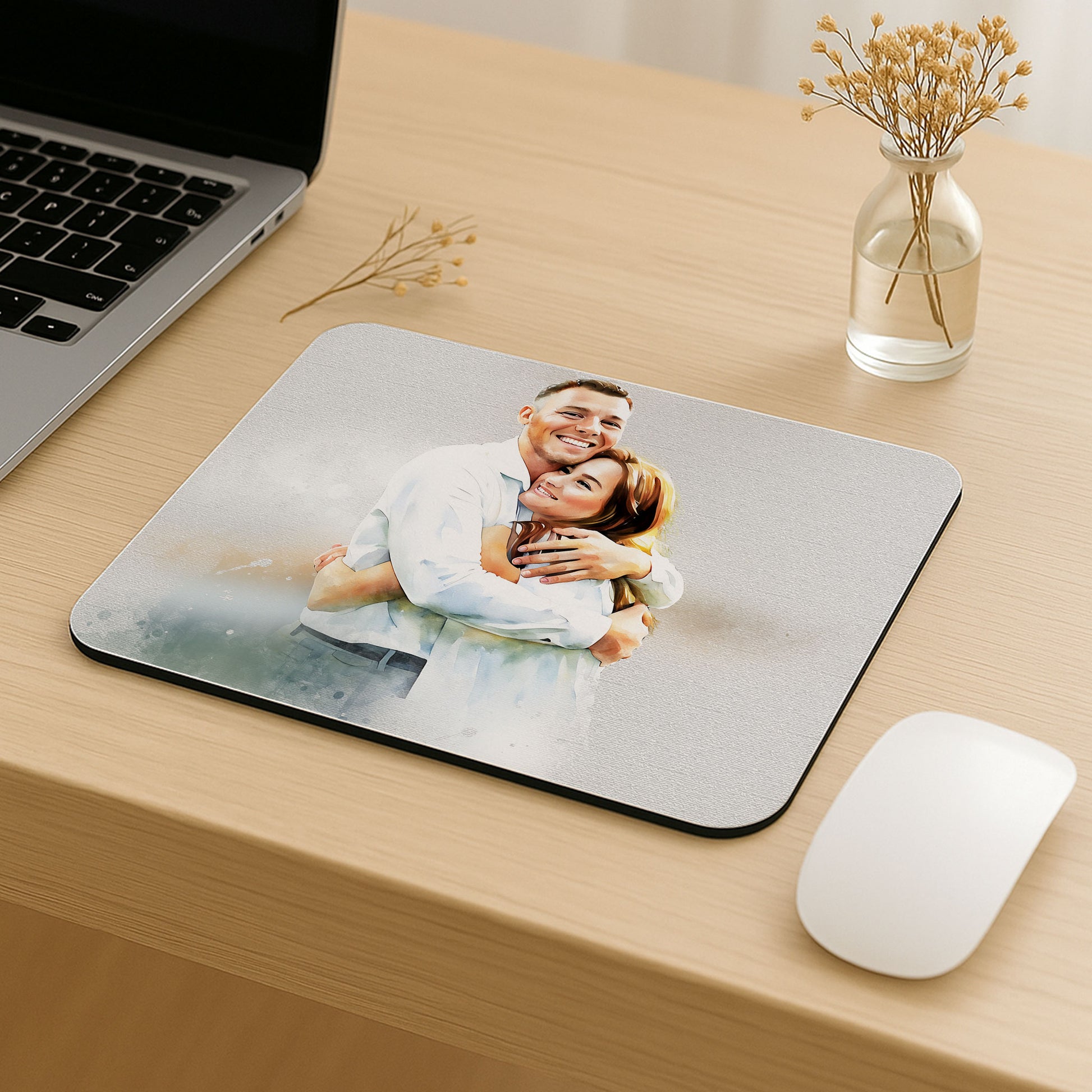 Personalized Photo to Art Love Picture Rectangle Mouse Pad Watercolor Style Gift For Couple
