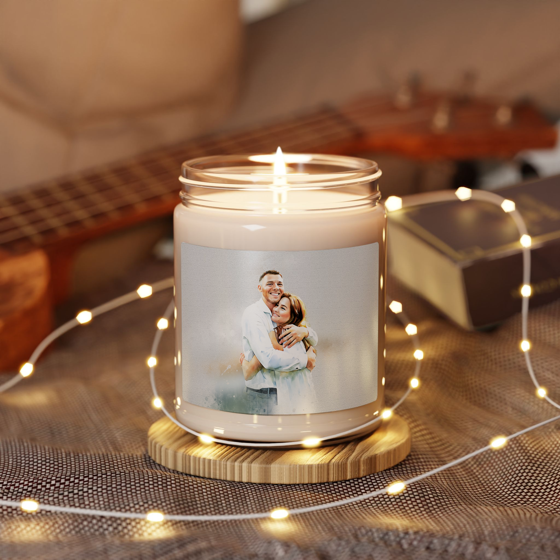 Personalized Photo to Art Love Picture 9oz. Scented Soy Candle Watercolor Style Gift For Couple