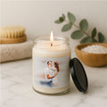Elevate your space with the warm glow and immersive aromas of our premium soy candles. Hand-poured into a sleek 9oz glass jar, each candle is crafted with care using a 100% natural soy wax blend, cotton wick, and finished with a glossy permanent label featuring your custom design.