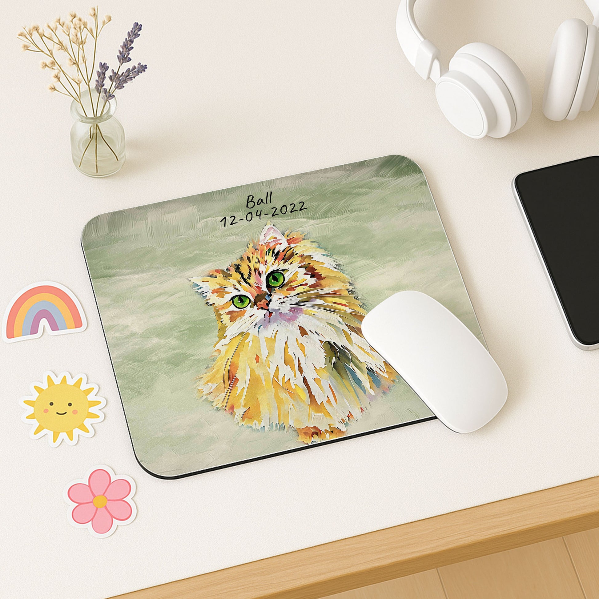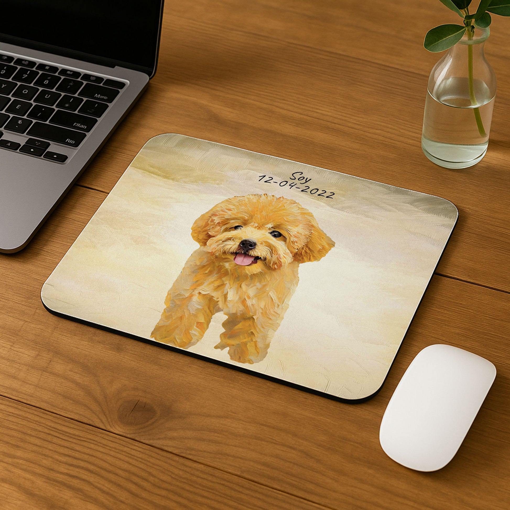 Personalized Photo to Oil Painting Pet Portrait Rectangle Mouse Pad Illustration Style Gift for Dog & Cat Lovers