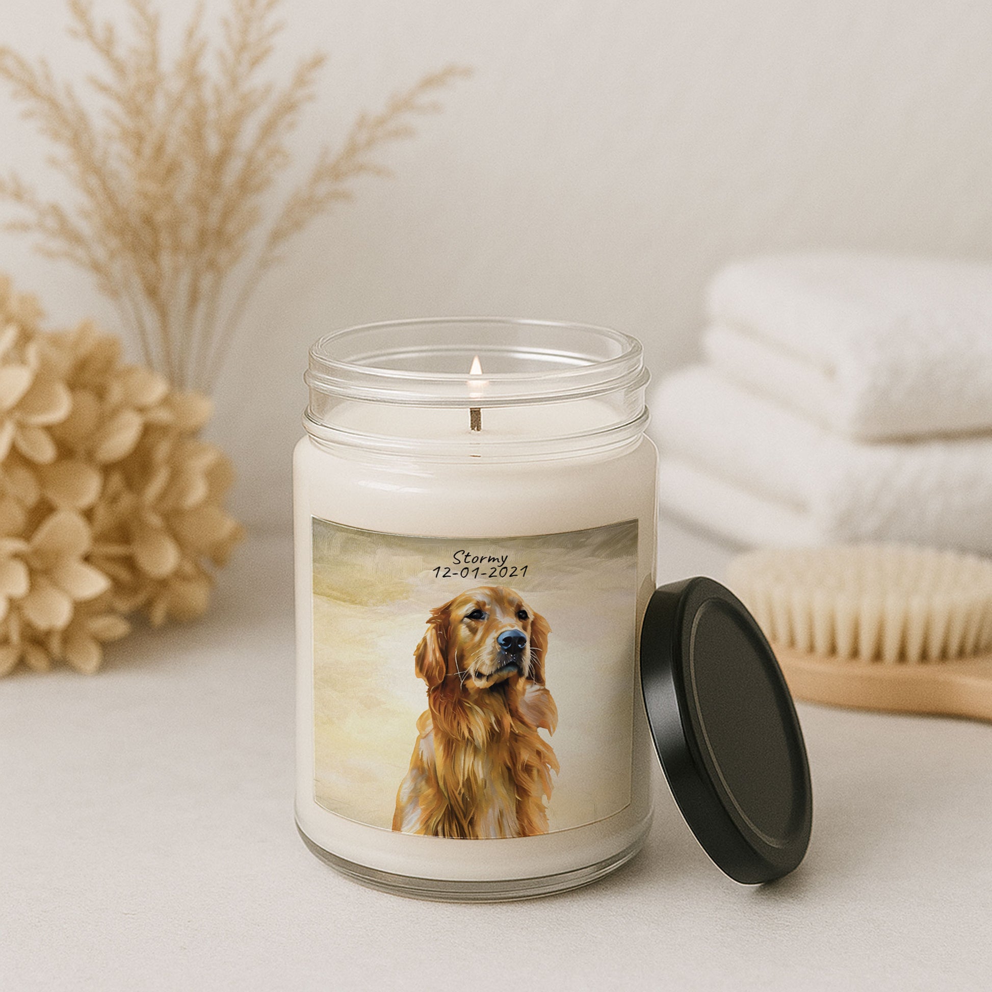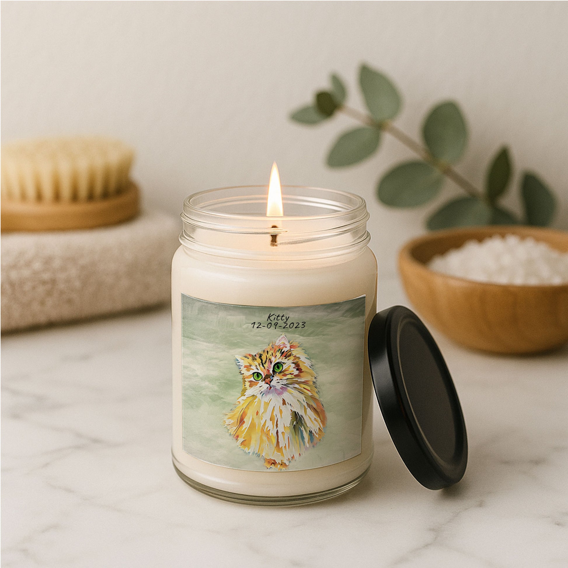 Personalized Picture to Drawing Pet Portrait 9oz. Scented Soy Candle Oil Painting Style Gift for Dog & Cat Lovers