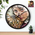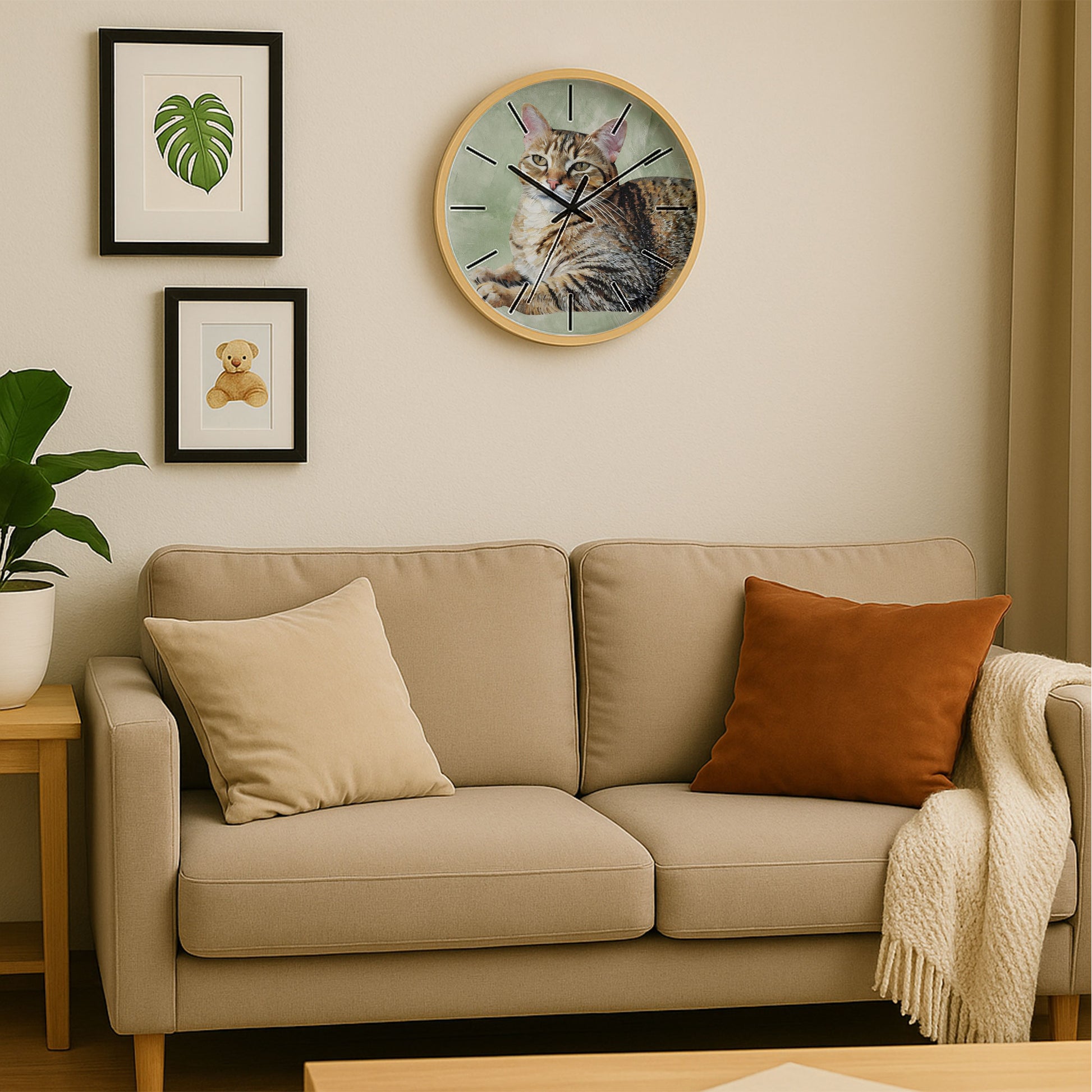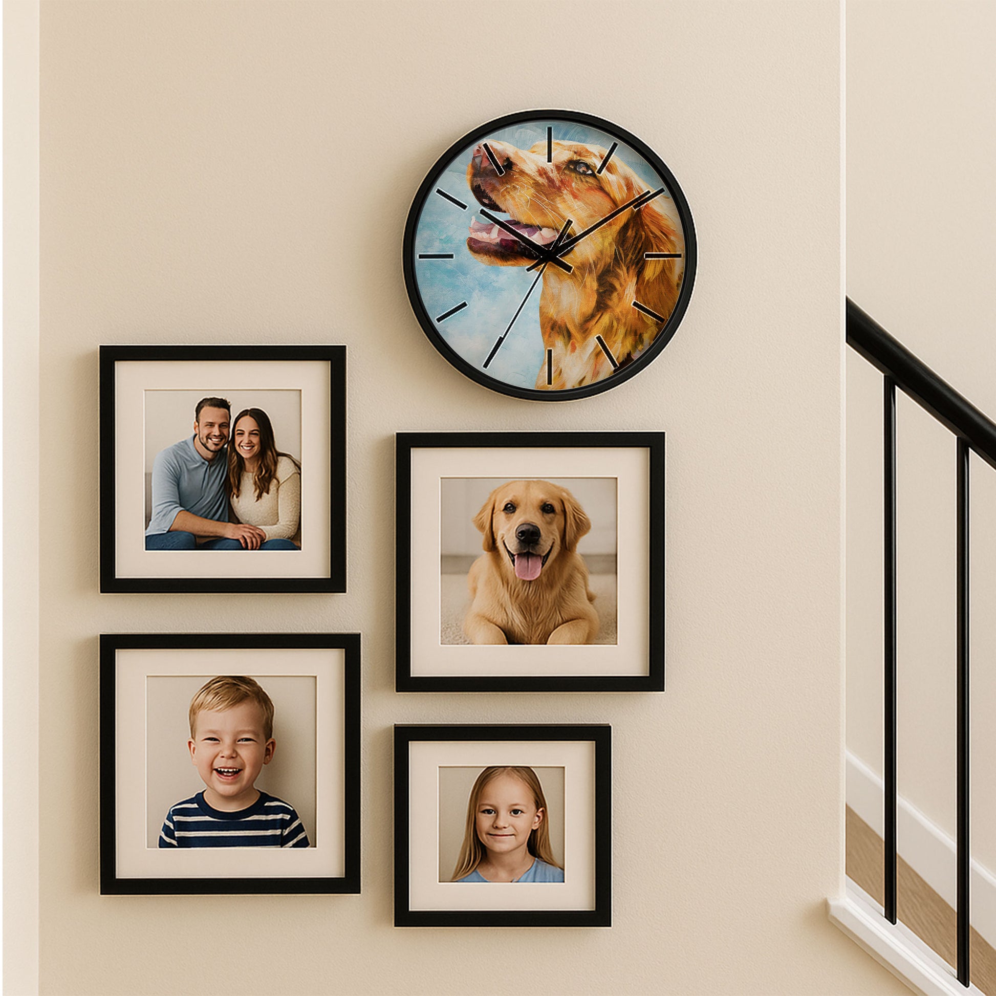 Personalized Photo to Oil Painting Pet Portrait Wall Clock Illustration Style Gift for Dog & Cat Lovers