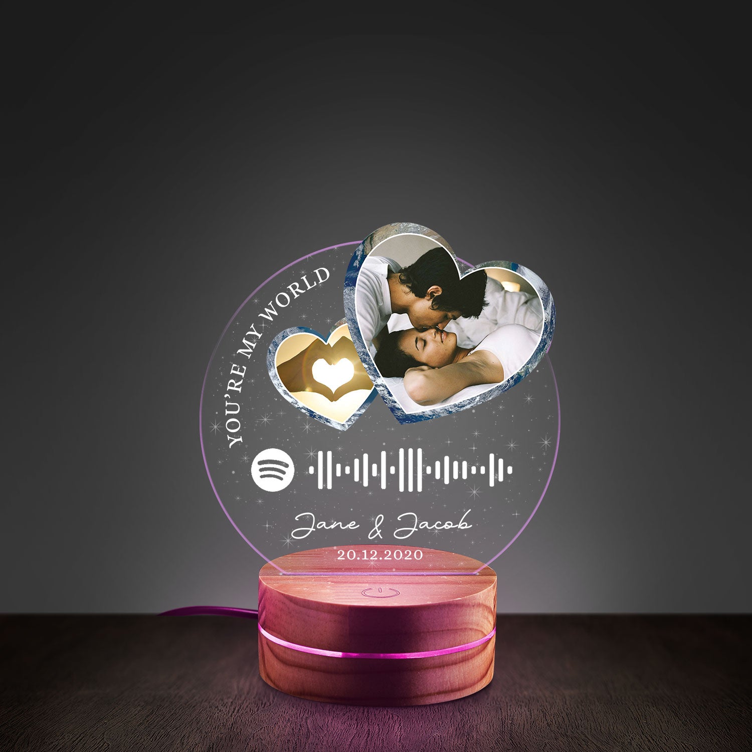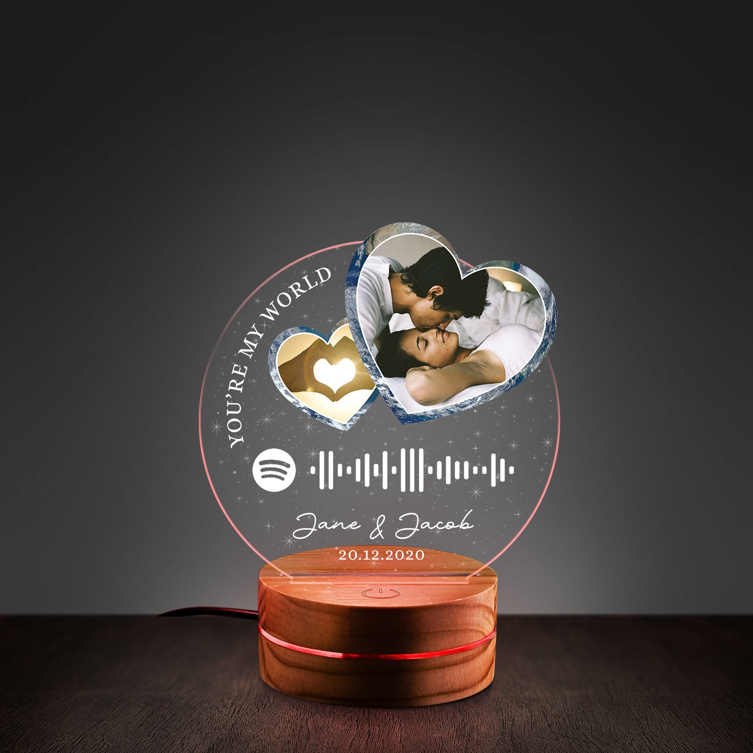 Personalized Photo Music Player Night Light - Custom Song Plaque Acrylic Lamp - Romantic Anniversary Gift with Names & Date