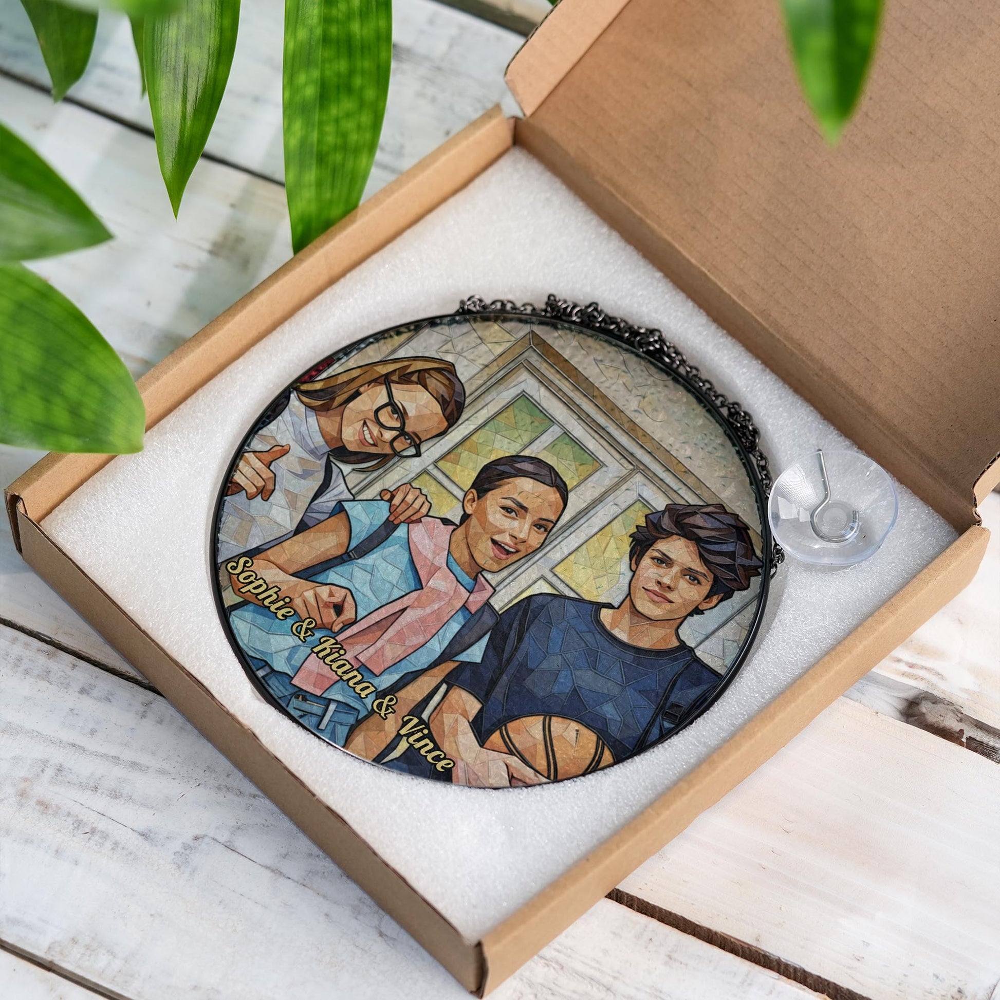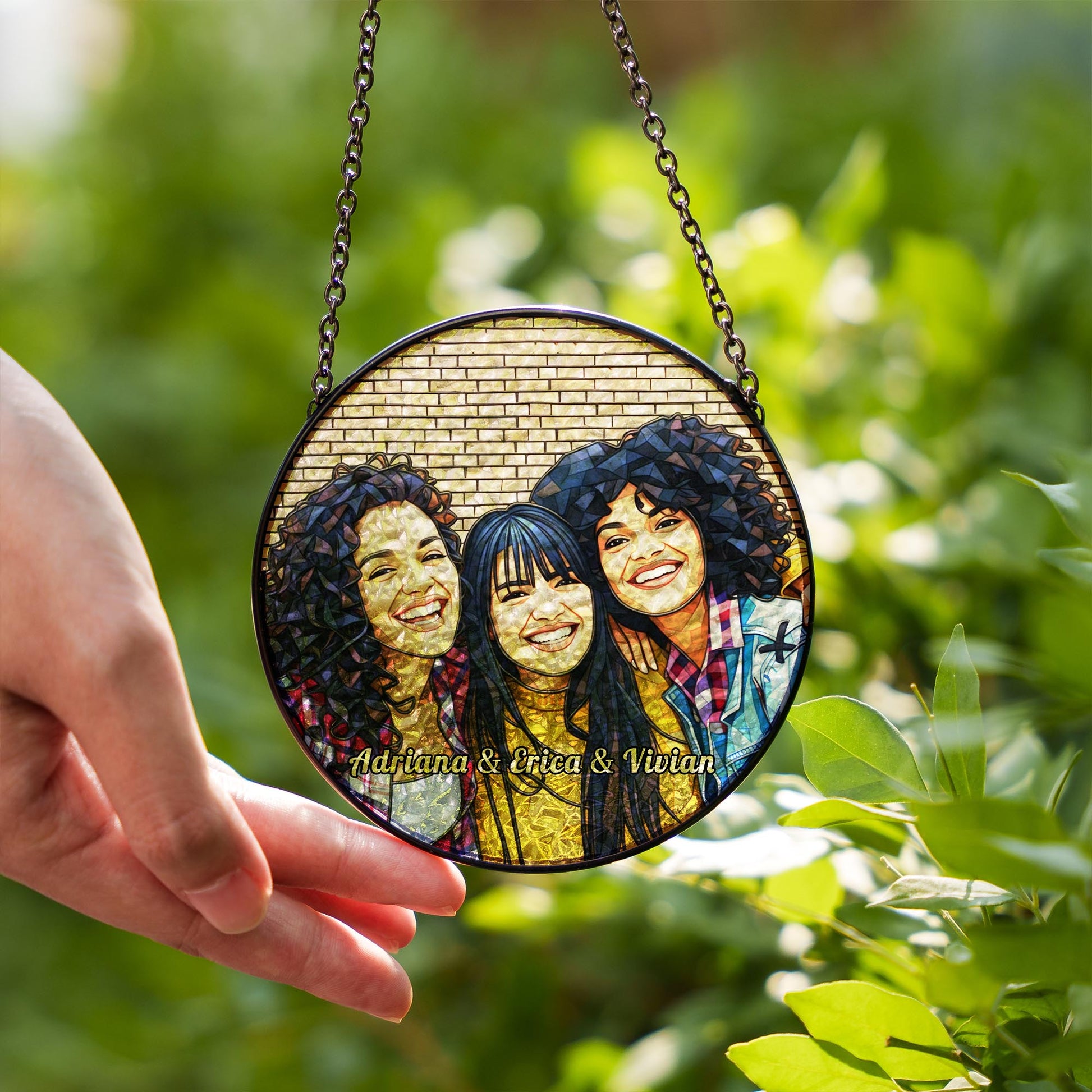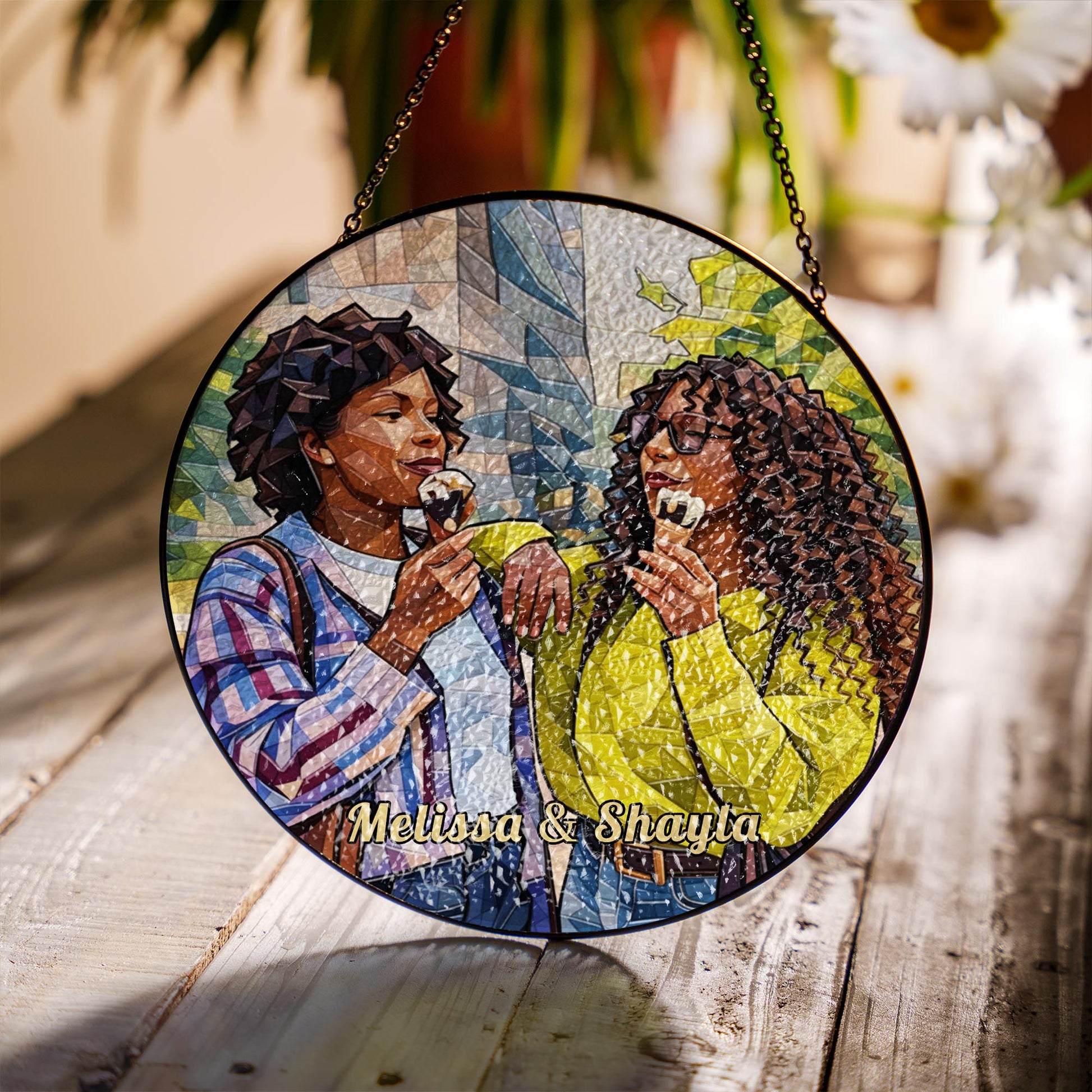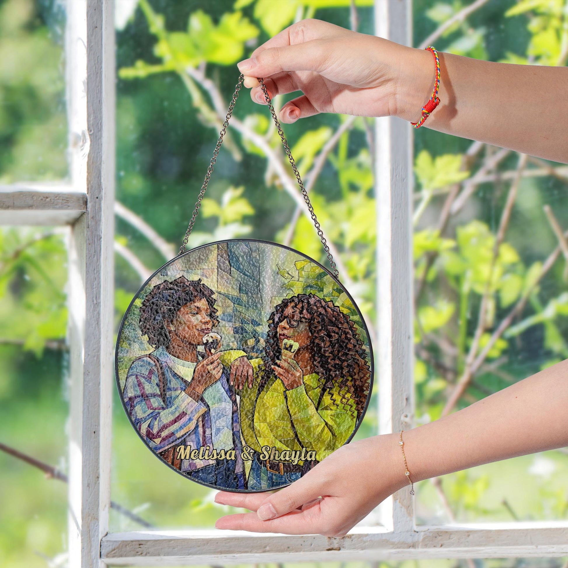 Personalized Best Friend Illustration Glass Suncatcher - Custom Gift for Besties, Long Distance Friendship & Birthday Window Decor