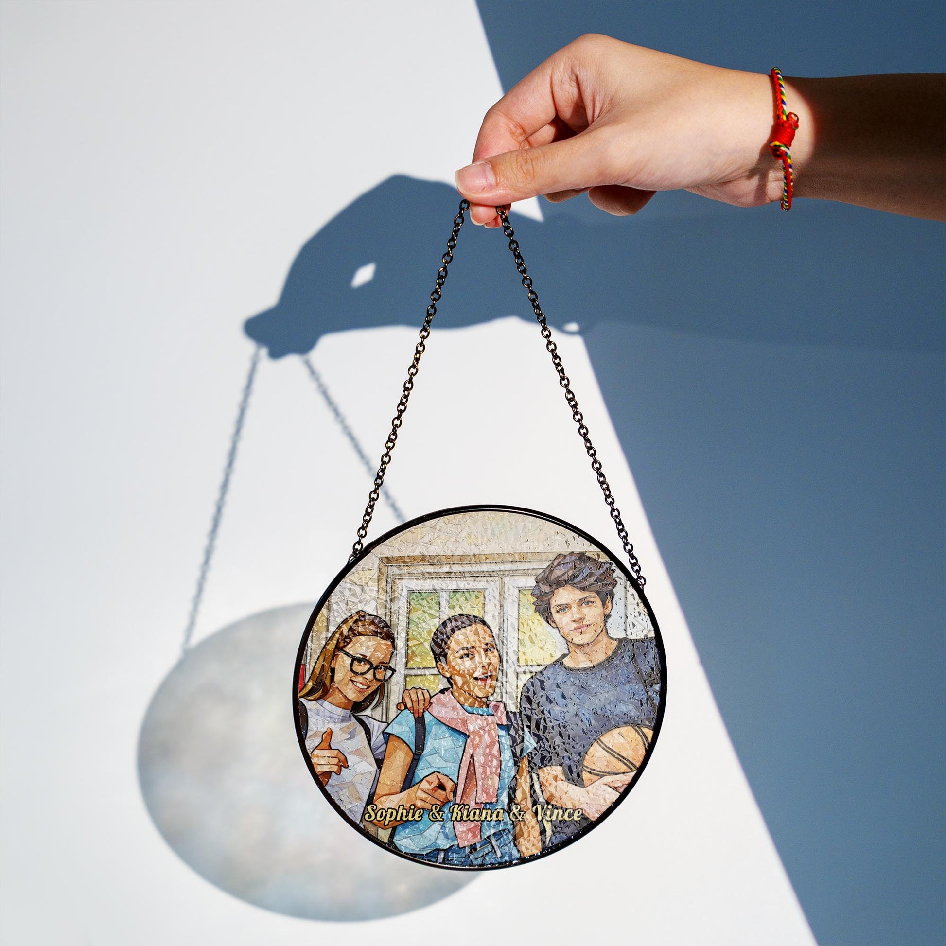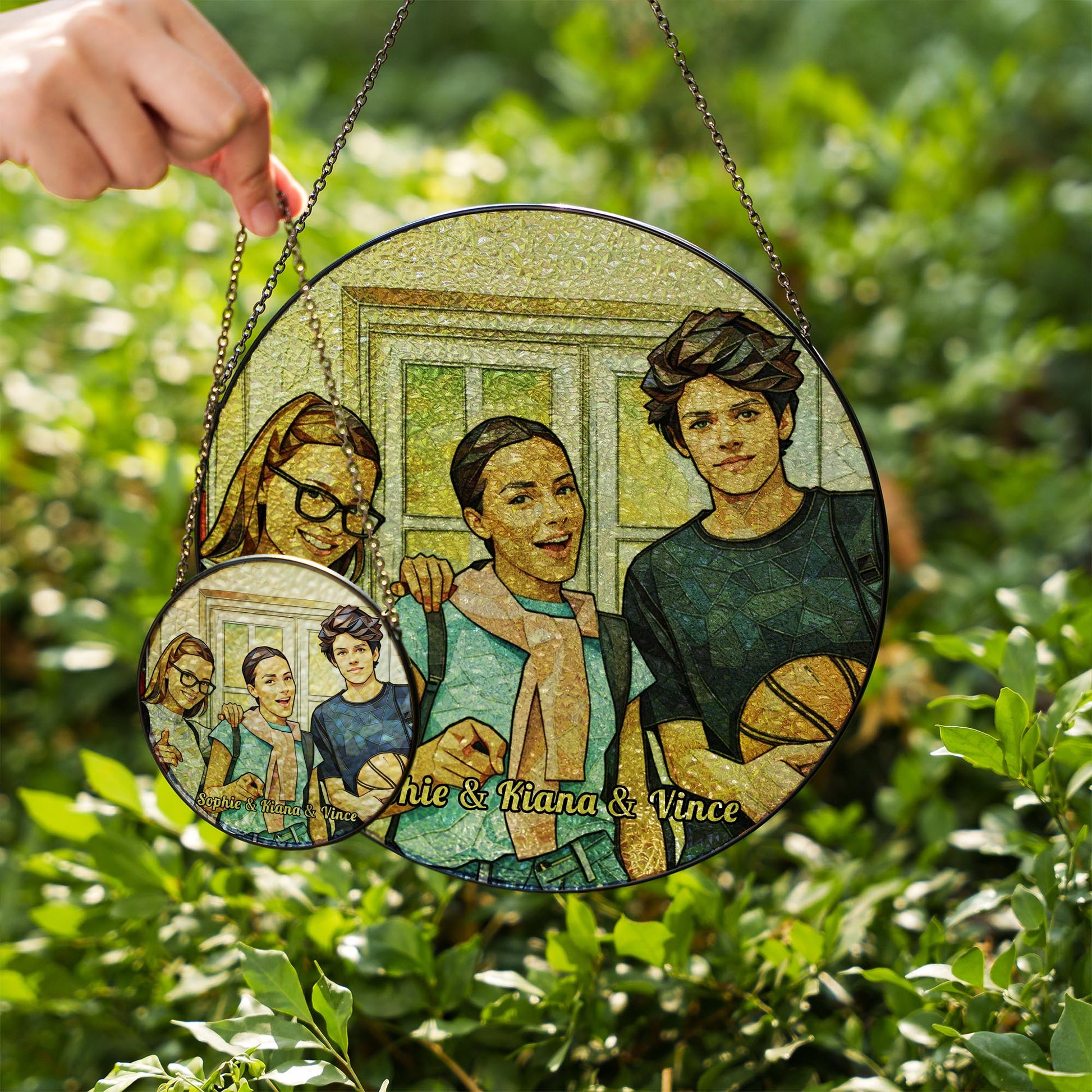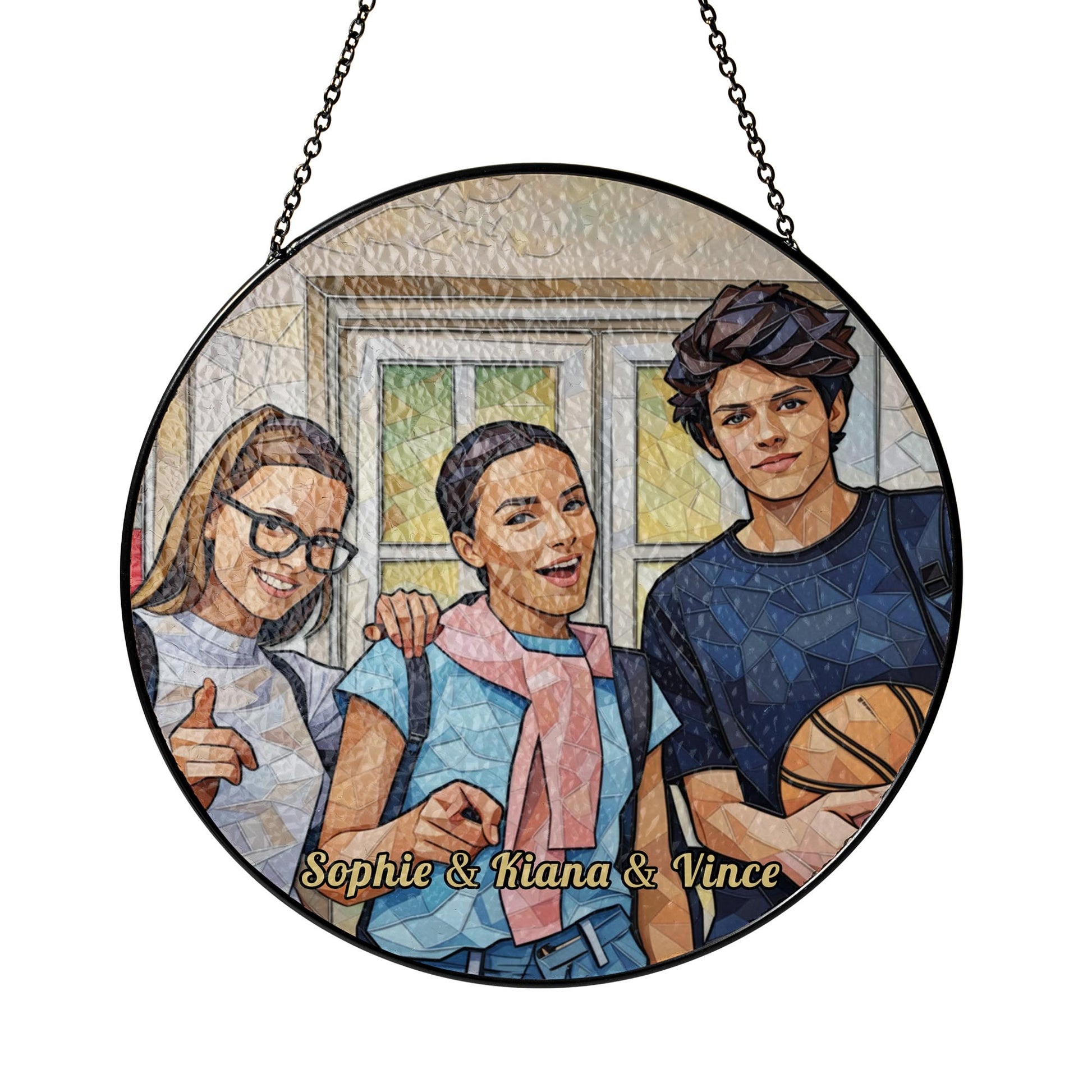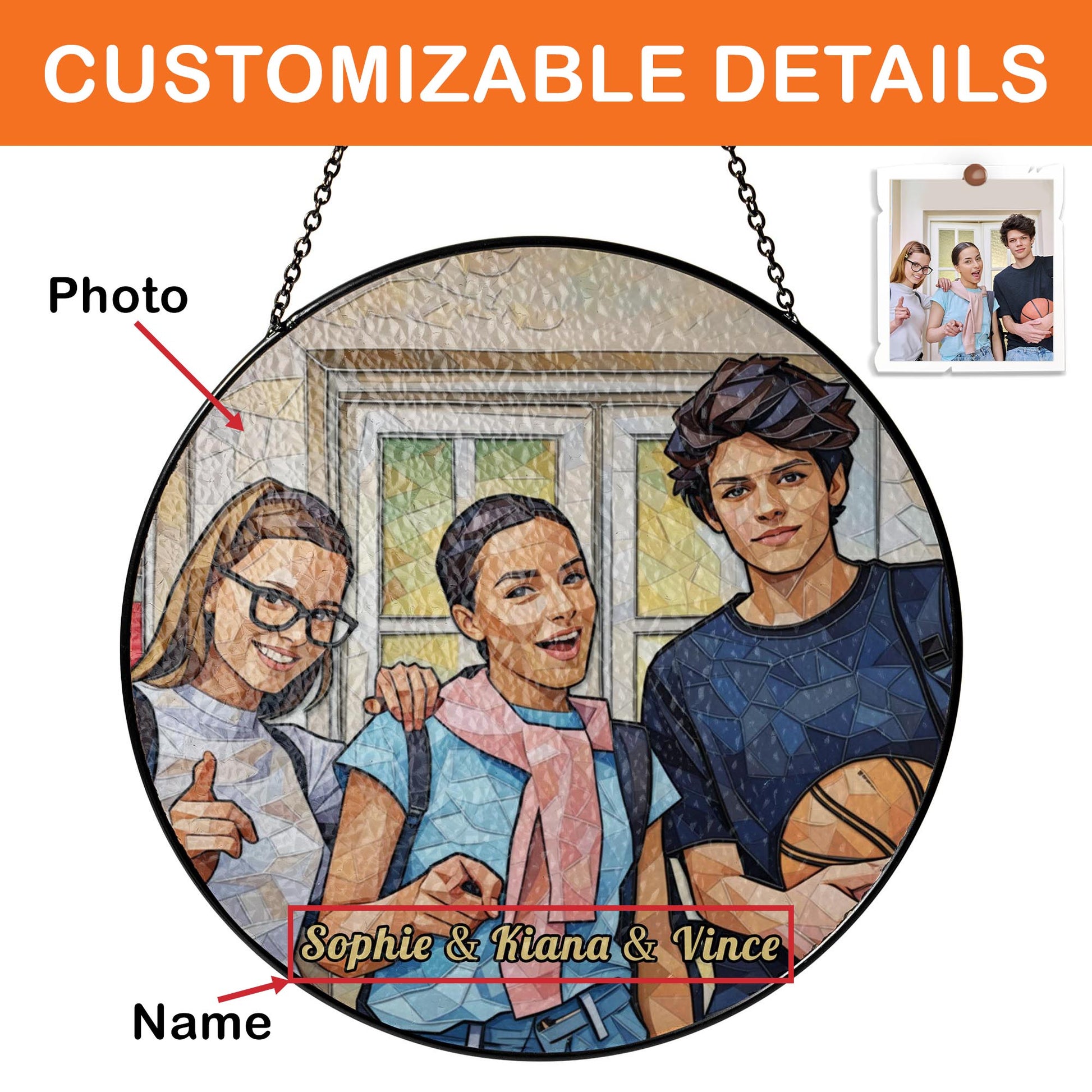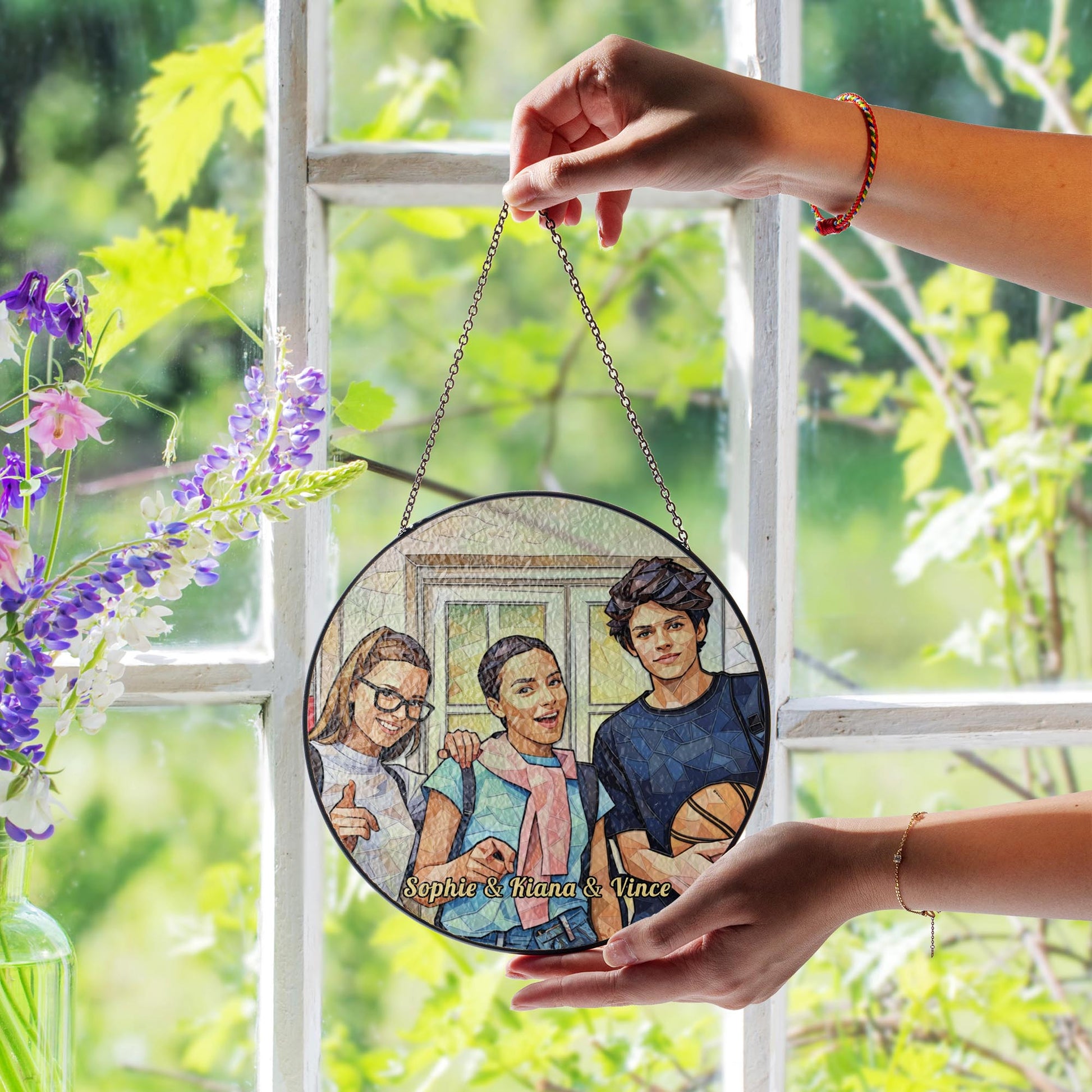 Personalized Best Friend Illustration Glass Suncatcher - Custom Gift for Besties, Long Distance Friendship & Birthday Window Decor
