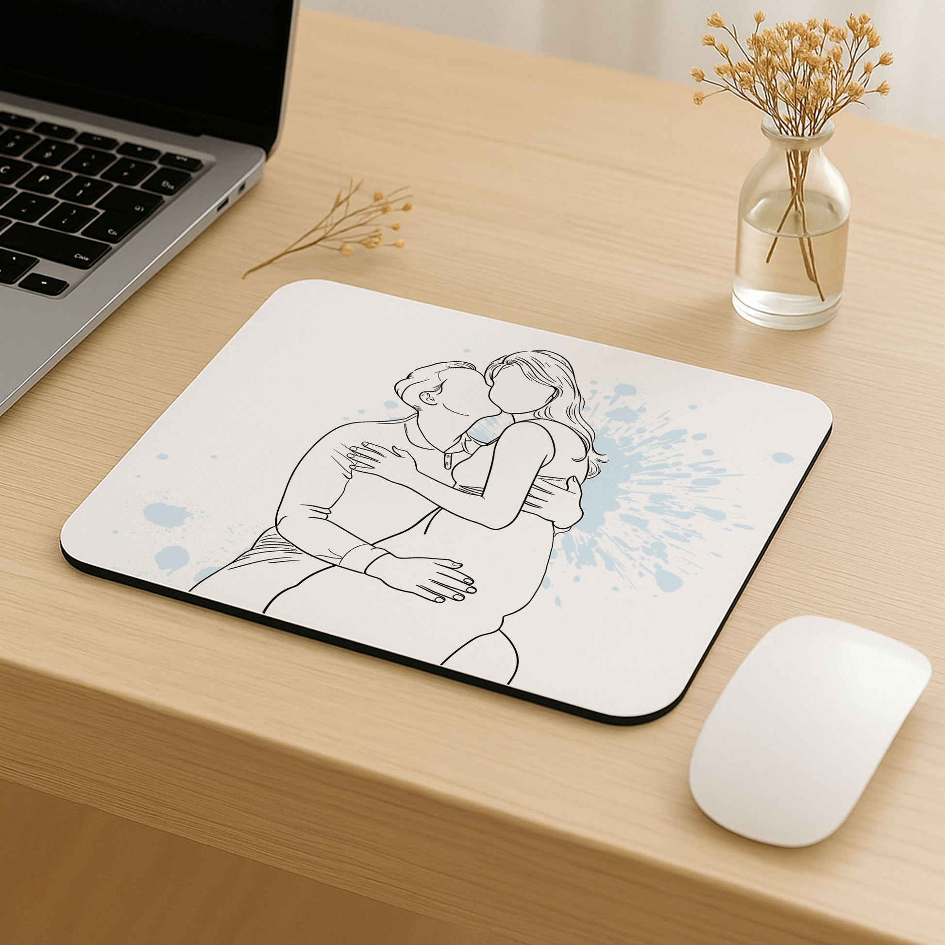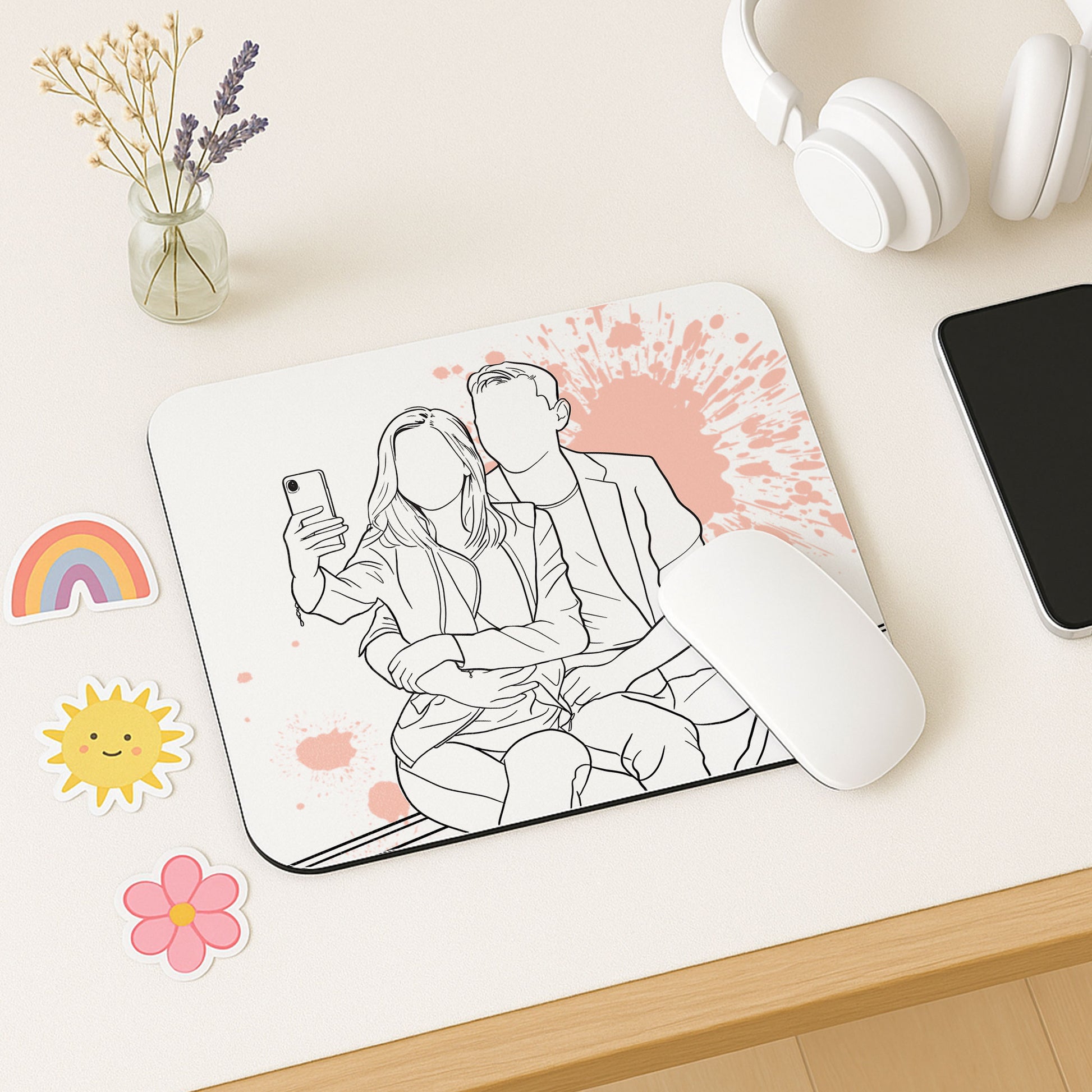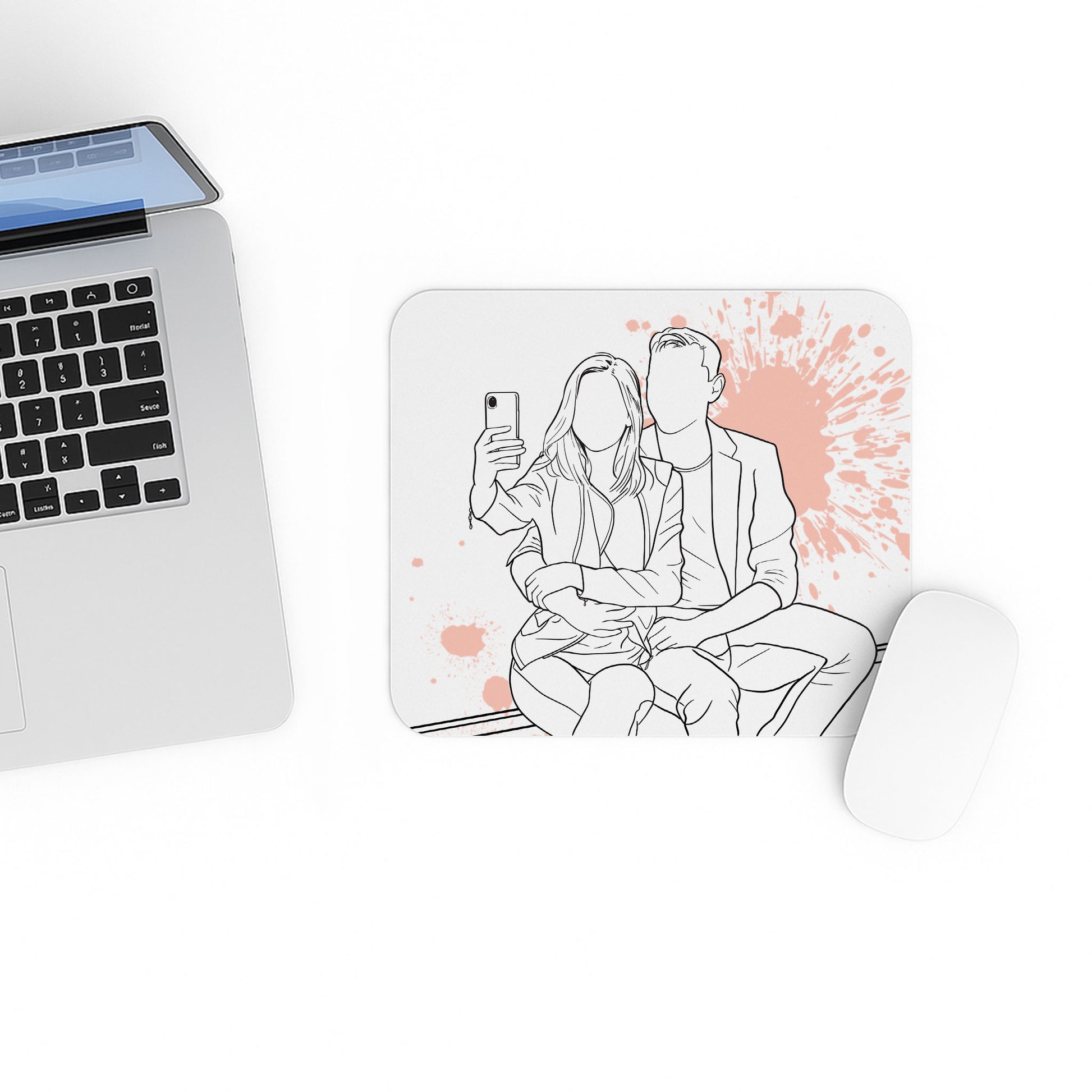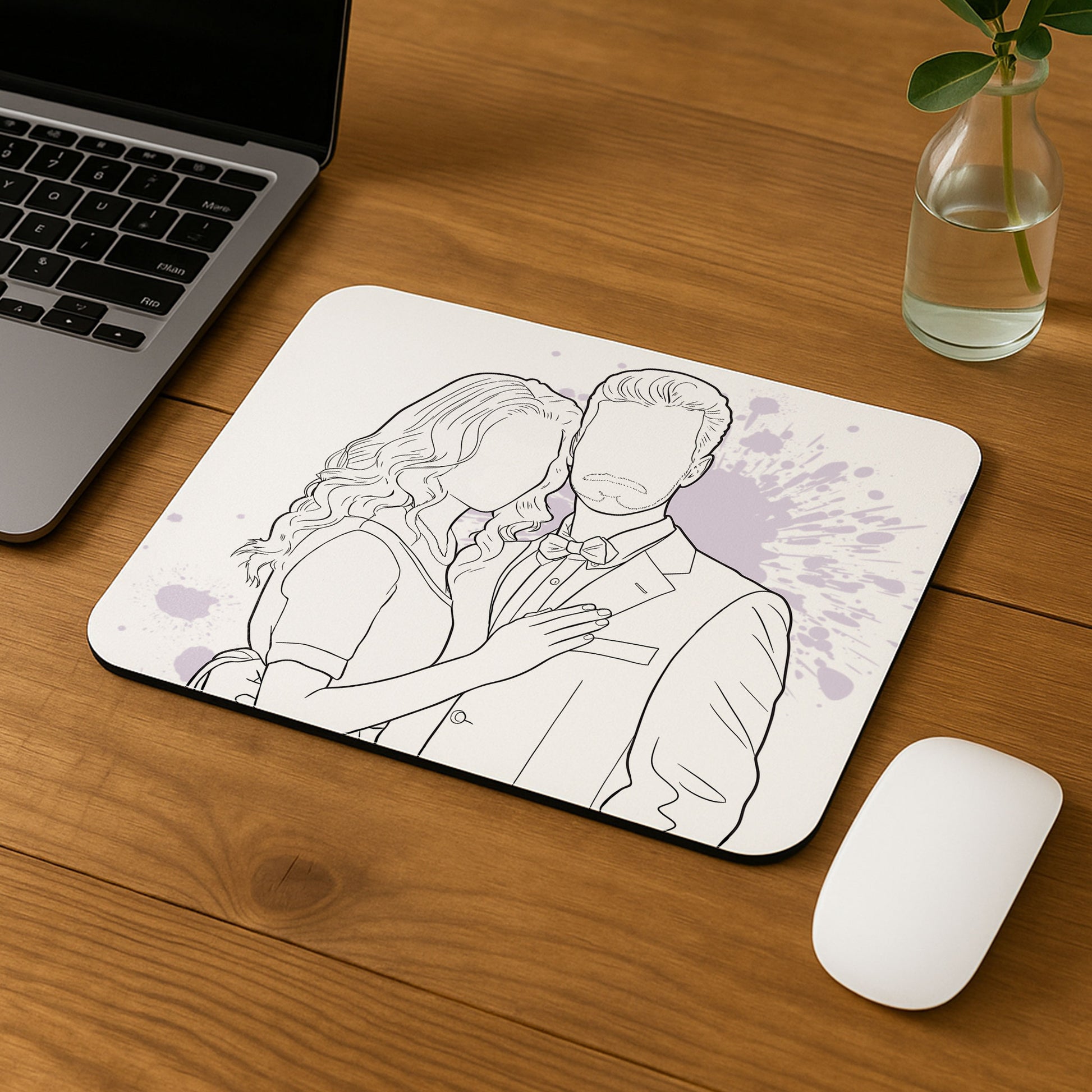 Personalized Picture to Drawing Couple Portrait Rectangle Mouse Pad Line Art Style Date or Wedding Gift