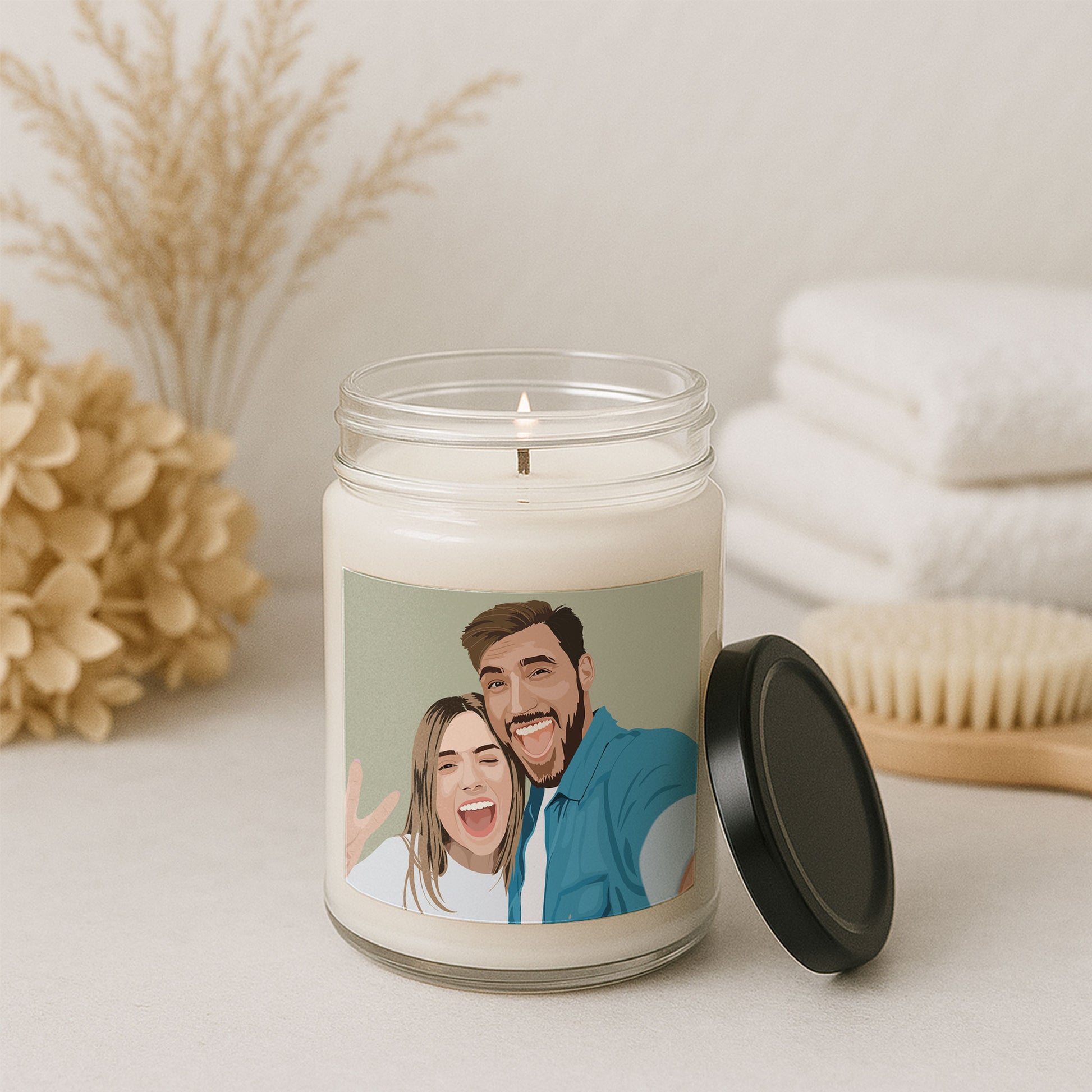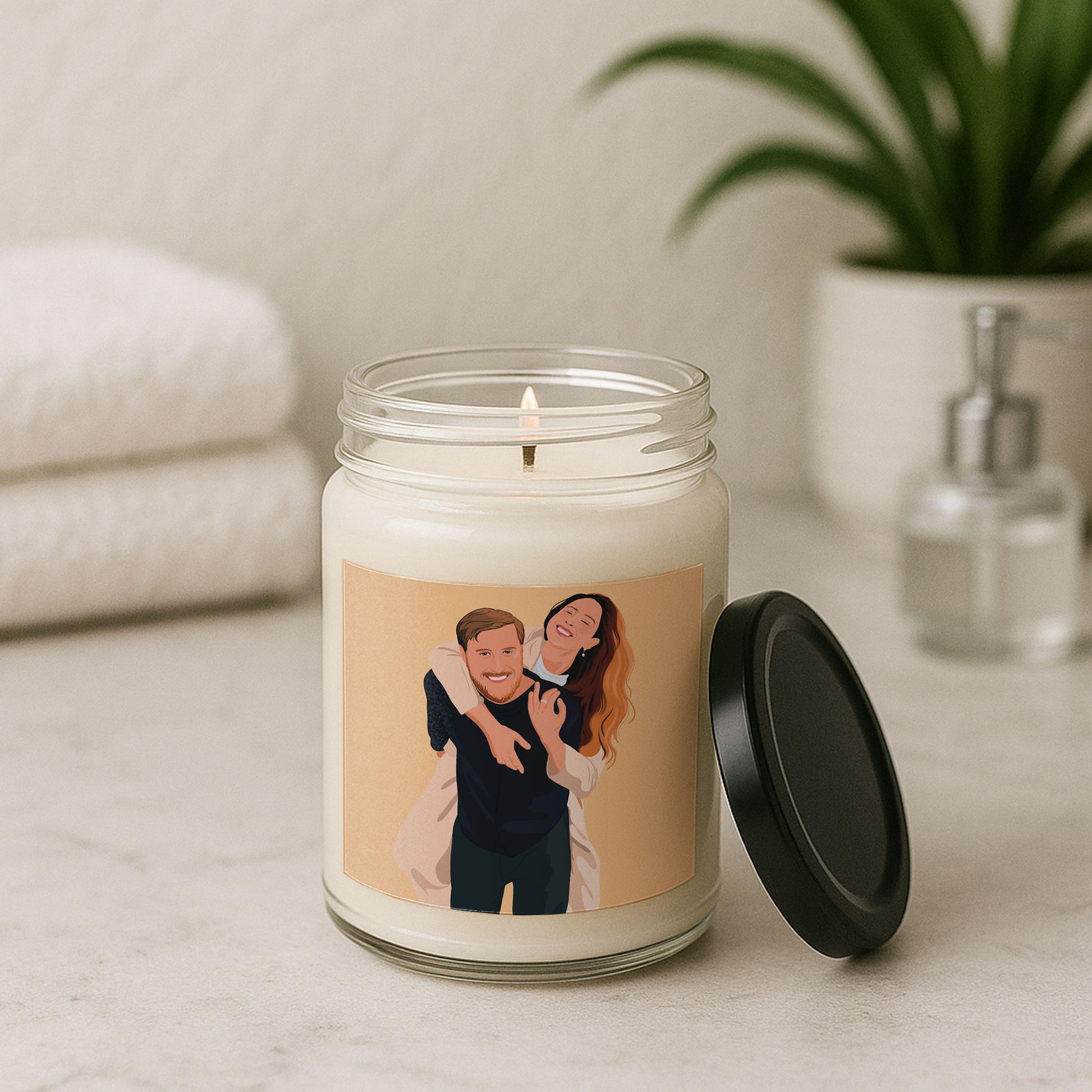 Personalized Illustration from Photo Couple Portrait 9oz. Scented Soy Candle Digital Art Style Romantic Anniversary Gift