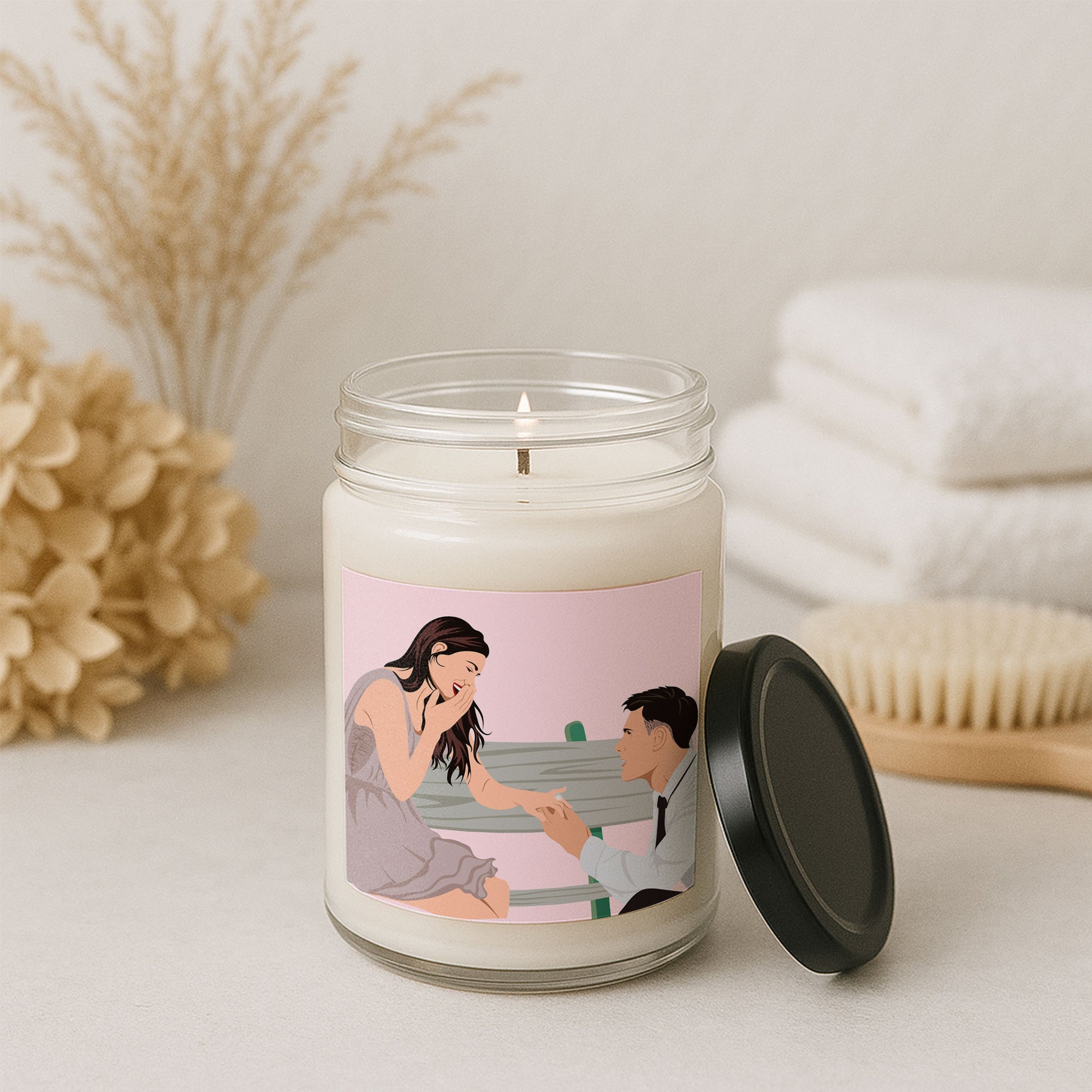 Elevate your space with the warm glow and immersive aromas of our premium soy candles. Hand-poured into a sleek 9oz glass jar, each candle is crafted with care using a 100% natural soy wax blend, cotton wick, and finished with a glossy permanent label featuring your custom design.