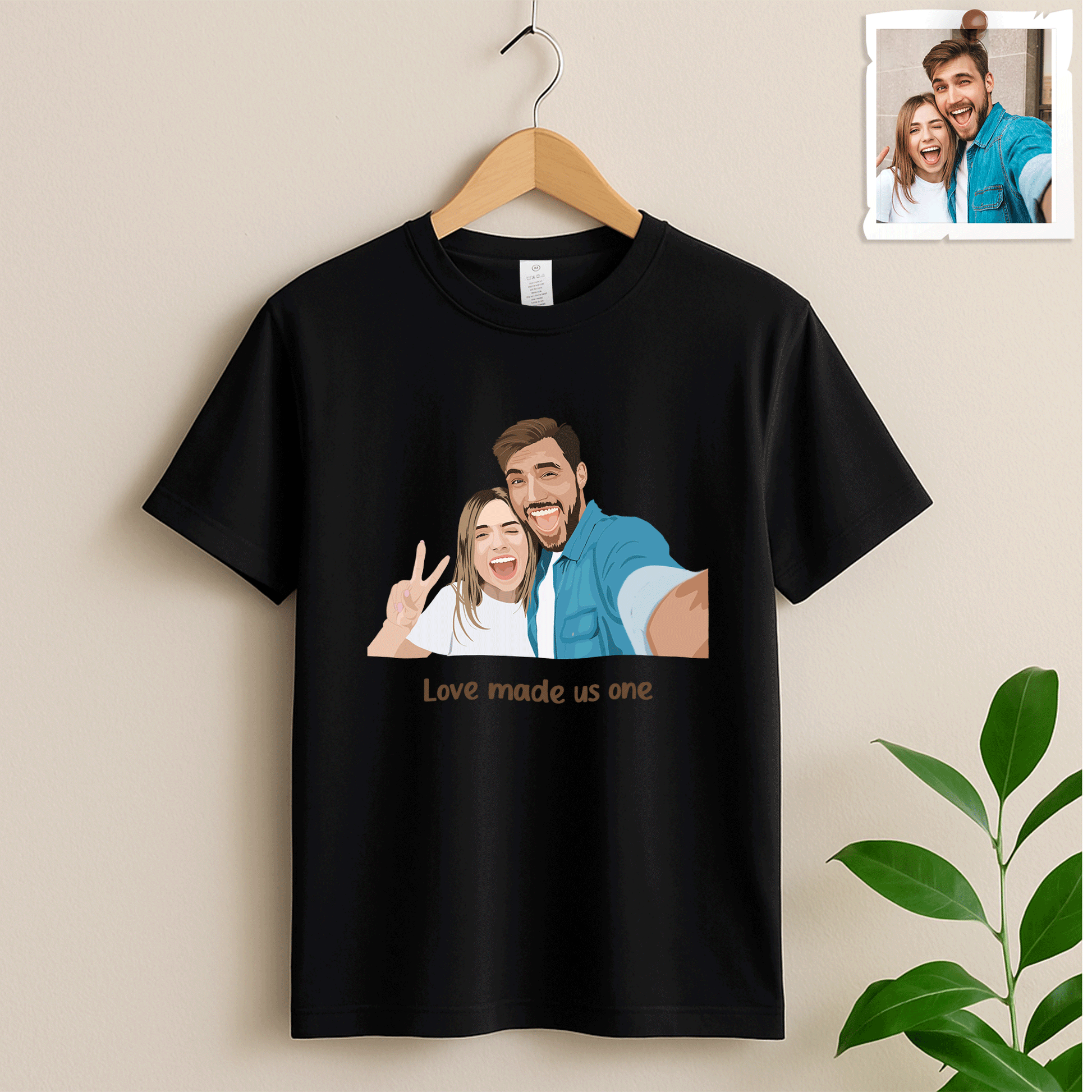 Personalized Photo to Portrait Couple Moment Unisex Crewneck T-shirt S-5XL Illustration Style Romantic Anniversary Gift