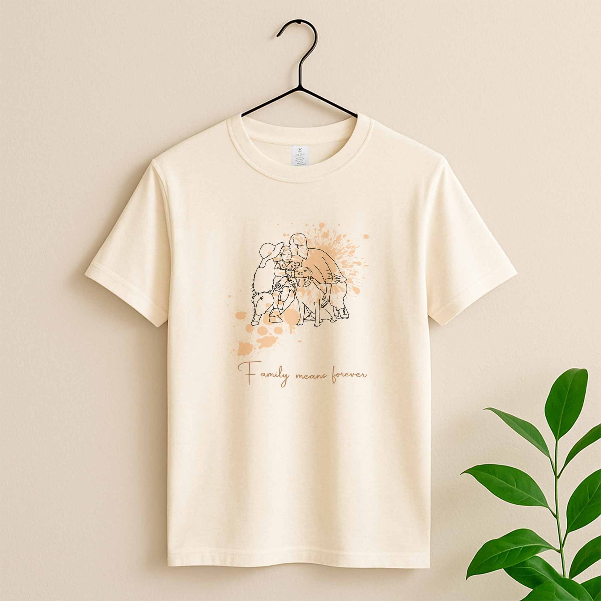 Personalized Photo to Line Art Family Picture Unisex Crewneck T-shirt S-5XL Hand-Drawn Style Gift for Father, Mother's Day, or Anniversary