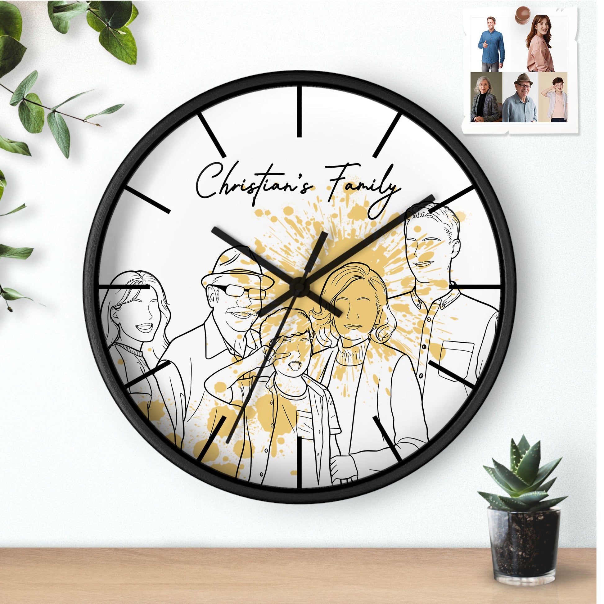 Personalized Photo to Line Art Family Portrait Wall Clock Hand-Drawn Style Gift for Father, Mother's Day, or Anniversary