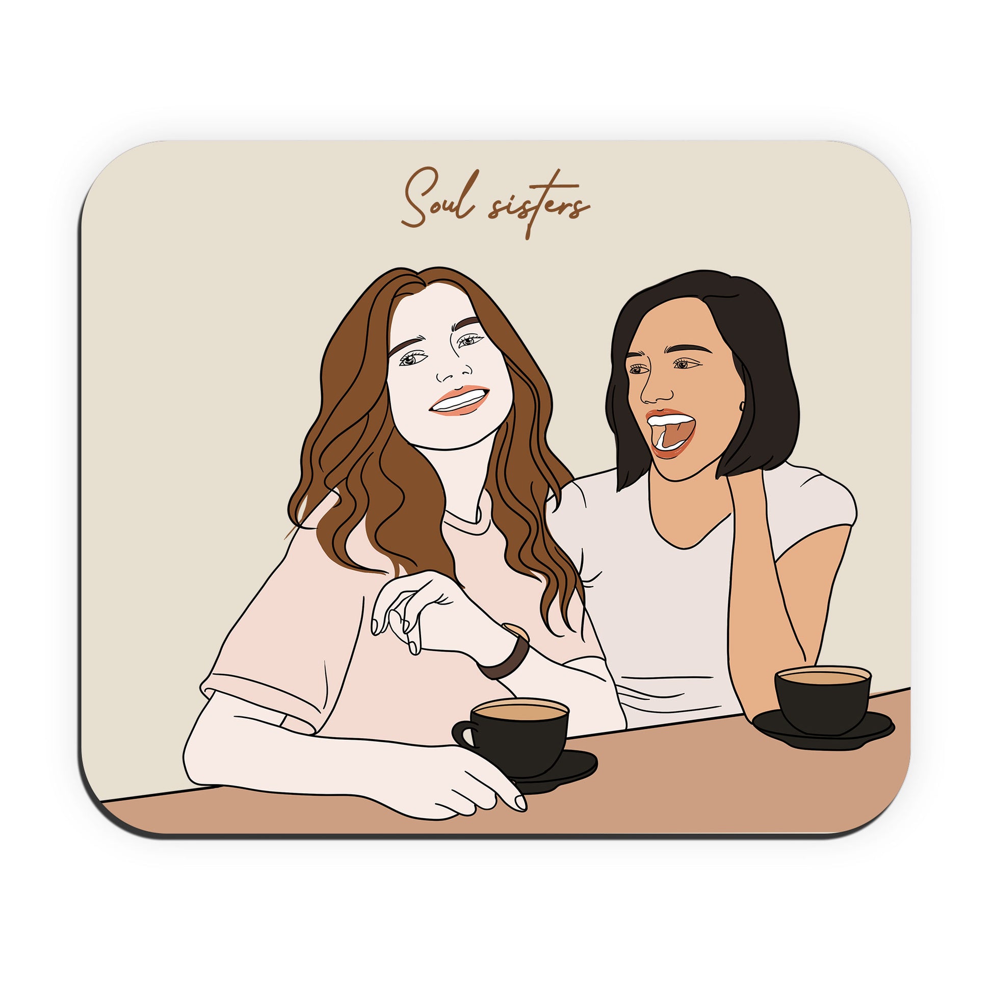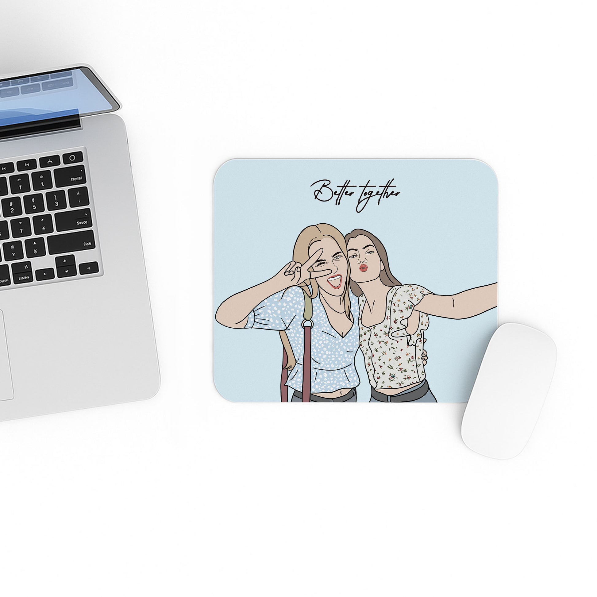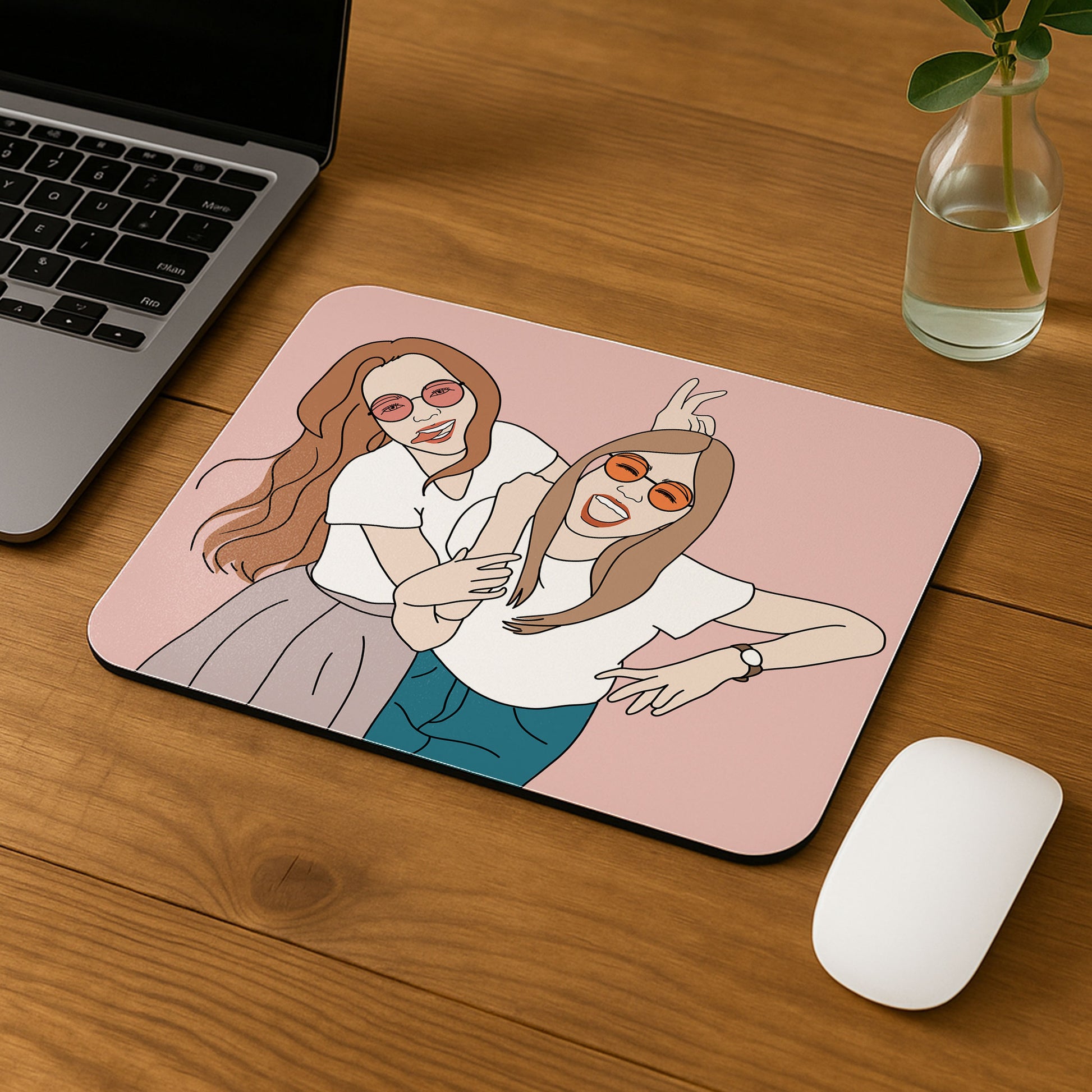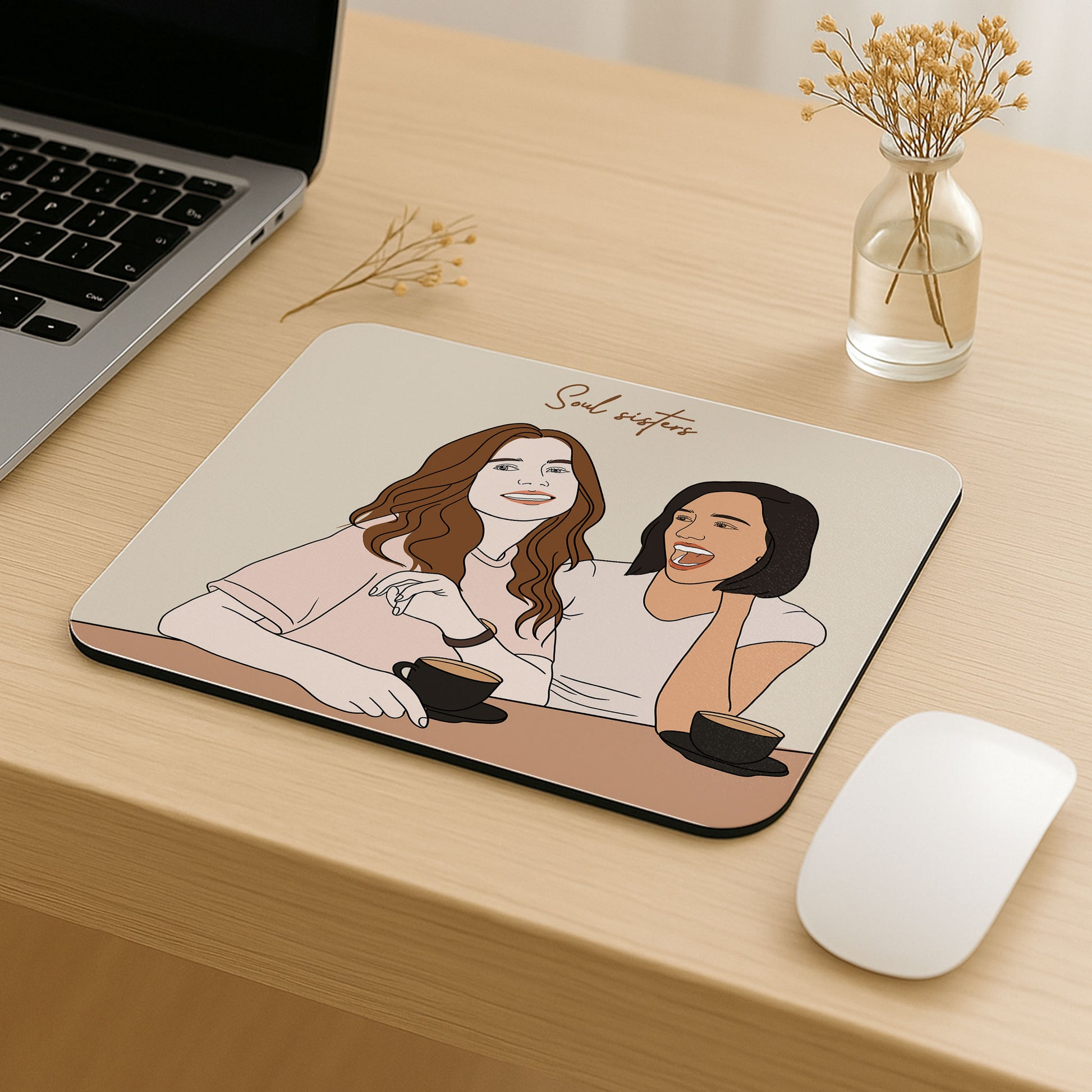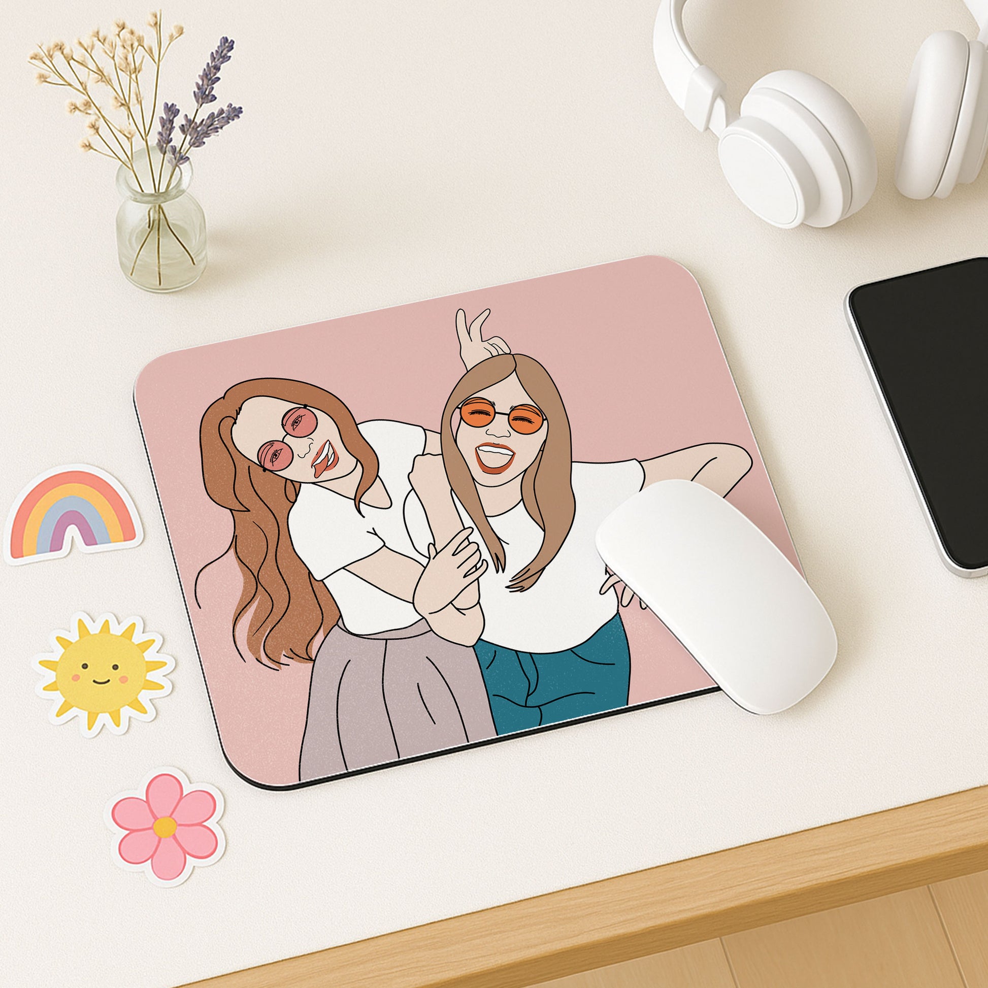 Personalized Portrait from Photo Friendship Picture Rectangle Mouse Pad Doodle Style Best Friends Birthday or Anniversary Gift