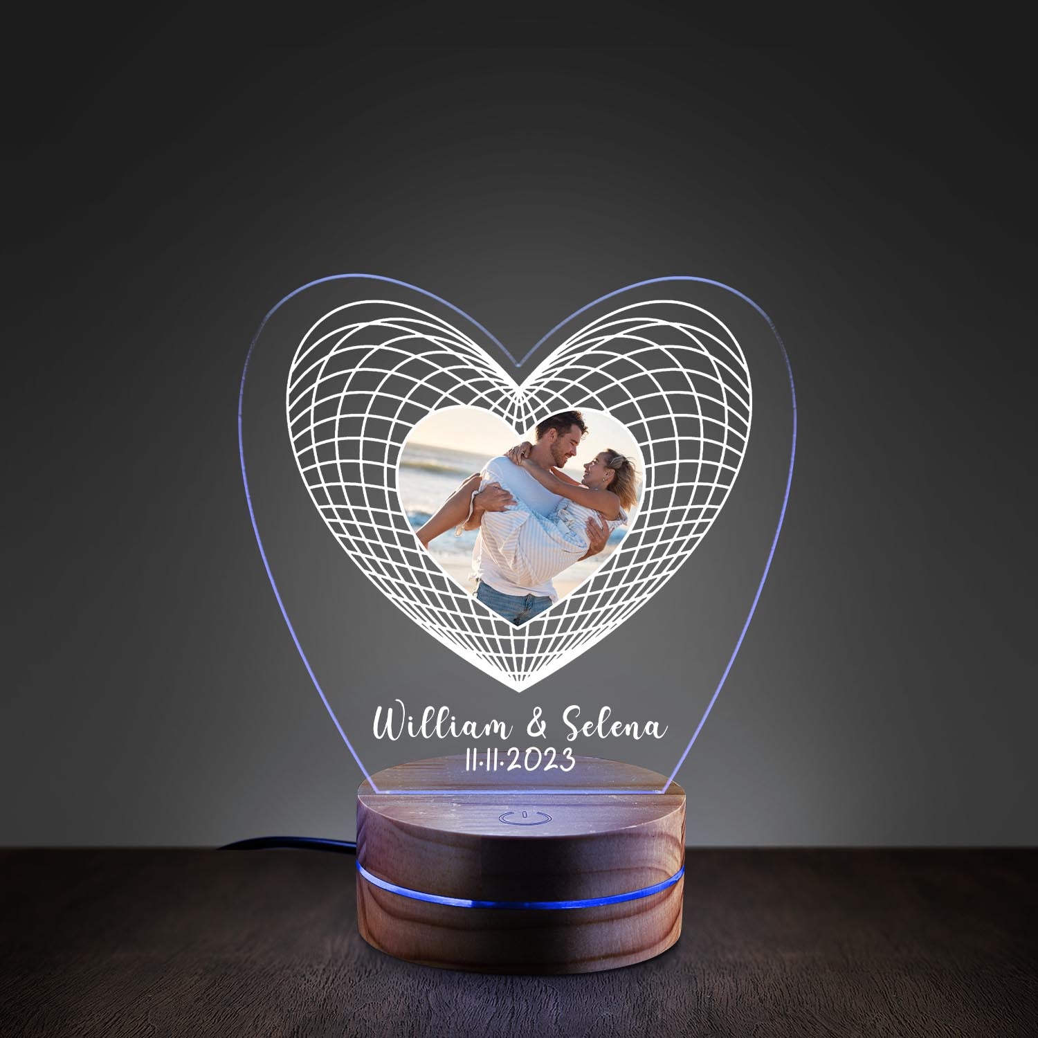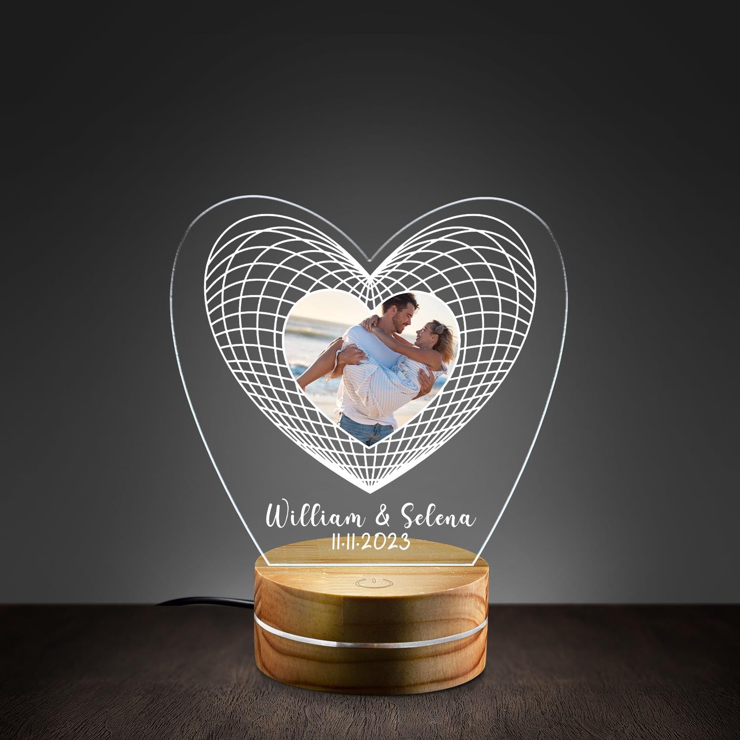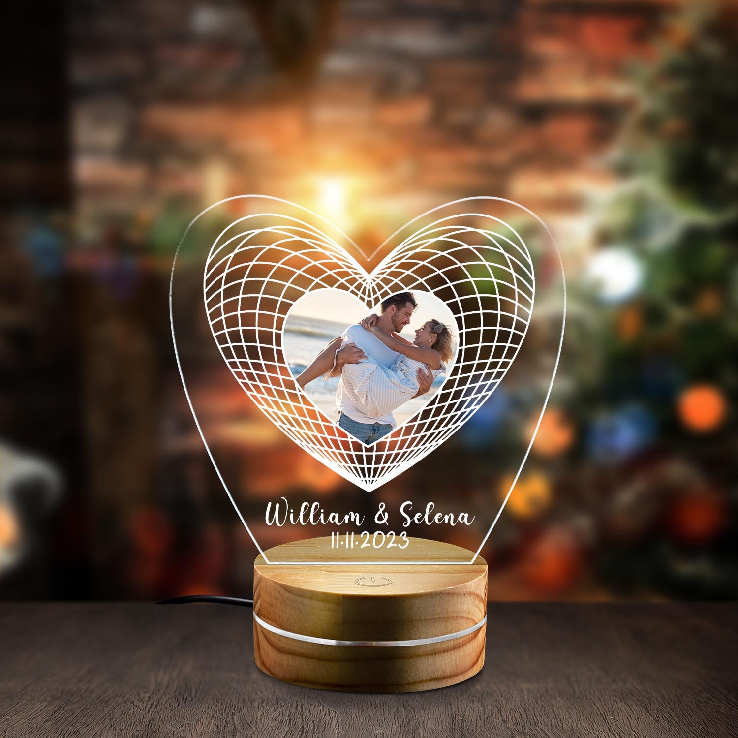 Personalized Heart Photo Night Light - Custom Names & Anniversary Date Acrylic Lamp - Romantic Wedding & Valentine's Day Gift