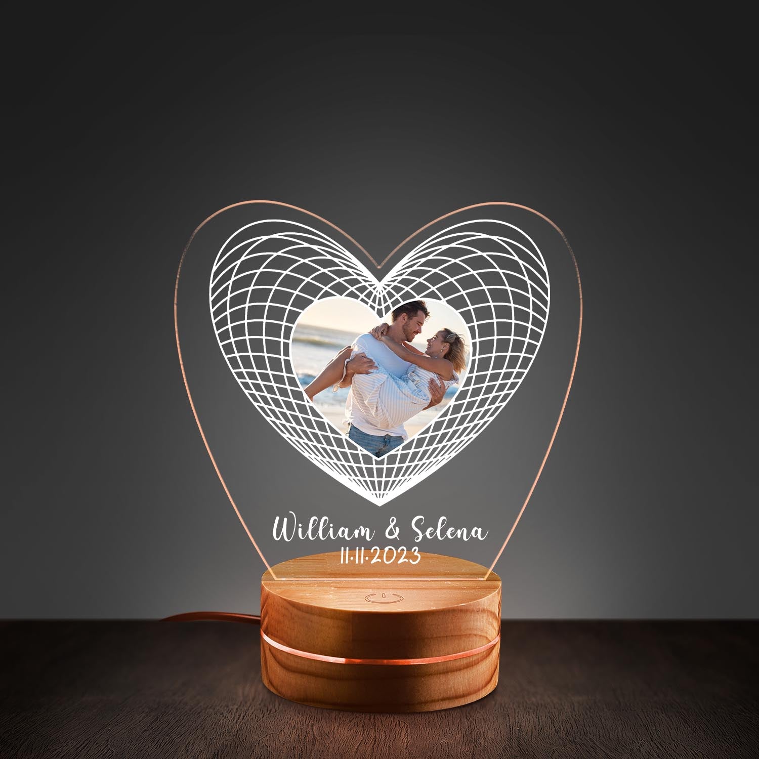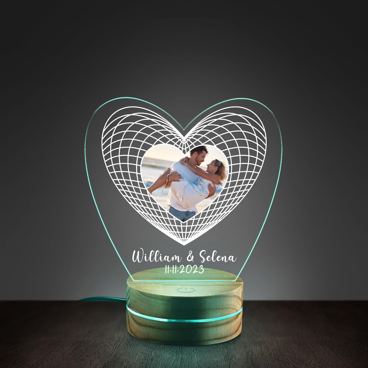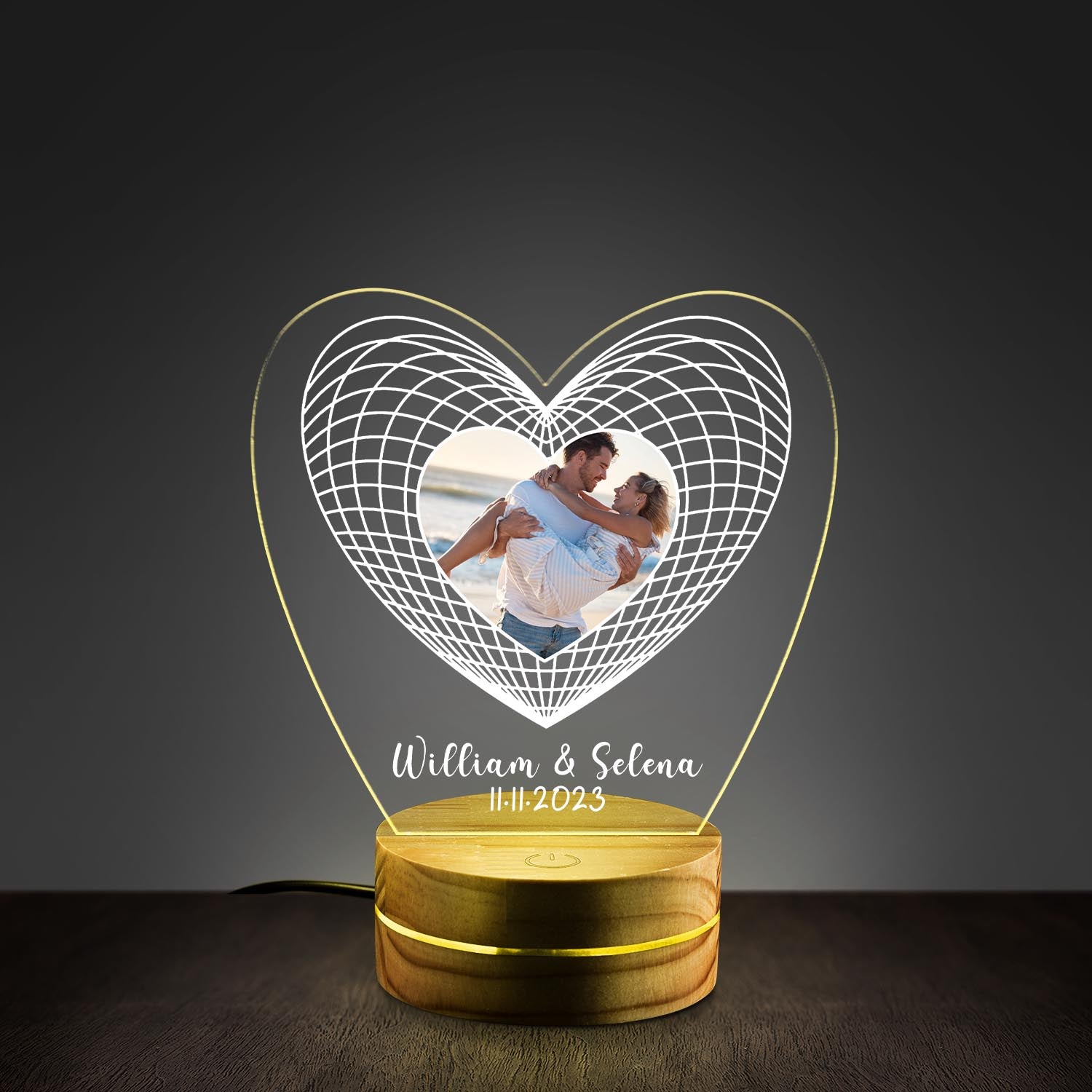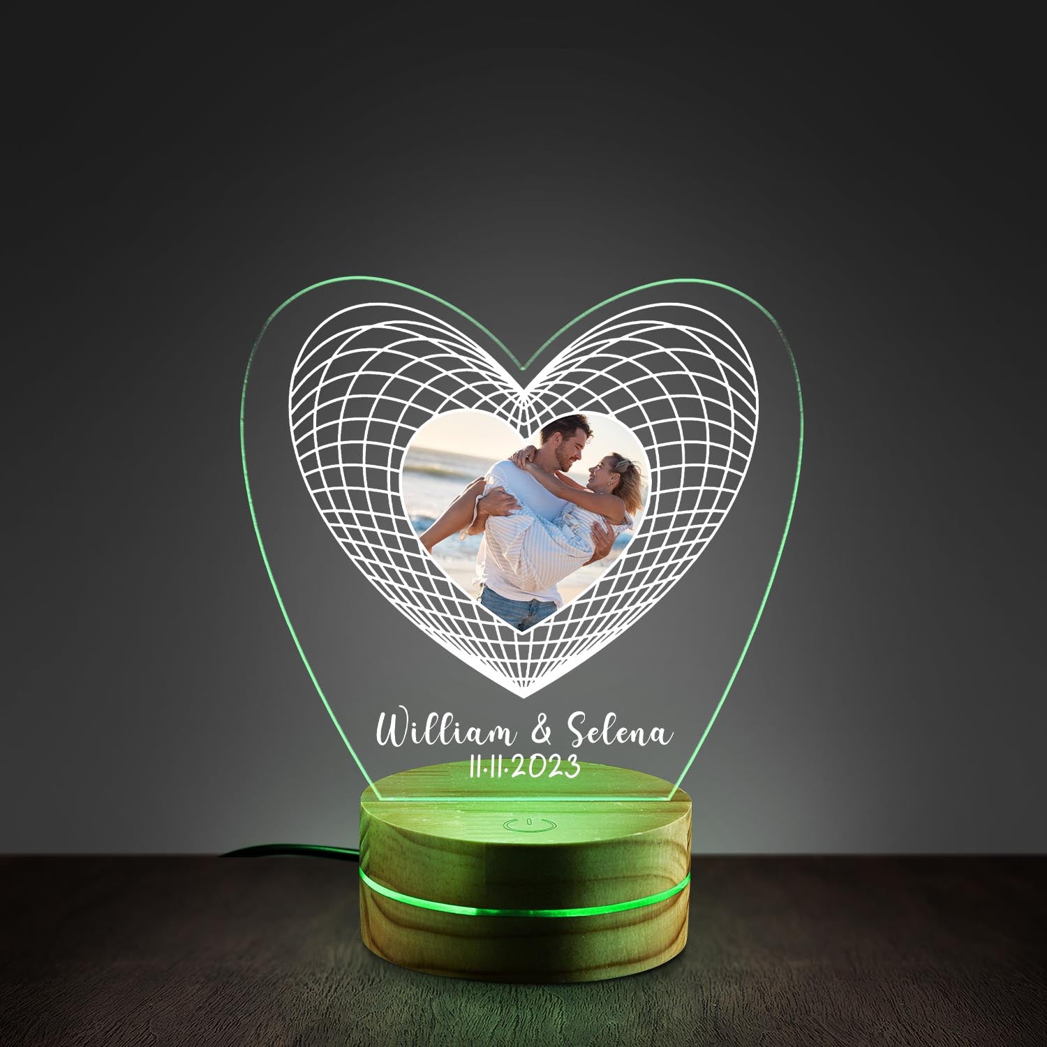 Personalized Heart Photo Night Light - Custom Names & Anniversary Date Acrylic Lamp - Romantic Wedding & Valentine's Day Gift