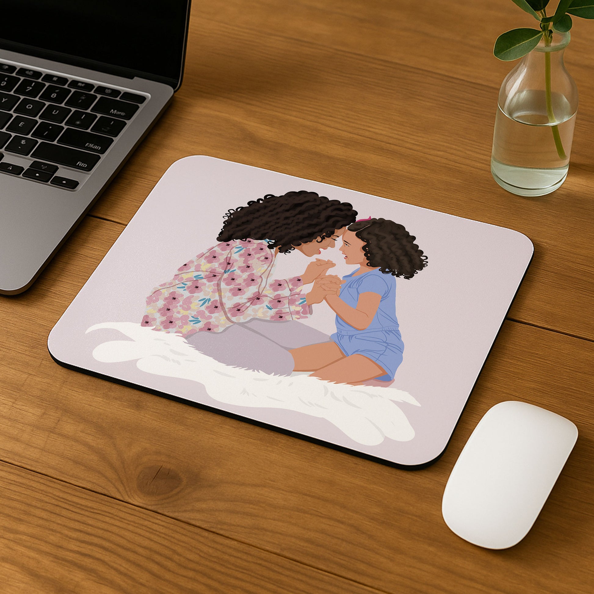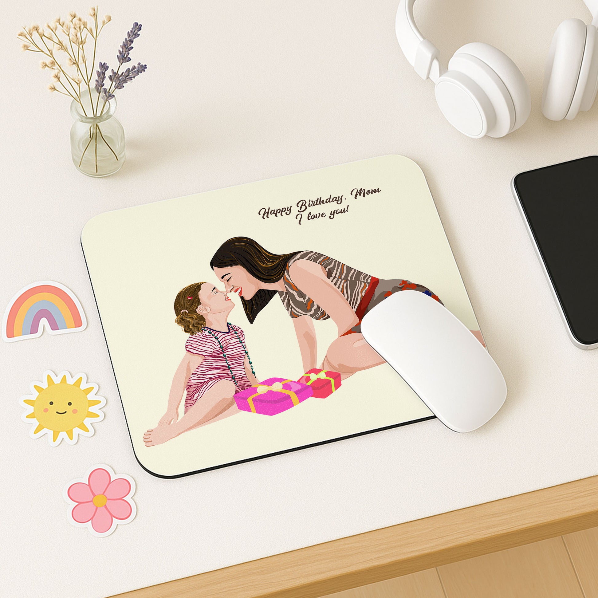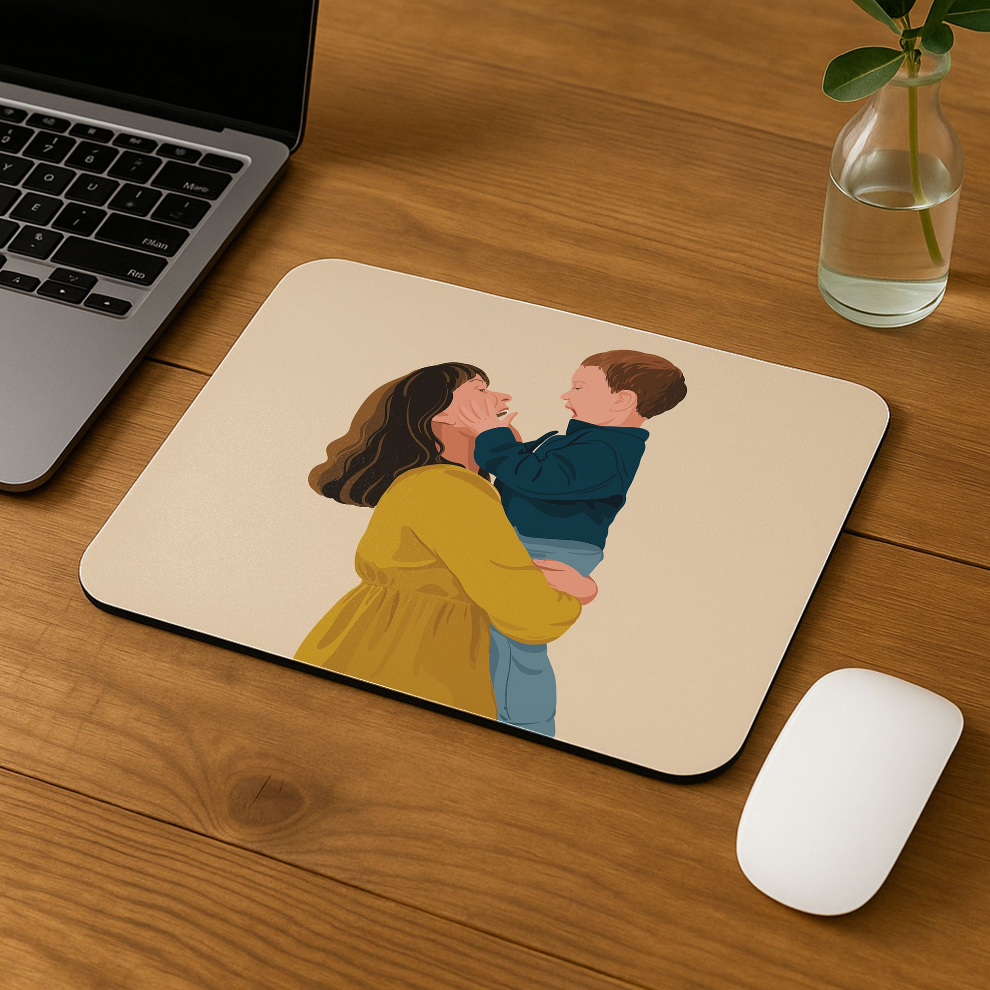 Personalized Illustration from Photo Family Portrait Rectangle Mouse Pad Digital Art Style Mom and Kid Memorial Gift