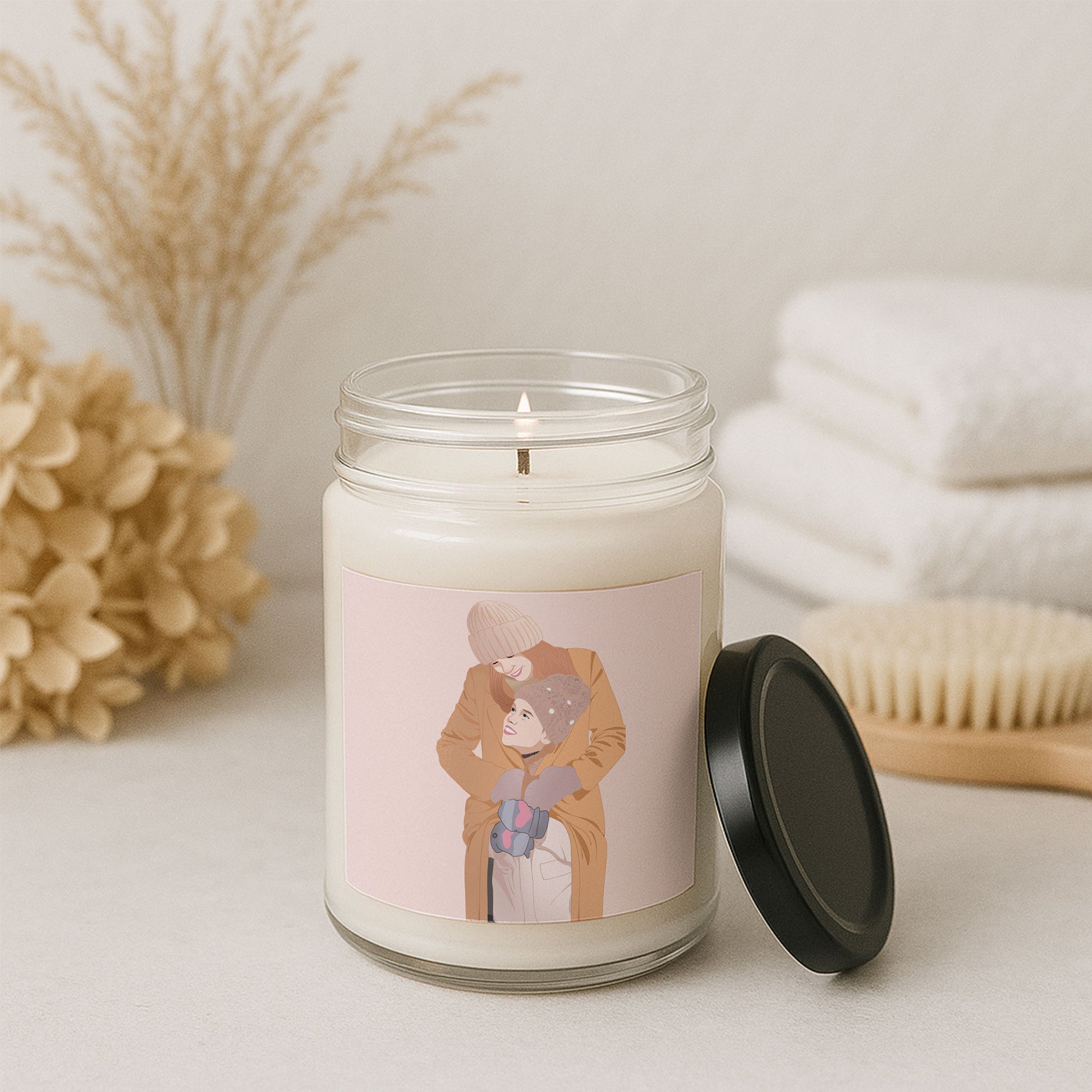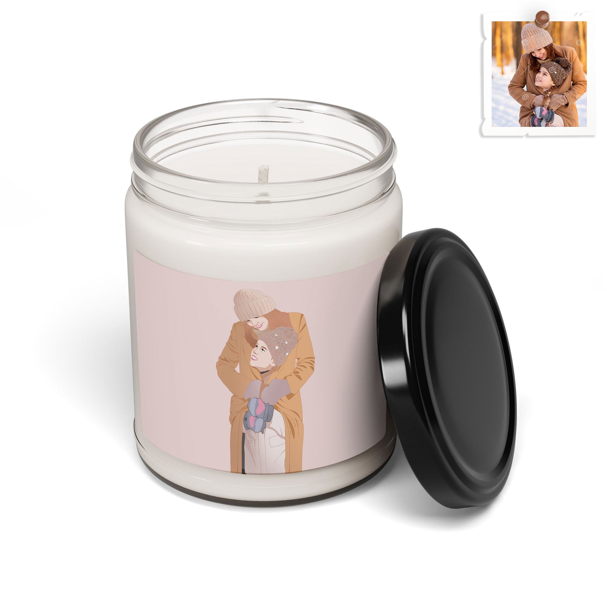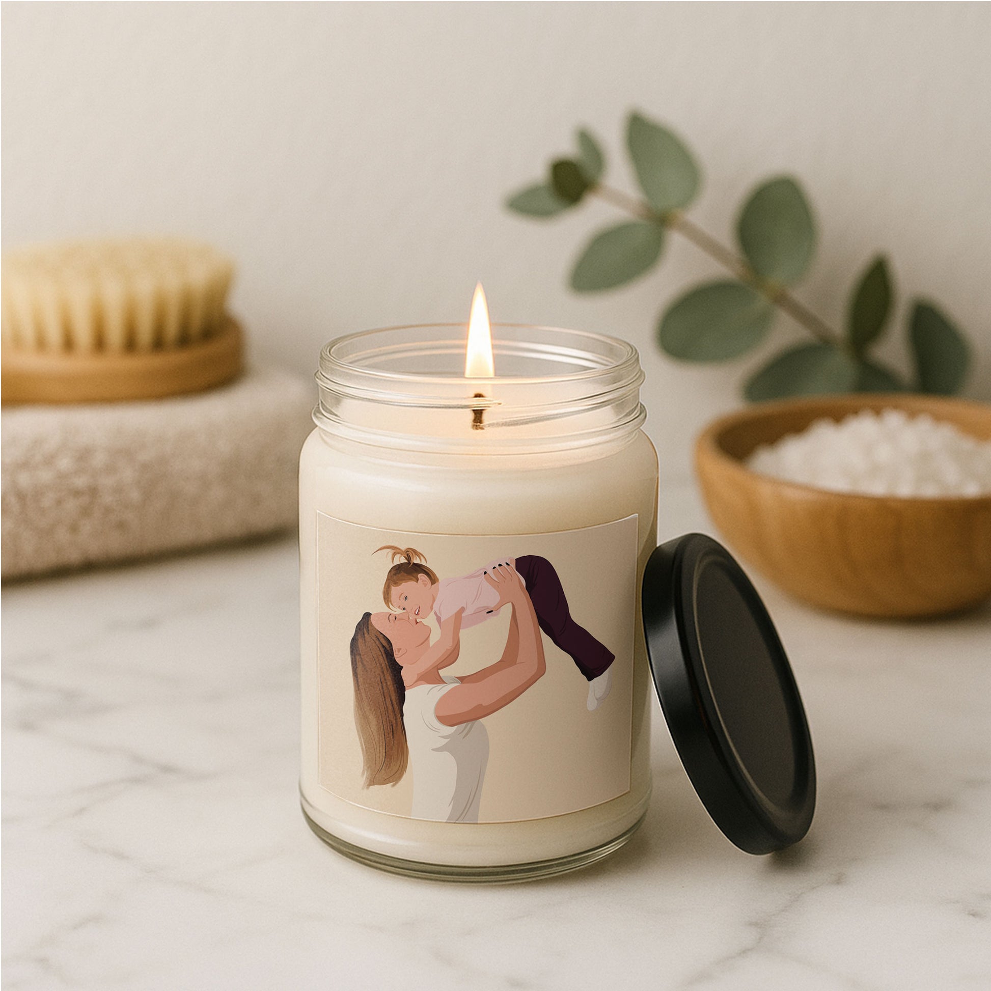 Personalized Illustration from Photo Family Picture 9oz. Scented Soy Candle Digital Art Style Mom and Kid Memorial Gift