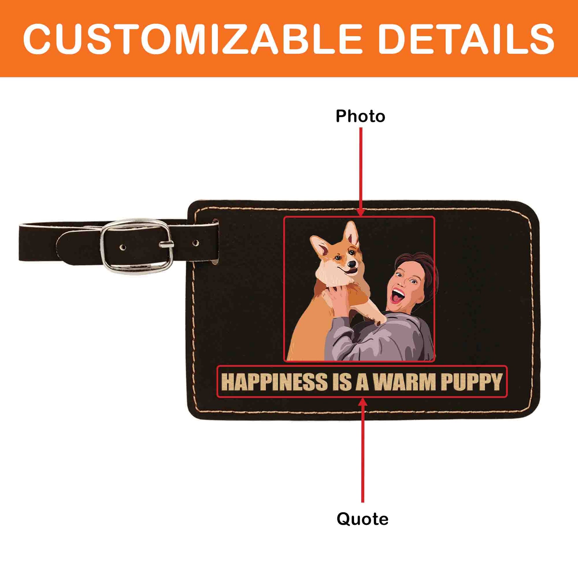 The ultimate Personalized Illustration Pet Portrait Travel Leatherette Luggage Tag For Pet Lover. Send us your photo to create a stunning, custom Illustration Portrait engraved on a high-quality Leatherette tag. Practical, durable, and deeply meaningful, this keepsake makes identifying your bags easy and ensures your favorite furry friend is always with you on your adventures.