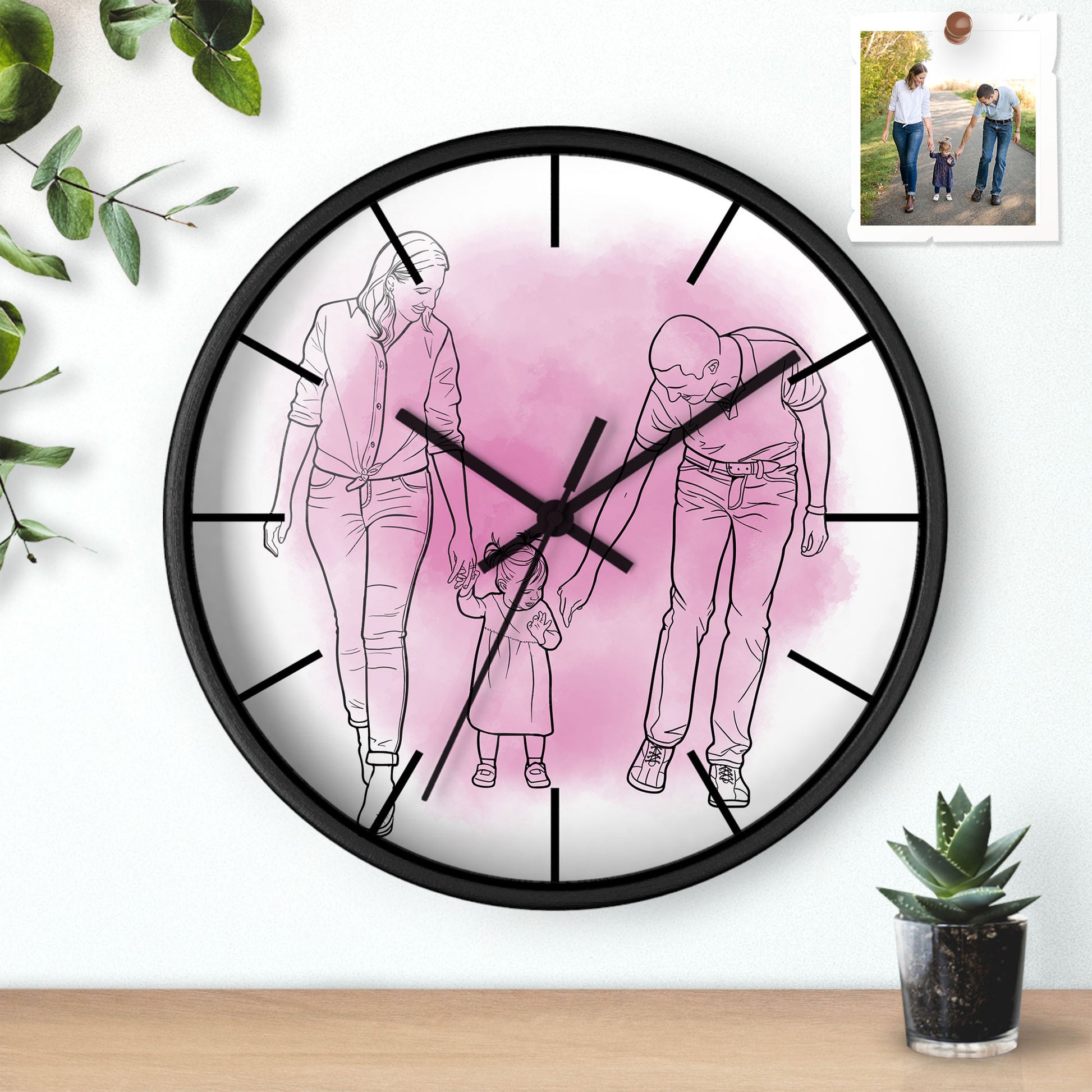 Personalized Line Art from Photo Family Portrait Wall Clock Hand-Drawn Style Couple Anniversary or Family Gift