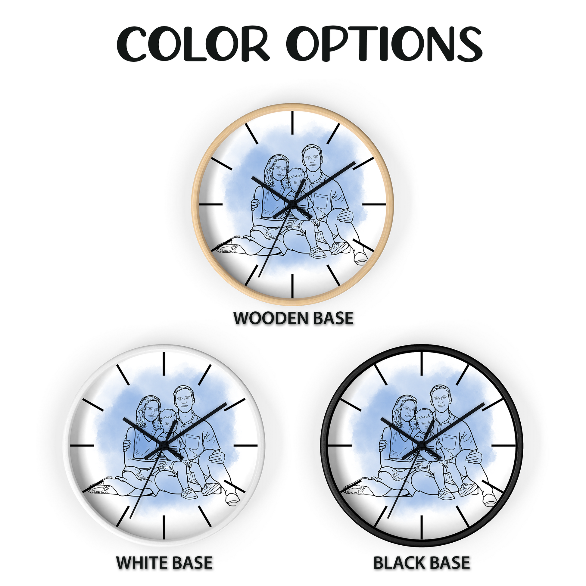 🎨 Many Variations: Choose from natural wood, black, or white frame finishes, with black or white clock hands to match your style.