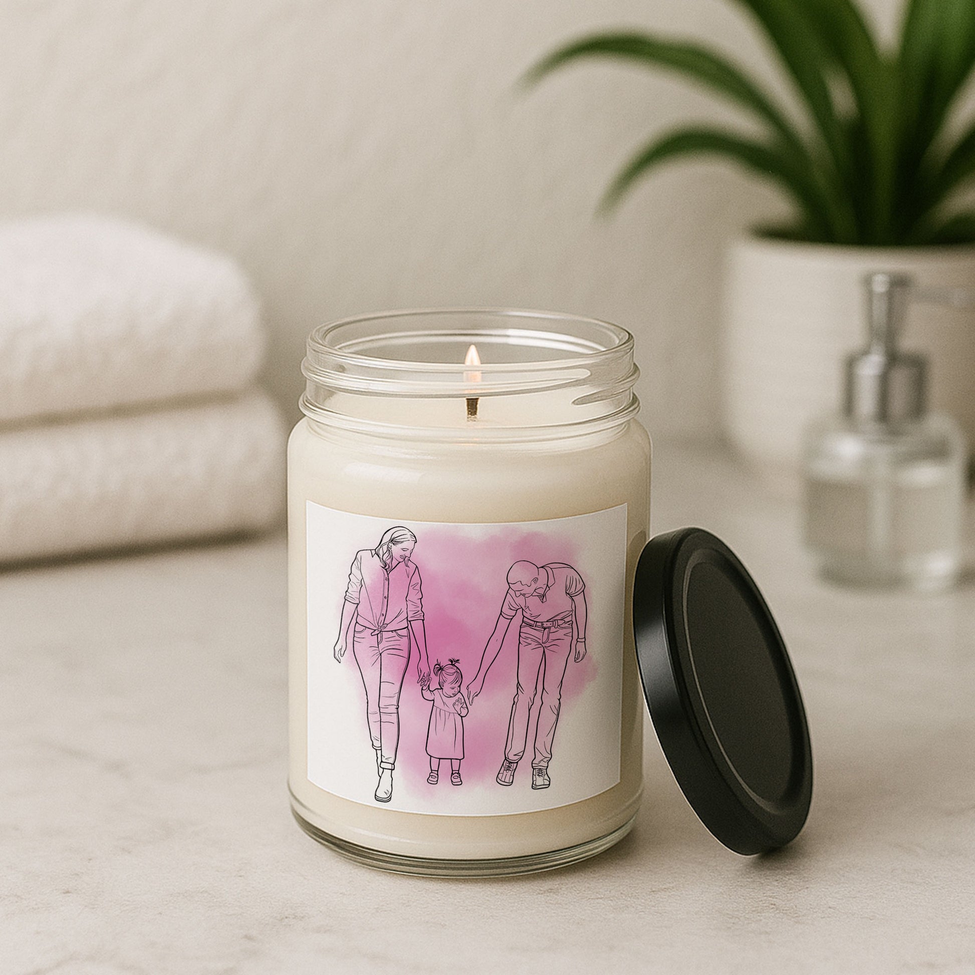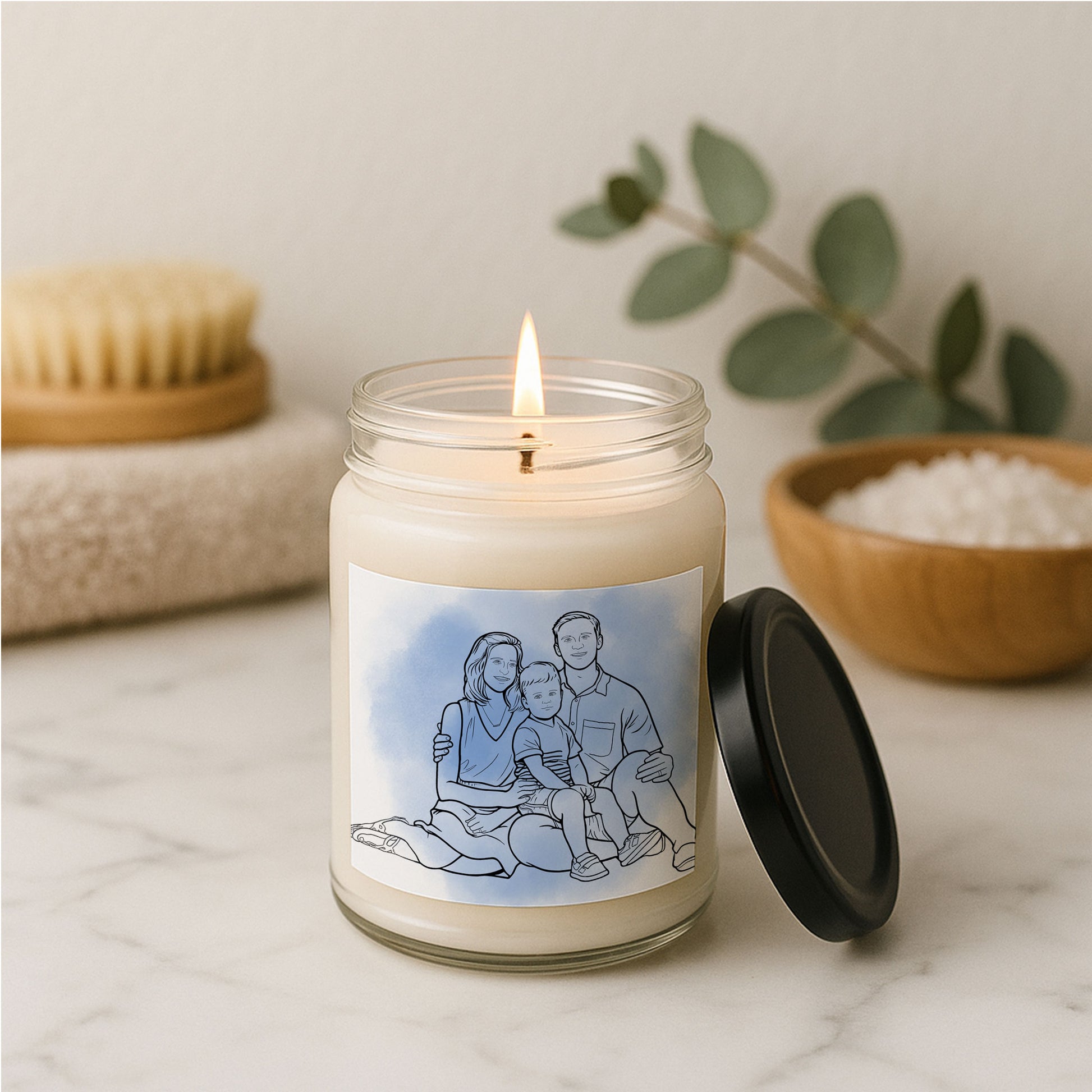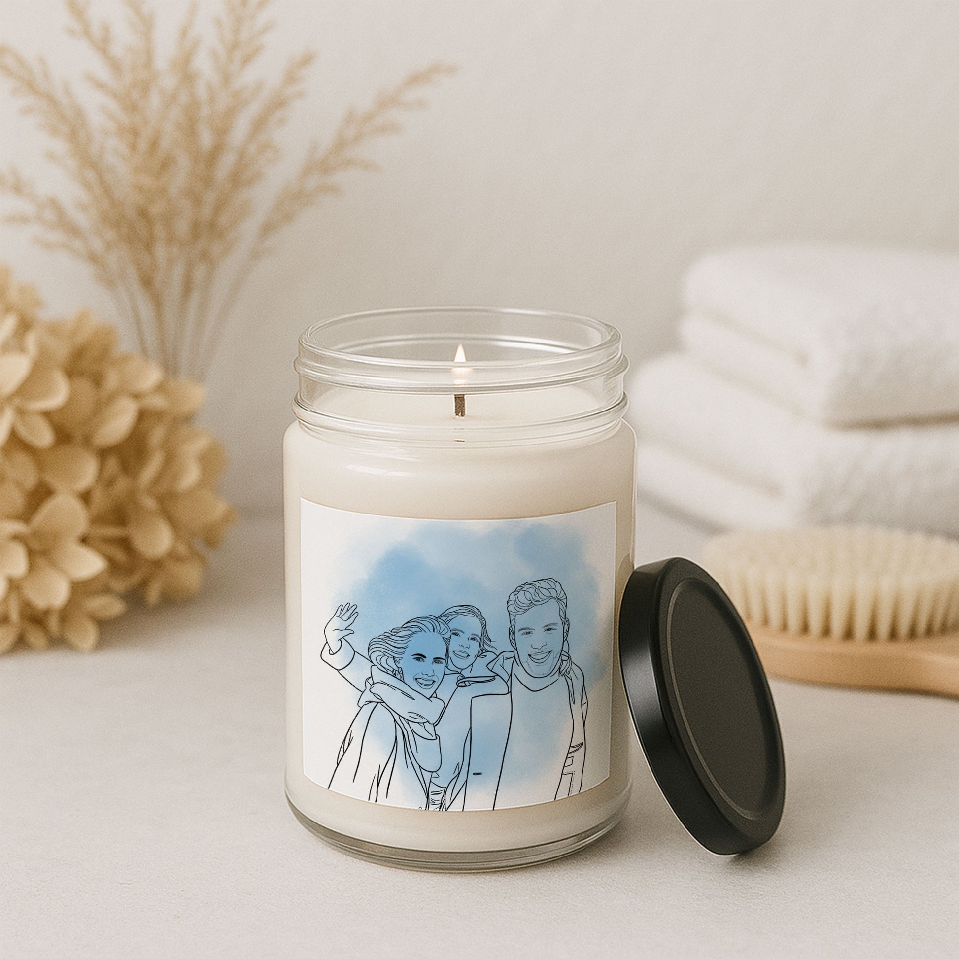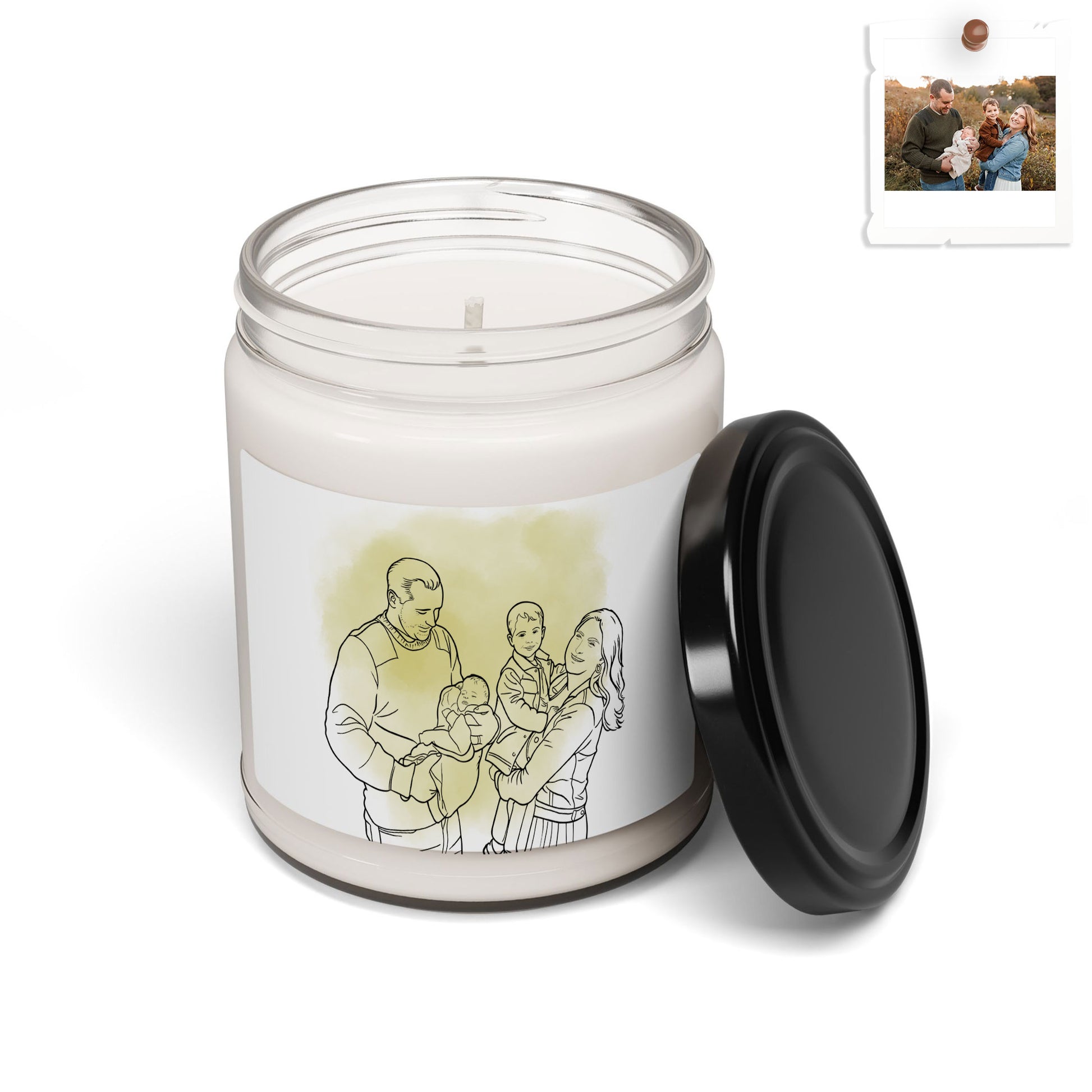 Personalized Line Art from Photo Family Picture 9oz. Scented Soy Candle Minimalist Style Couple Anniversary or Family Gift