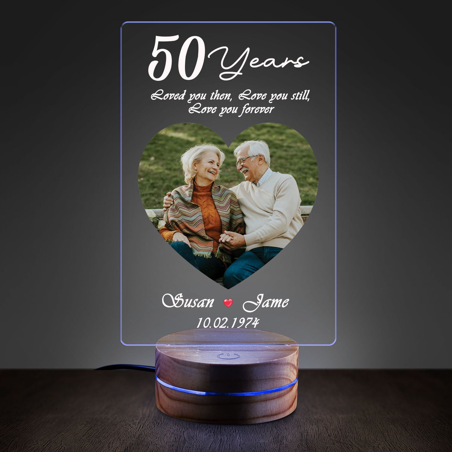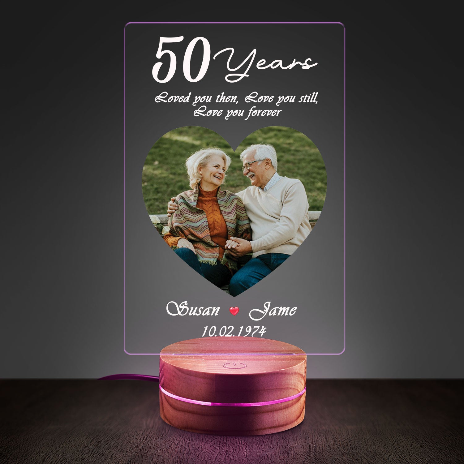 Personalized Milestone Anniversary Night Light - Custom Years Together Photo Lamp - Romantic 50th Wedding Anniversary Acrylic Gift