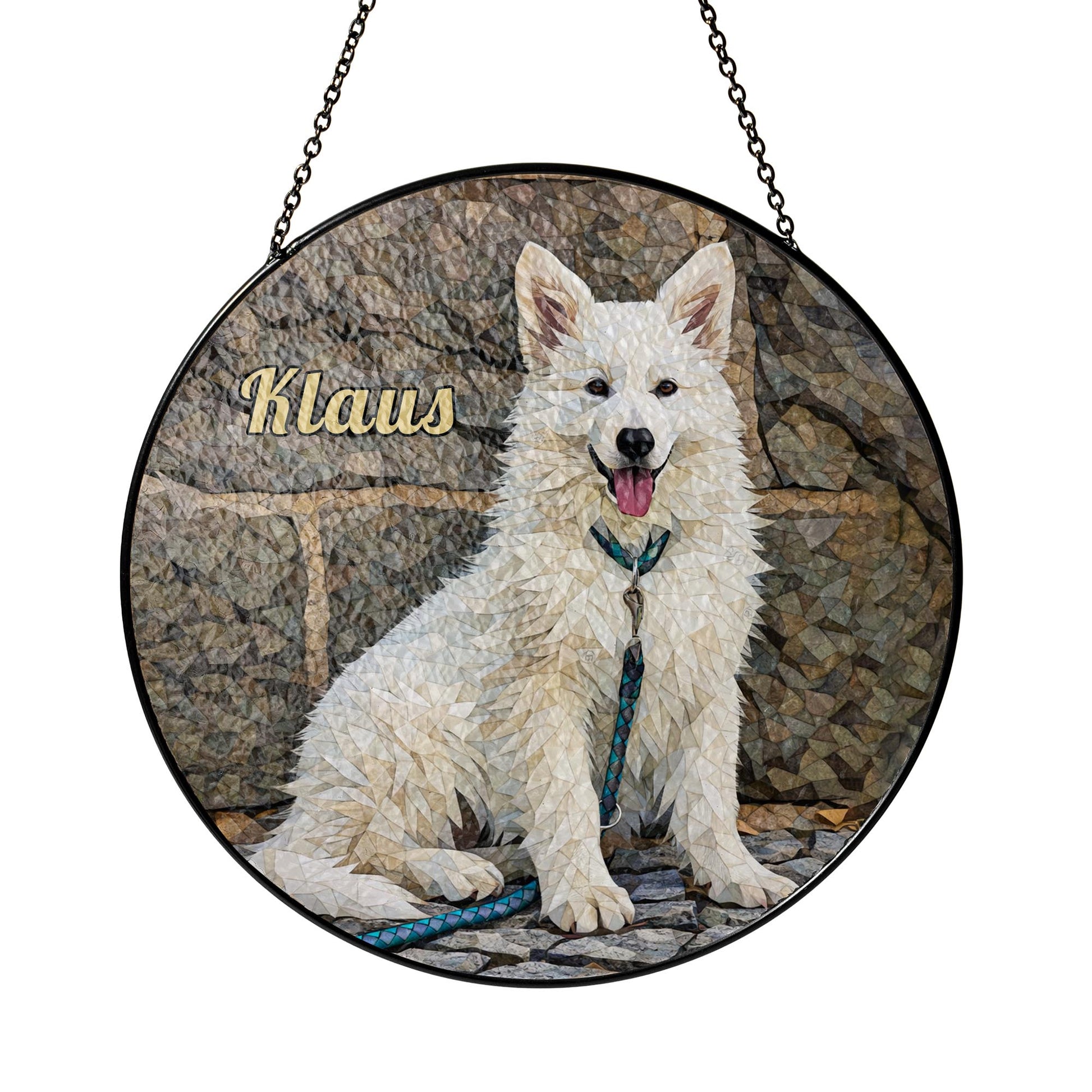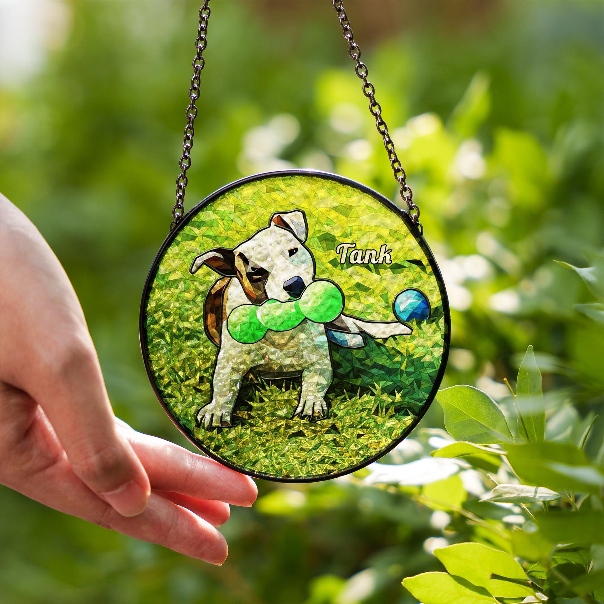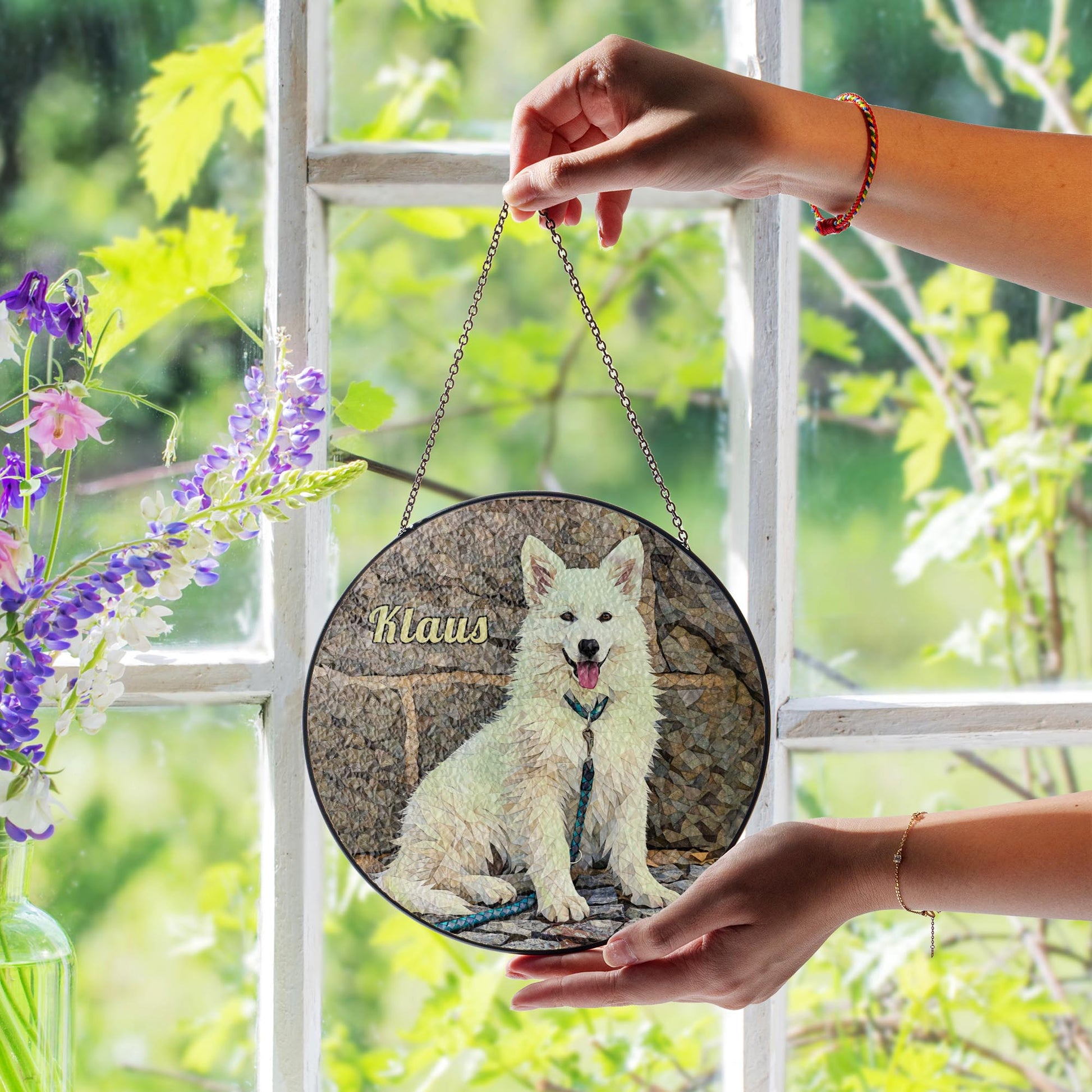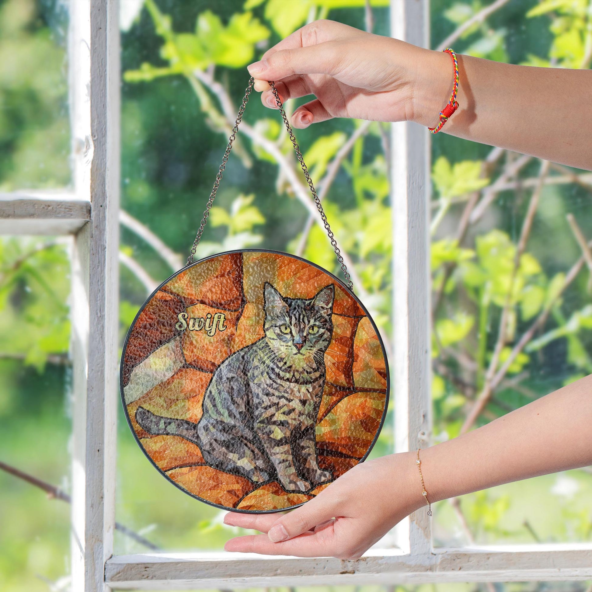 Personalized Pet Illustration Glass Suncatcher - Custom Gift for Pet Lovers, Soulful Dog & Cat Memorial Window Decor Keepsake
