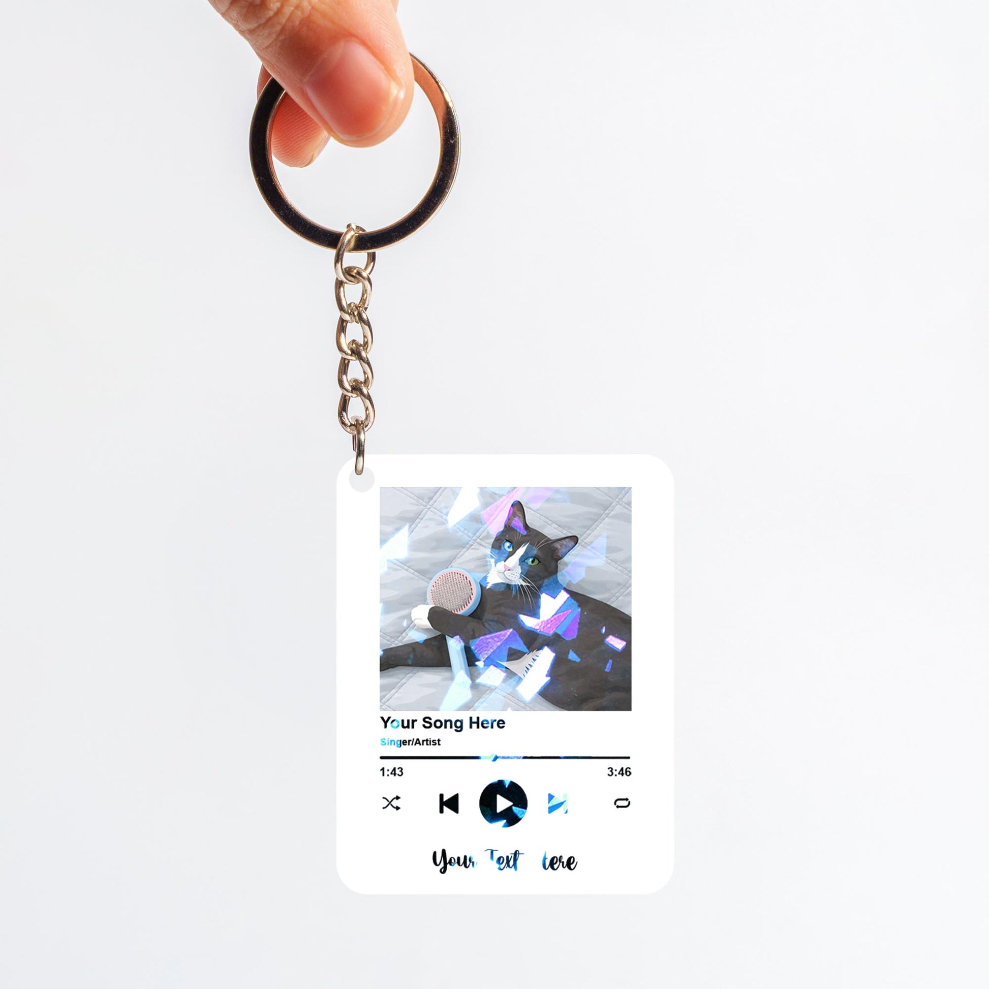 Personalized Pet Illustration Music Hologram Keychain - Custom Paw-trait Art for Pet's Owner