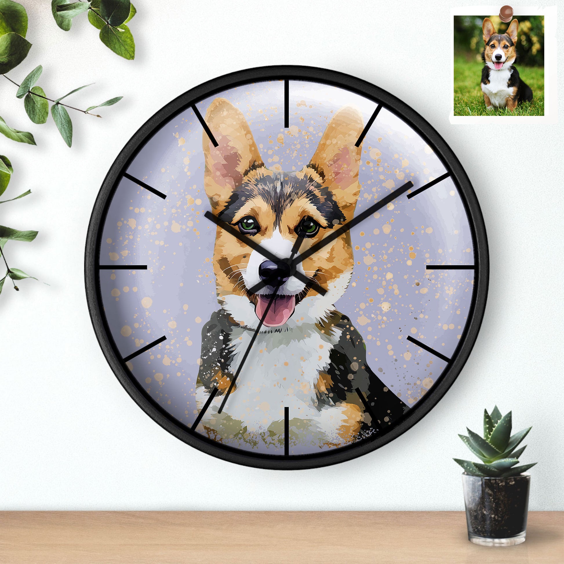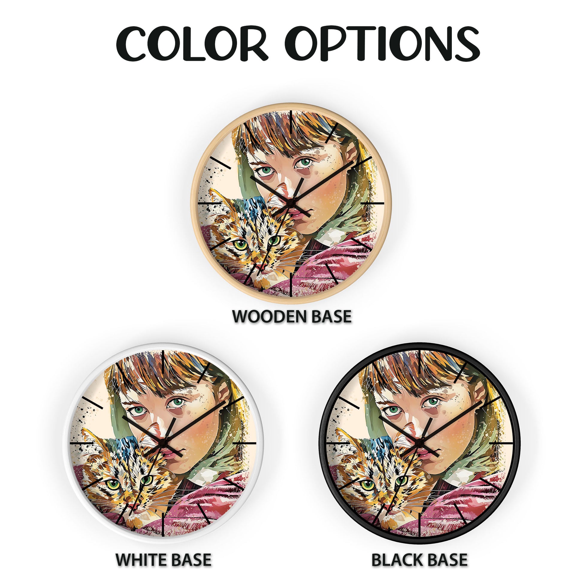 Personalized Illustration from Photo Pet Memory Wall Clock Digital Art Style Animal Lover Gift