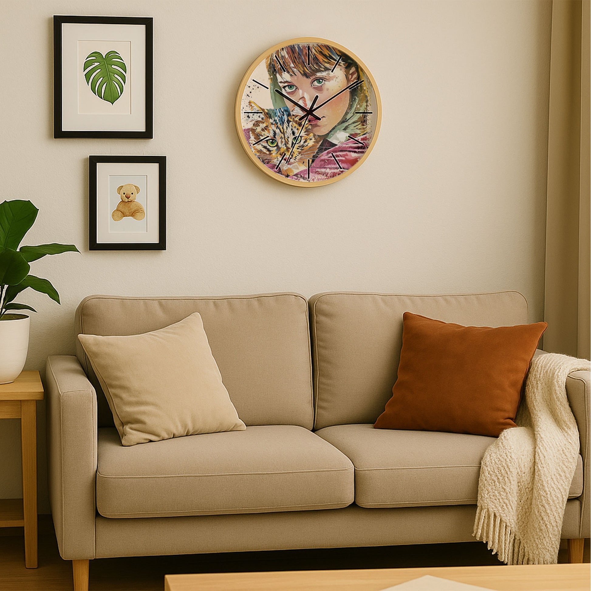 "Some memories are too precious to fade—like the gentle weight of him sleeping at the foot of my bed, or the soft jingle of his collar echoing down the hall. I wanted to hold onto those moments, to let them live on in something more lasting than thought. The illustration, with its dreamlike strokes and tender details, felt like giving those memories a gentle shape. Now, as the clock marks each hour, it feels like his presence still moves with time—not gone, just transformed into something quiet, beautiful, and forever part of my days."