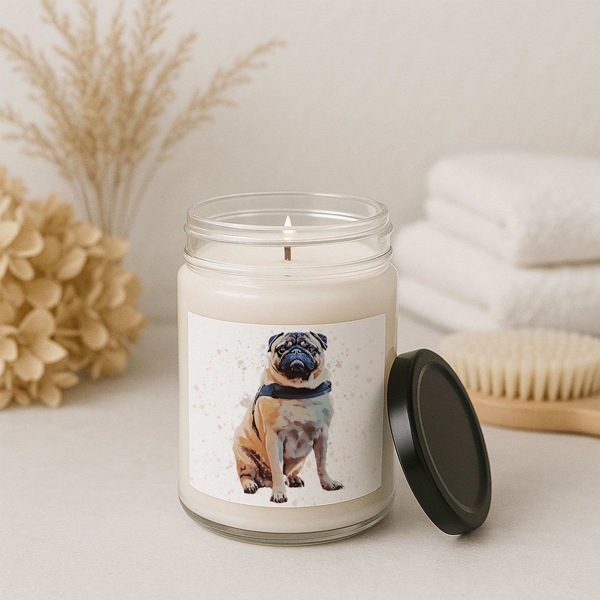Elevate your space with the warm glow and immersive aromas of our premium soy candles. Hand-poured into a sleek 9oz glass jar, each candle is crafted with care using a 100% natural soy wax blend, cotton wick, and finished with a glossy permanent label featuring your custom design.