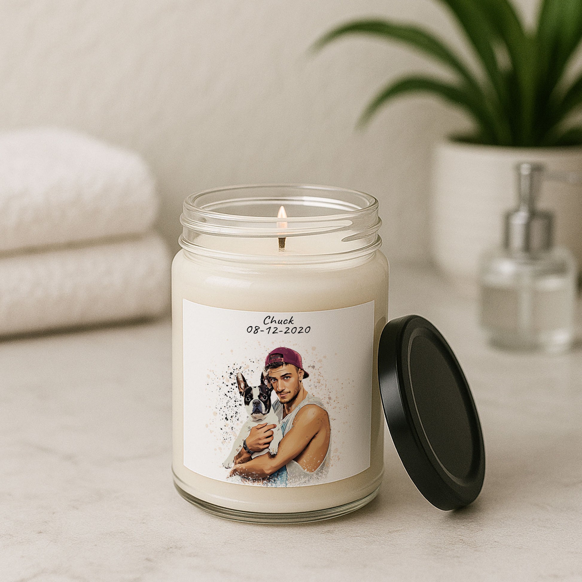 "There’s a moment I always want to remember—the way my pet curls up in a patch of sunlight, eyes half-closed, completely at peace. It’s a quiet, tender scene that feels both fleeting and eternal. I wanted to hold onto that softness, that calm, so I chose to have it turned into gentle, personalized art. Now, every time I light the candle, its warm glow and soothing scent bring that serene moment back to life, wrapping the room in the same comfort and love we share in our brightest, softest hours together."