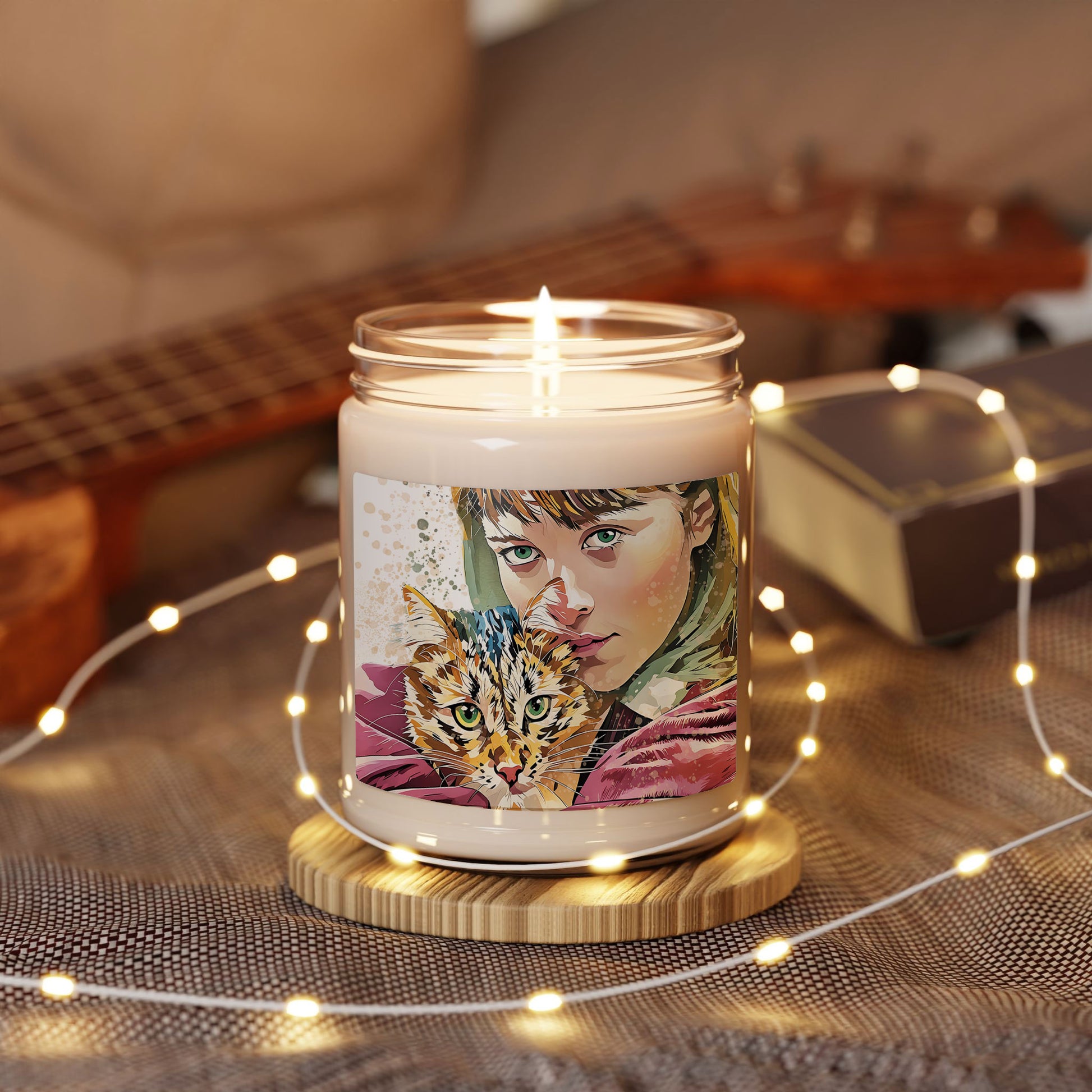 Personalized Photo to Illustration Pet Moment 9oz. Scented Soy Candle Digital Art Style Animal Lover Gift