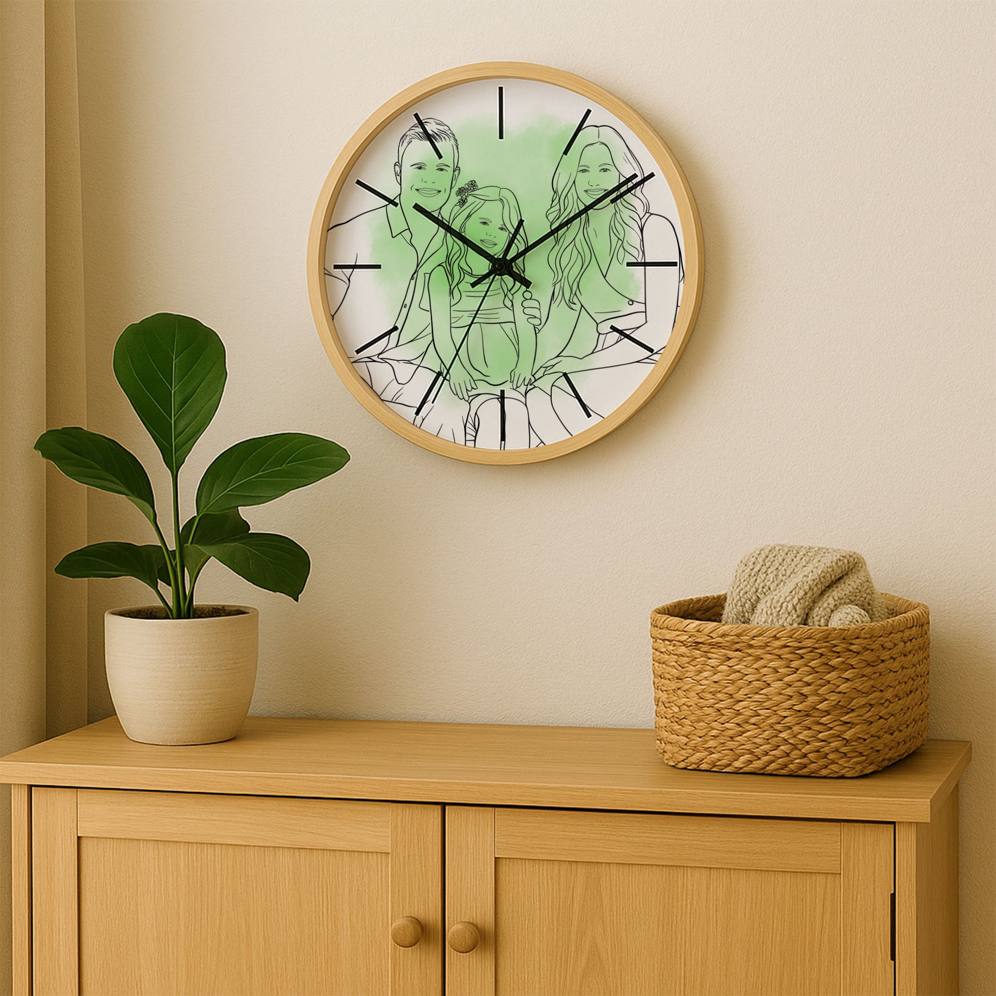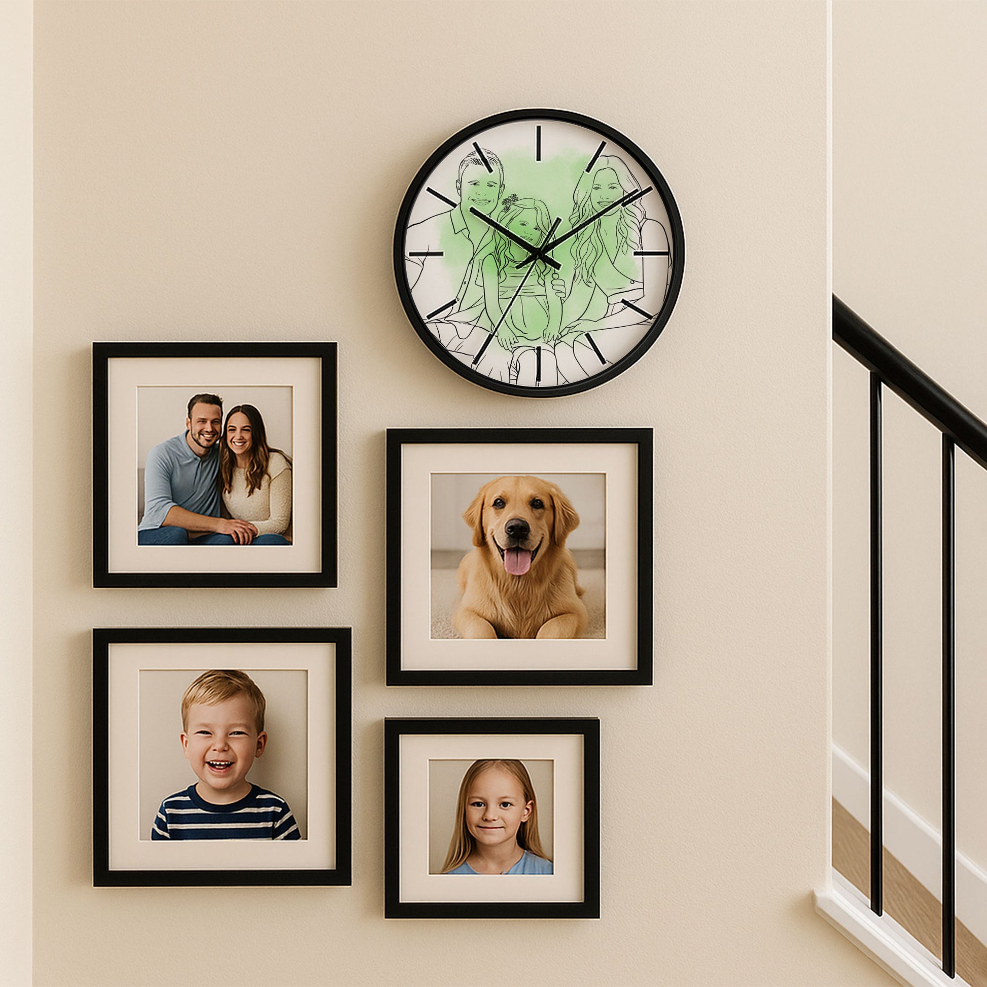 "I wanted to give my parents something that celebrated all they are—not just on Father's Day, Mother's Day, or even their anniversary, but every ordinary day in between. I chose a photo from our last family picnic, all of us tangled together in laughter, and had it translated into soft line art. Now, it hangs in their kitchen as a clock, its hands moving gently over our connected silhouettes. Each tick marks another moment they’ve guided us; each glance toward it brings back the joy of that afternoon. It’s more than a gift—it’s a quiet thank you, forever counting the time they’ve given us."