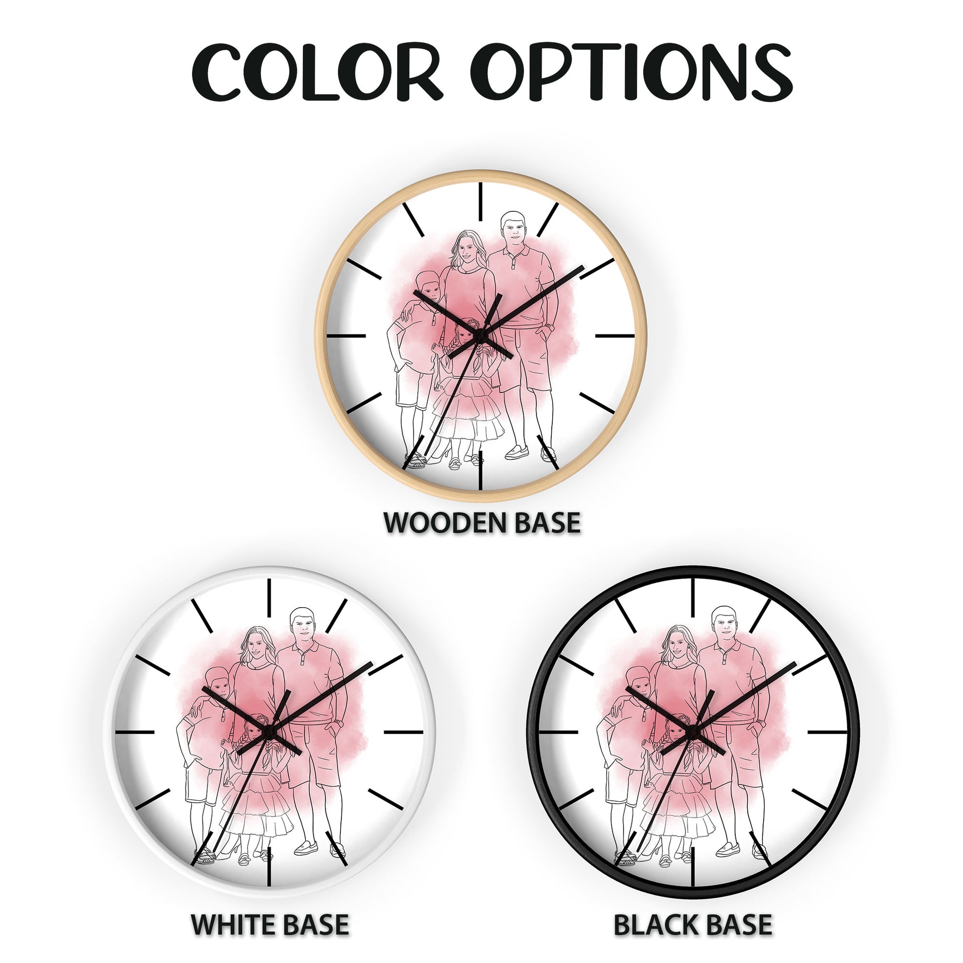 Personalized Photo to Line Art Family Portrait Wall Clock Minimalist Style Gift for Father, Mother's Day, or Anniversary