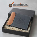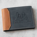- Color Options: The laser-engraved details provide a stunning contrast tailored to your chosen wallet color: Choose from our versatile color palette: Dark Brown, Black/Gold, Rawhide, Gray, Black/Silver, or Rustic/Gold.