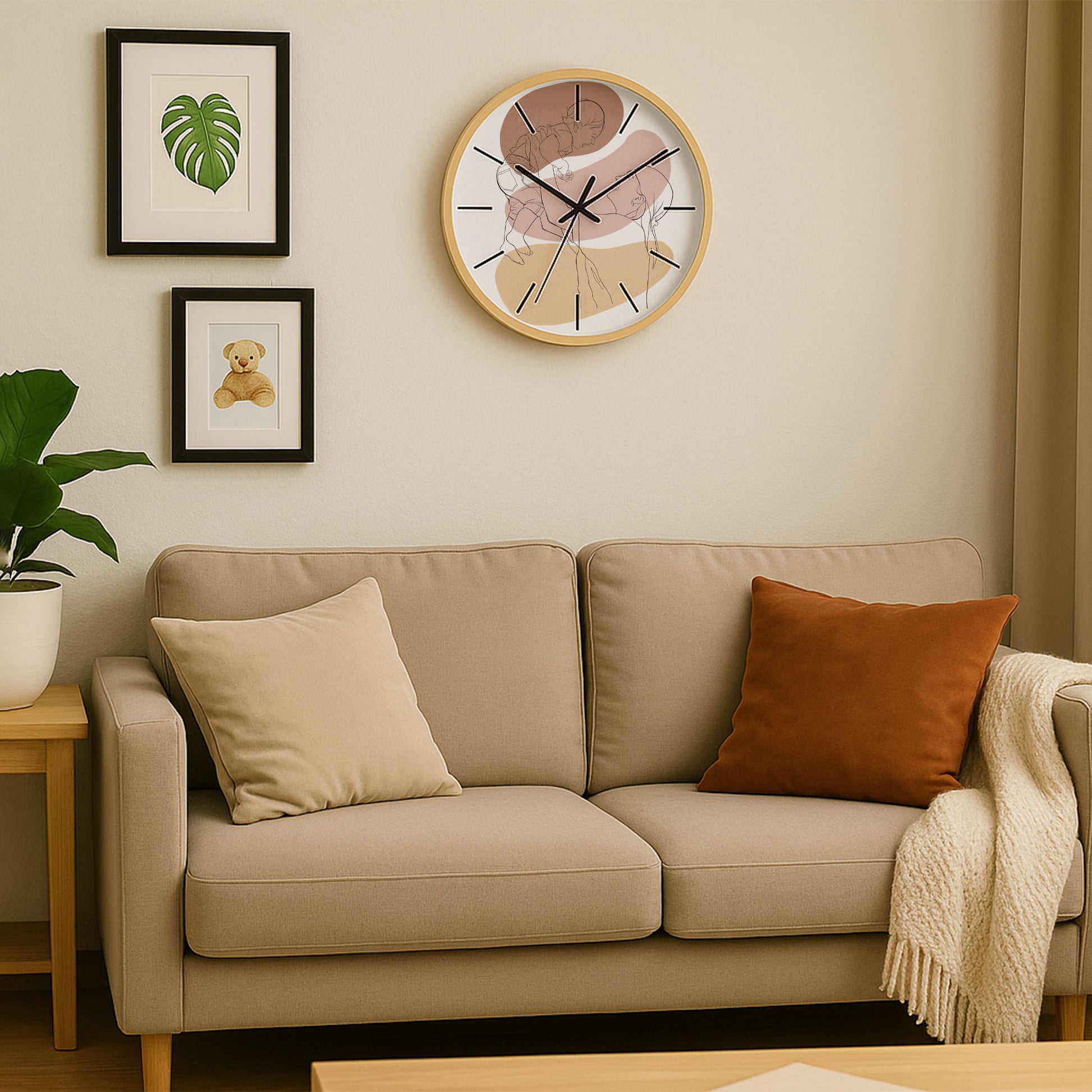 "I wanted to give our family a heartbeat for the home, a quiet witness to our shared time. I chose a line art portrait, where our faces were etched in elegant, continuous strokes, and placed it on a clock. Now, its hands sweep gently over our silhouettes, each tick a soft pulse of our life together. It hangs where we all gather, a constant reminder that while moments pass, the love that binds us—captured in those simple, beautiful lines—is the true center of our world, the anchor around which all our time revolves."