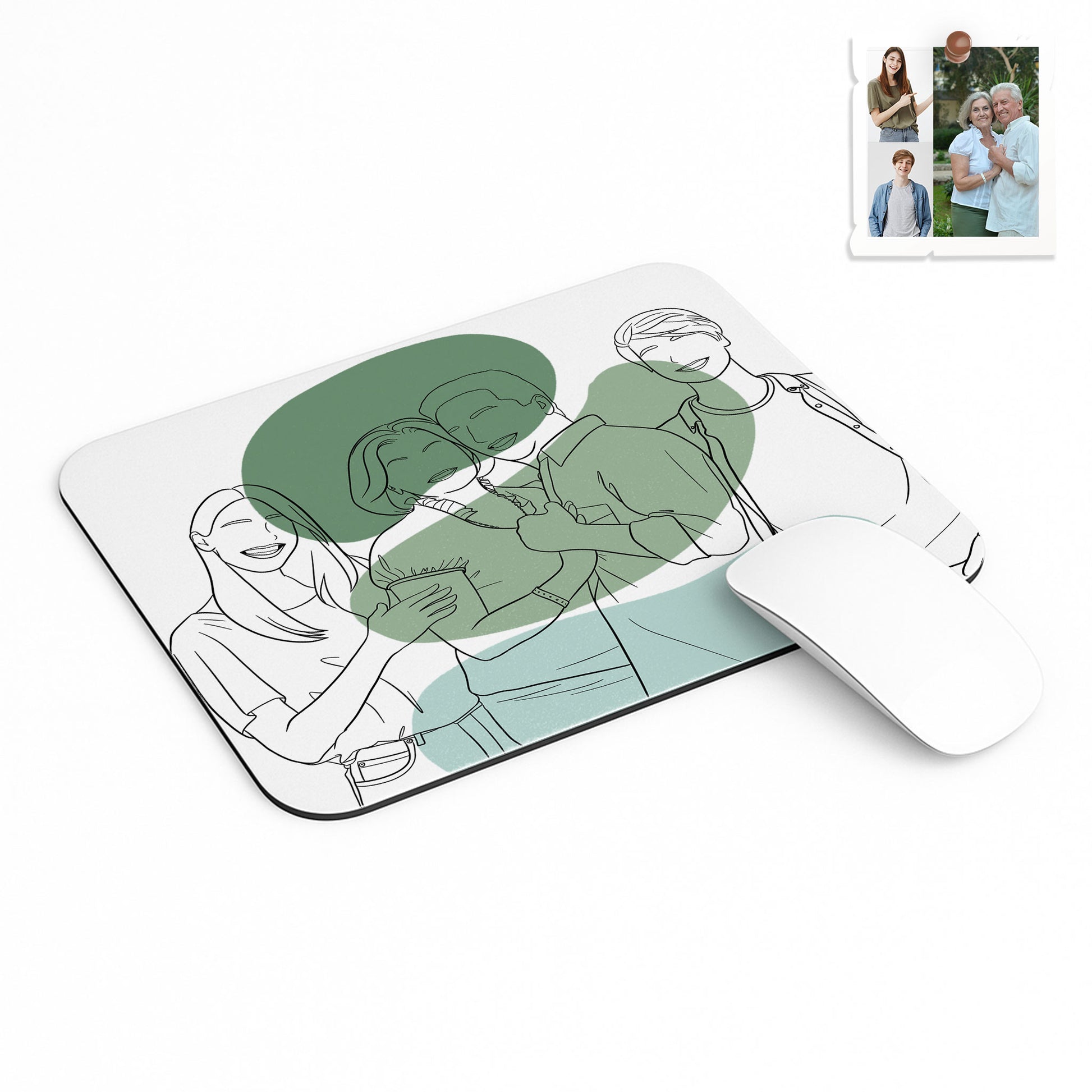 Personalized Turn Photo into Art Family Picture Rectangle Mouse Pad Line Art Style Couple Anniversary or Family Gift