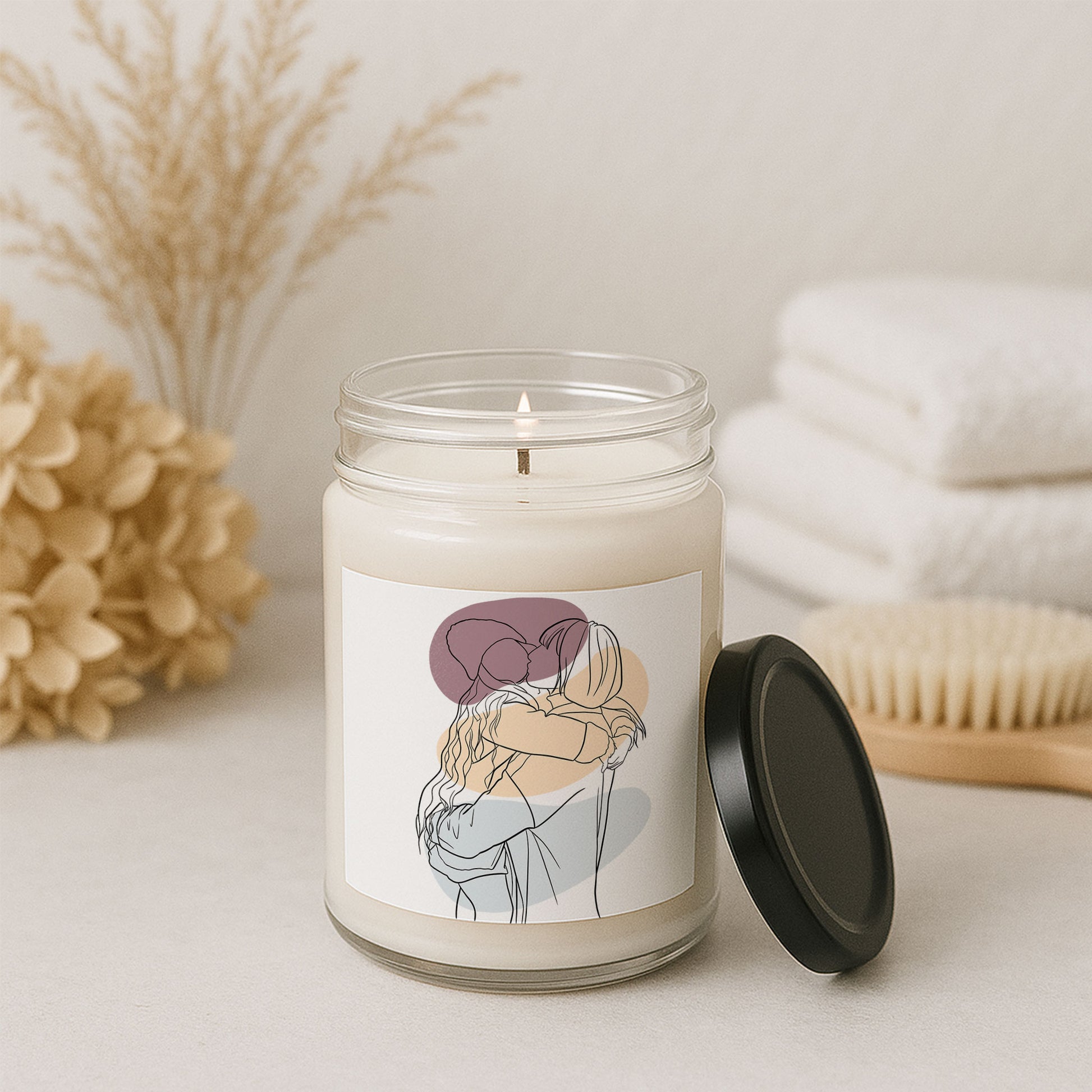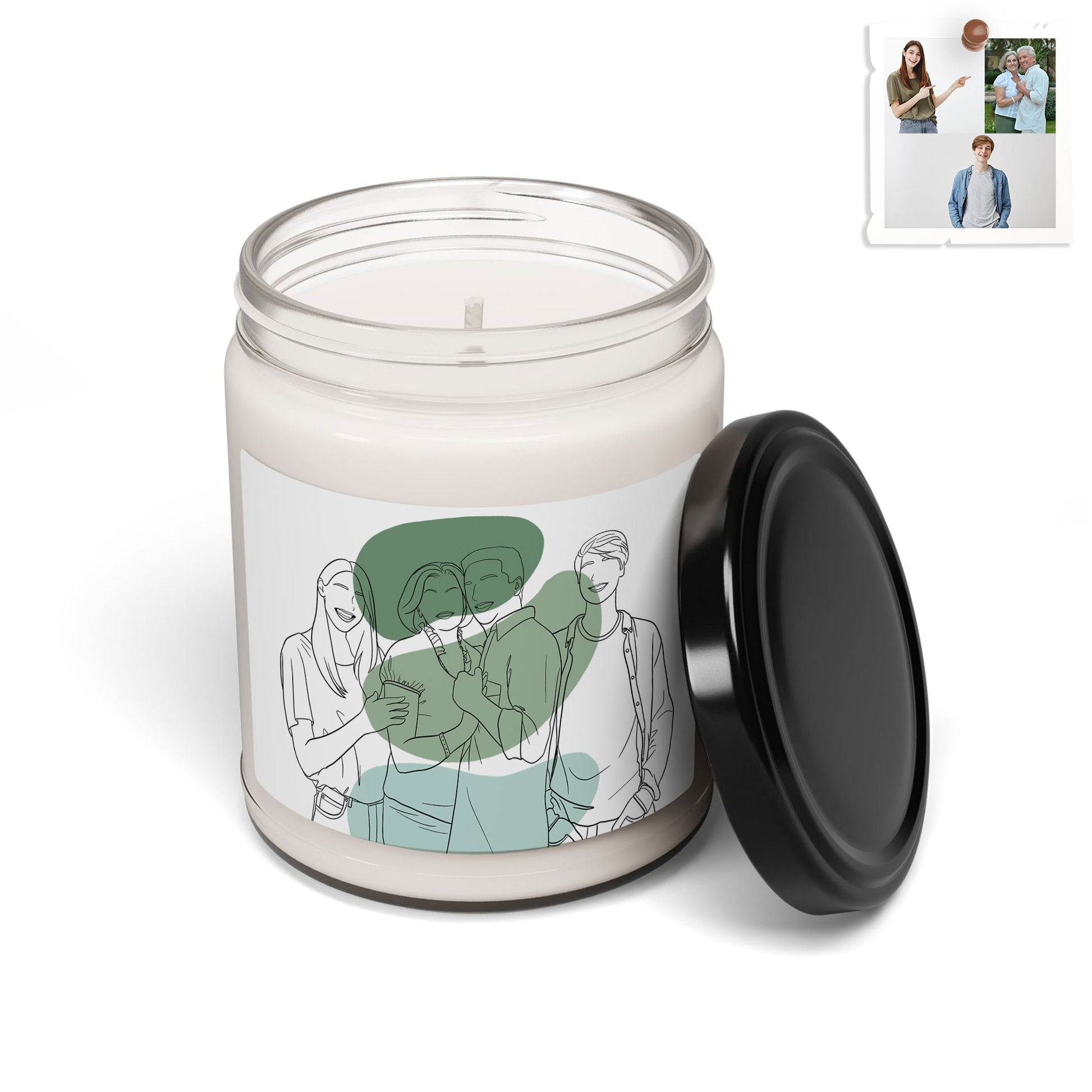 Personalized Turn Photo into Art Family Picture 9oz. Scented Soy Candle Line Art Style Couple Anniversary or Family Gift