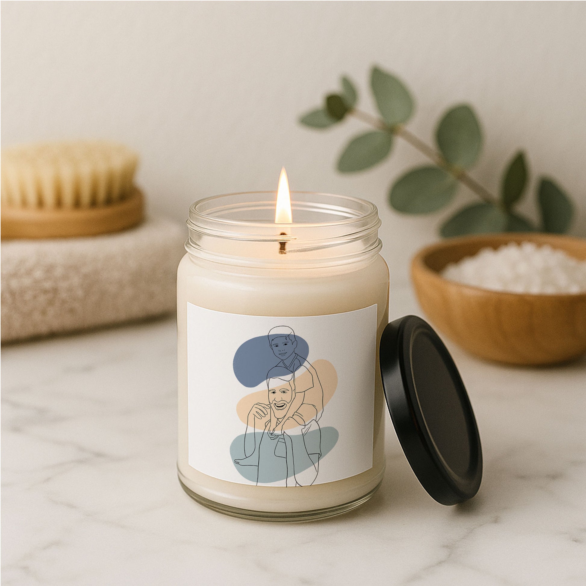 Elevate your space with the warm glow and immersive aromas of our premium soy candles. Hand-poured into a sleek 9oz glass jar, each candle is crafted with care using a 100% natural soy wax blend, cotton wick, and finished with a glossy permanent label featuring your custom design.