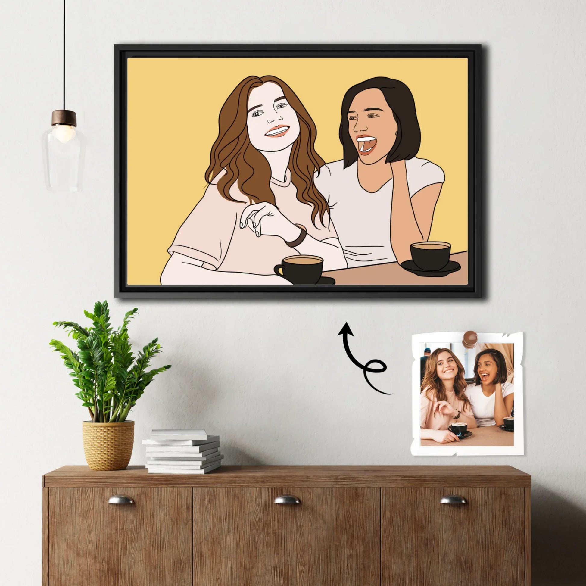 Personalized Photo to Doodle Friendship Picture Canvas Print Minimalist Style Best Friends Birthday or Anniversary Gift