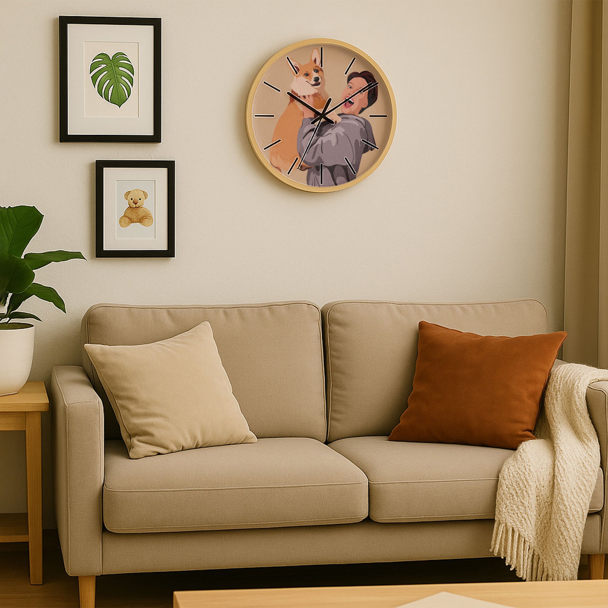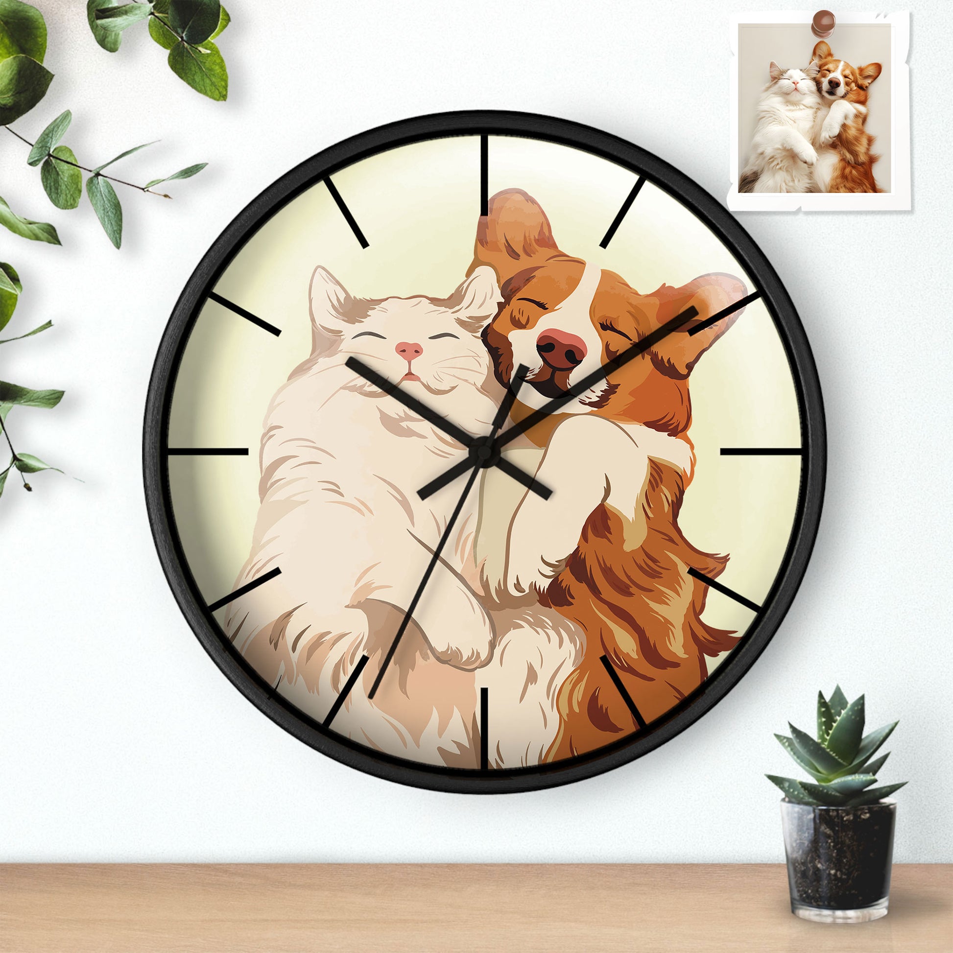 Personalized Turn Photo into Art Pet Illustration Wall Clock Digital Art Style Pet Memorial or Pet Lover Gift
