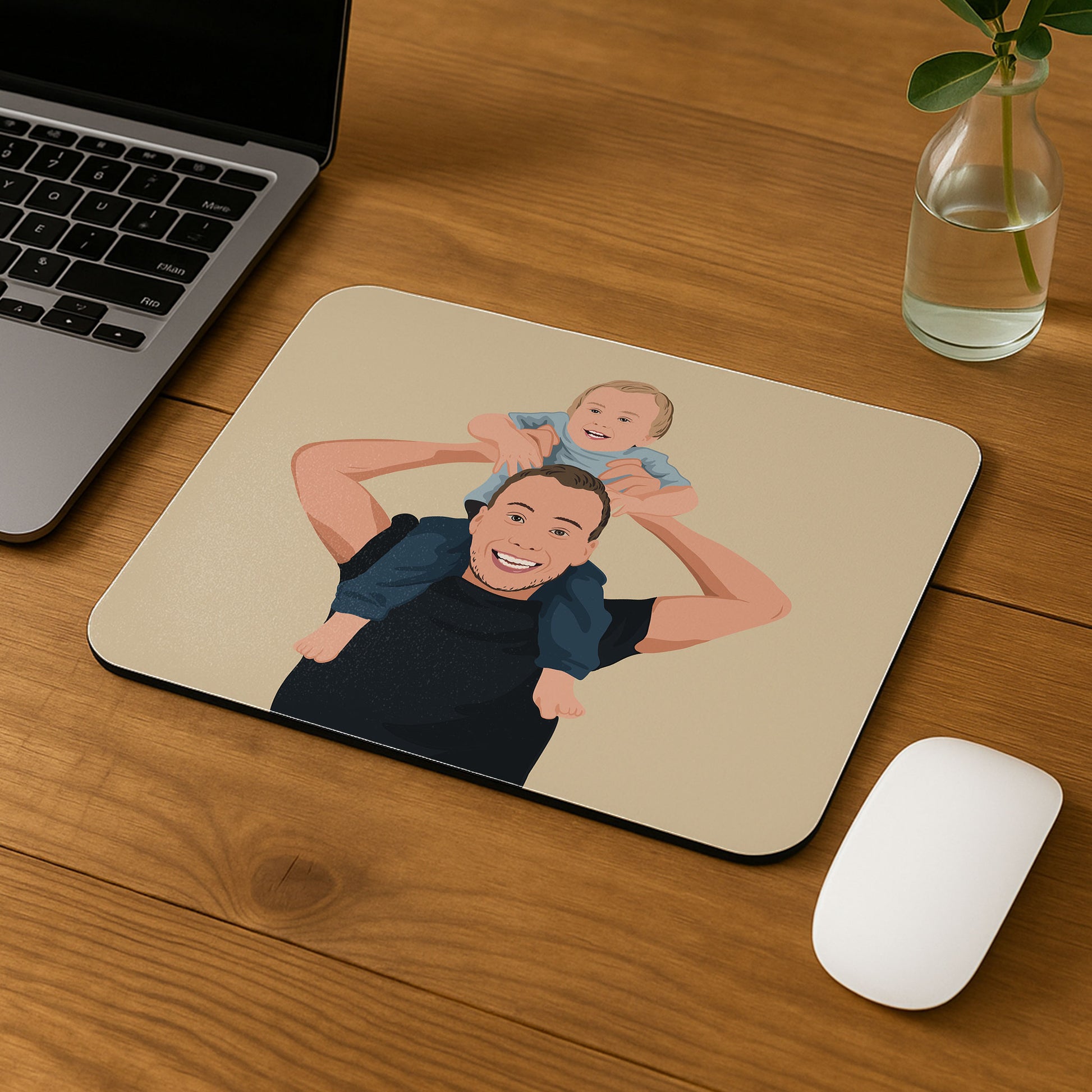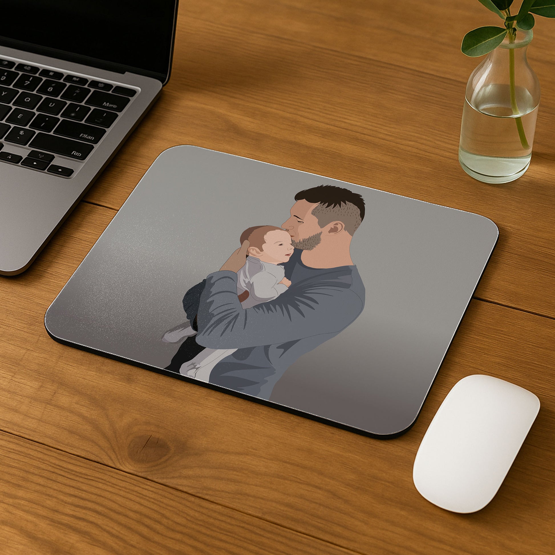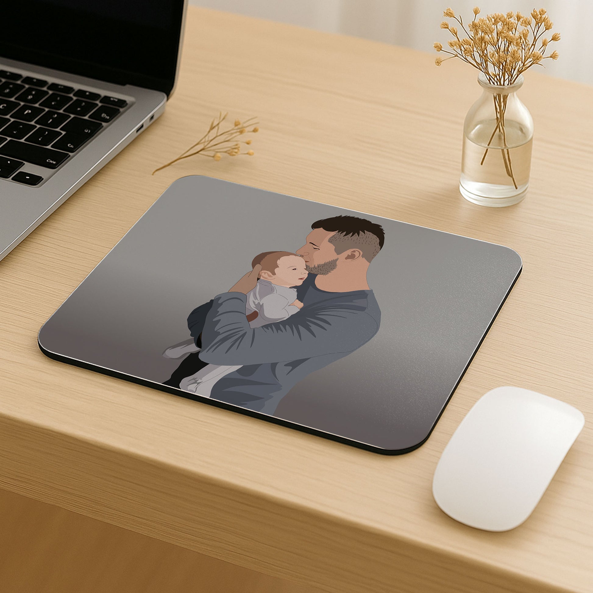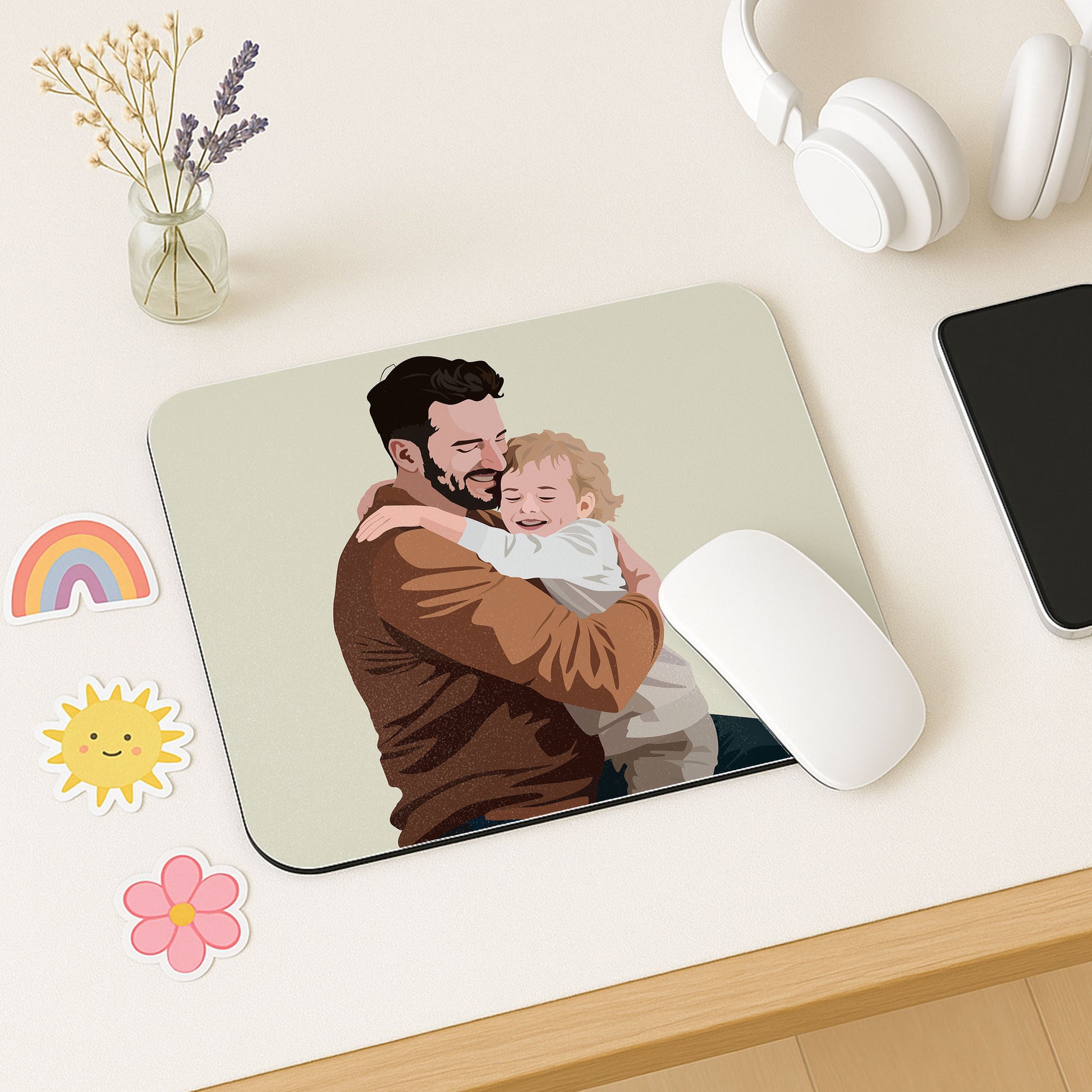 Personalized Turn Photo into Art Dad Portrait Rectangle Mouse Pad Illustration Style Father's Day Gift