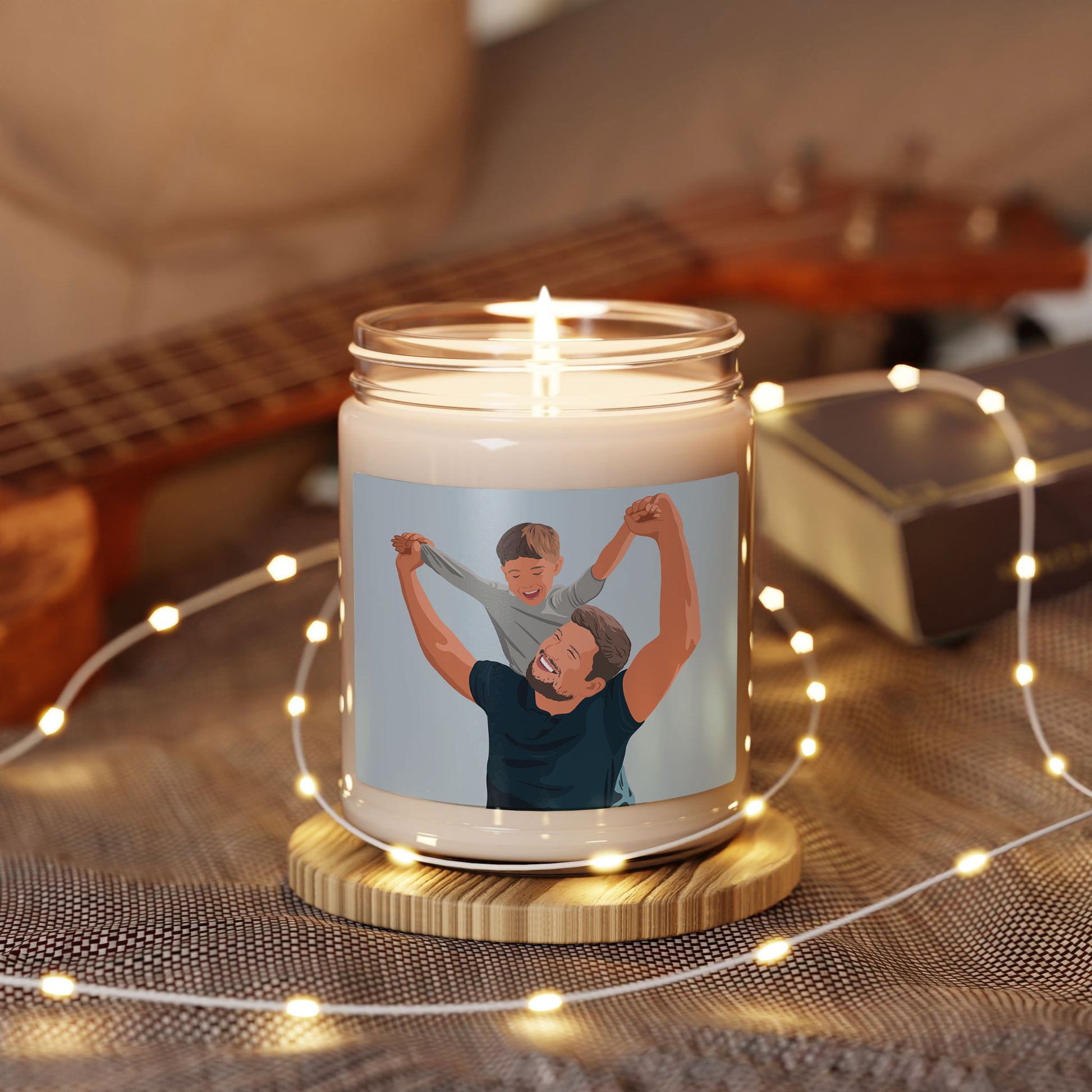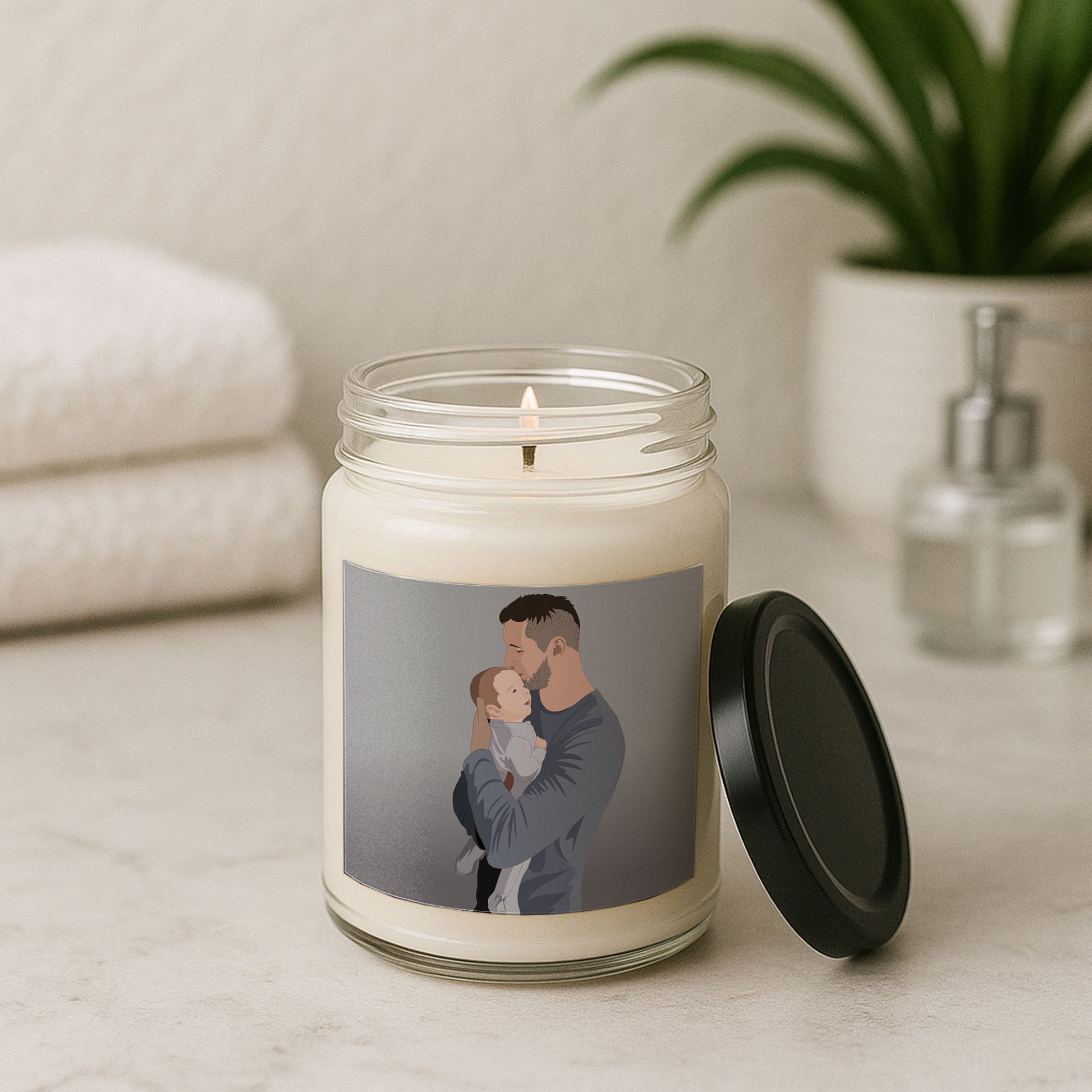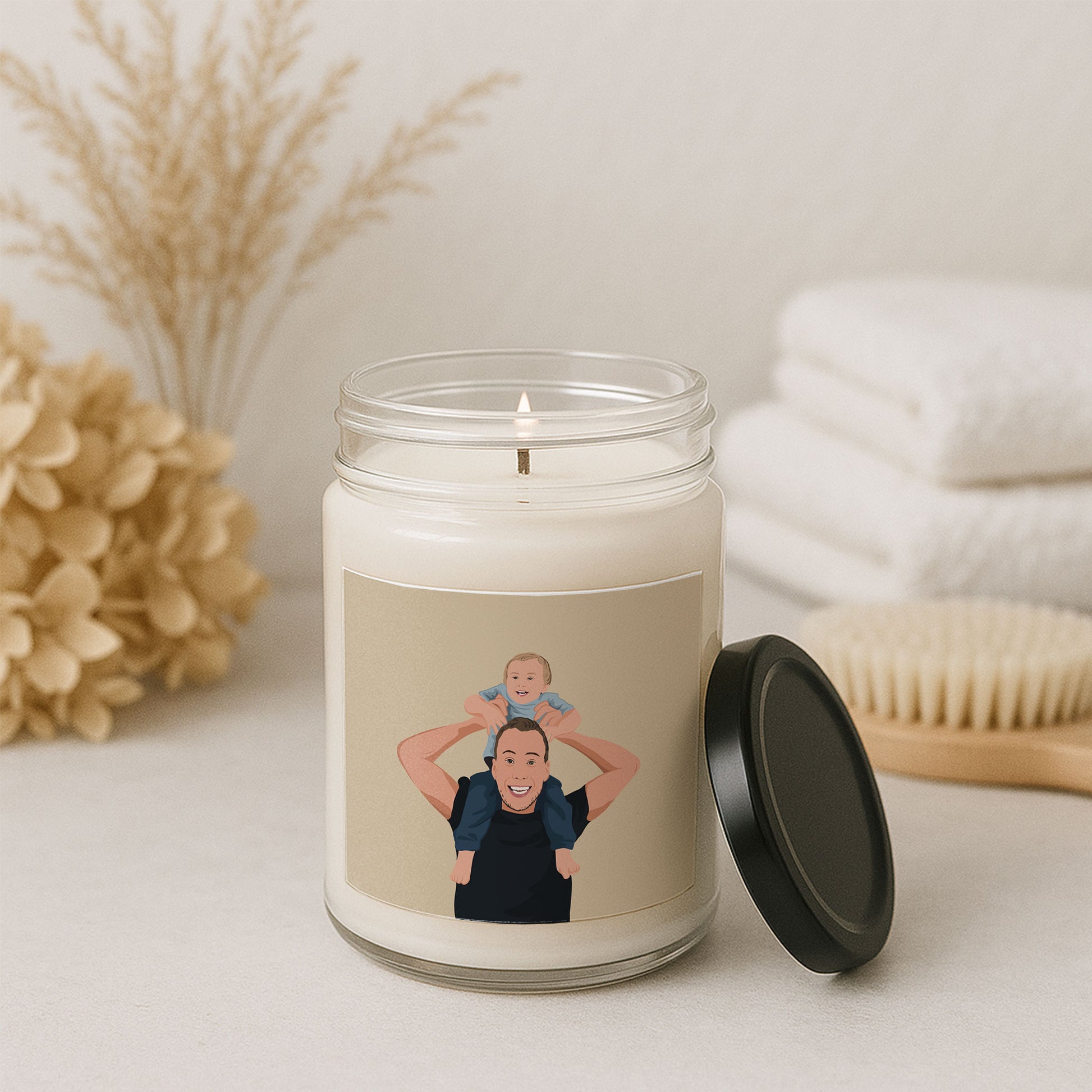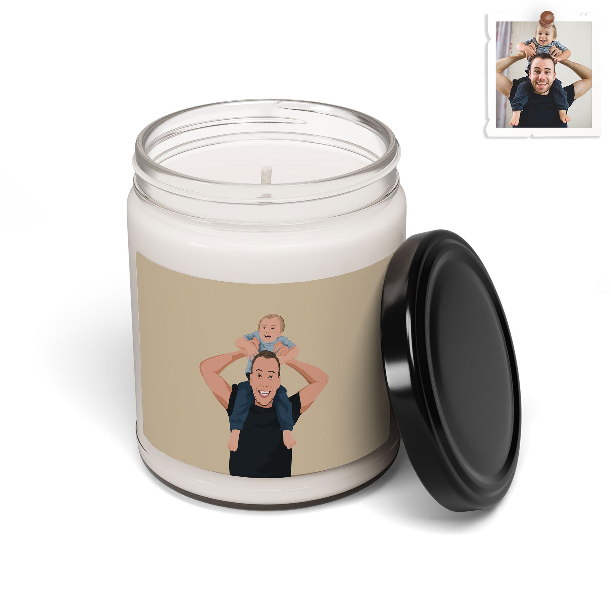 Personalized Turn Photo into Art Dad Portrait 9oz. Scented Soy Candle Illustration Style Father's Day Gift
