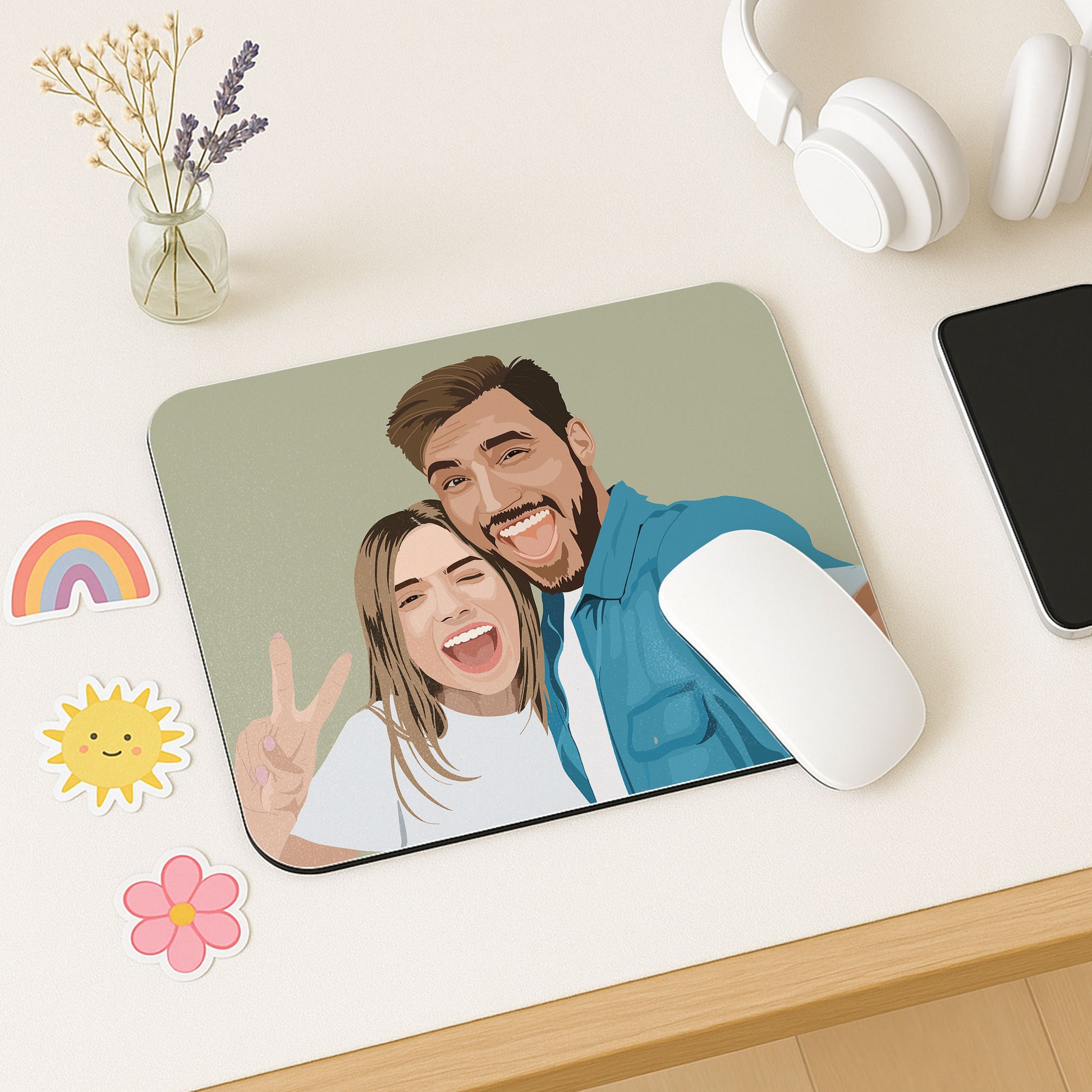 Personalized Picture to Drawing Wedding Portrait Rectangle Mouse Pad Illustration Style Unique Gift for Newlyweds and Wedding Anniversary