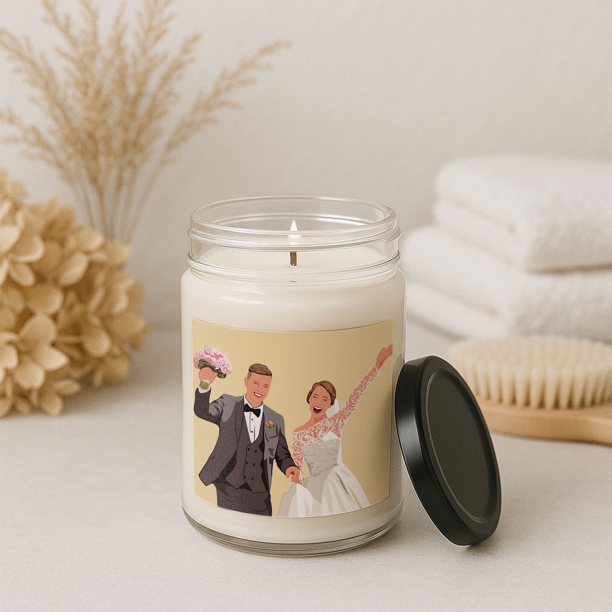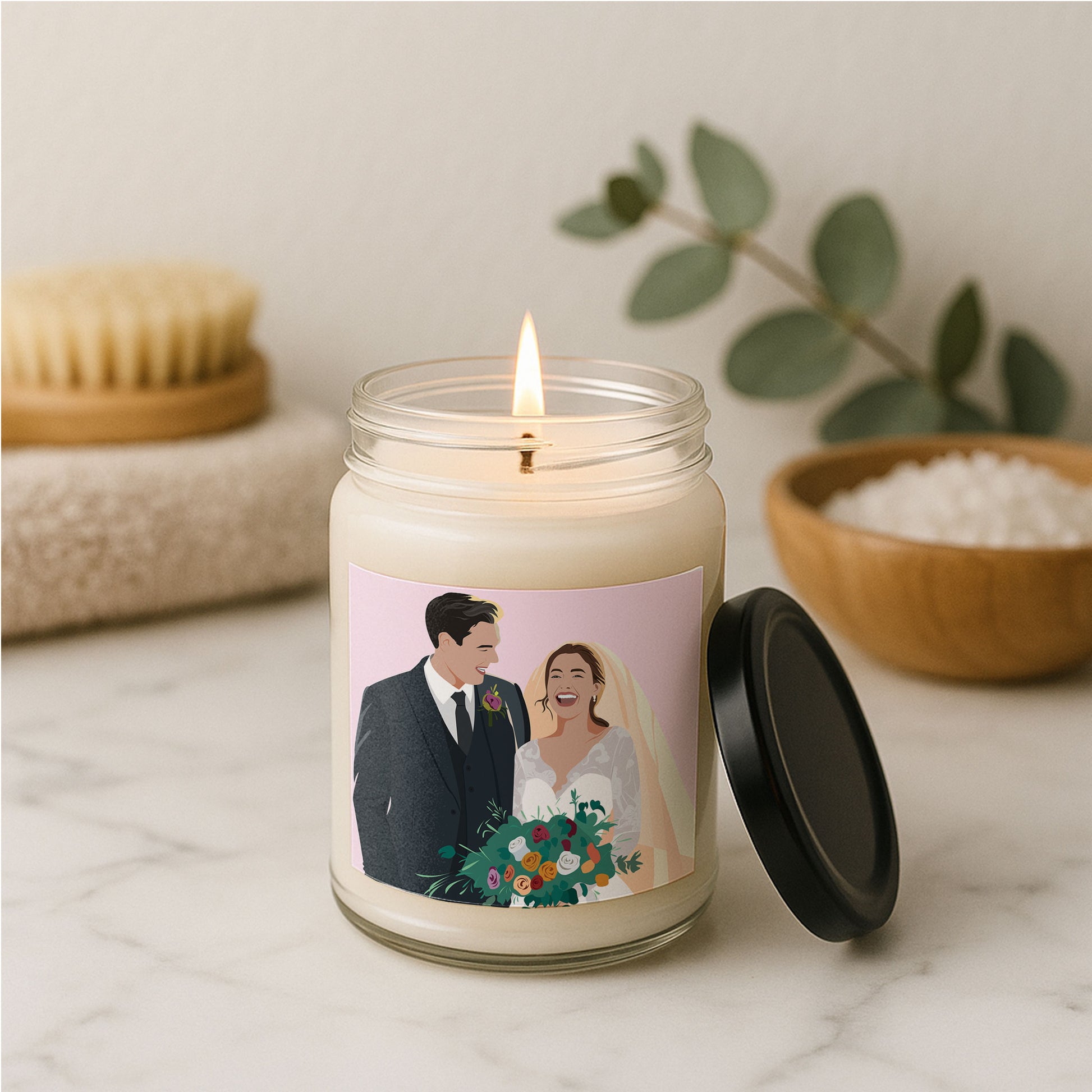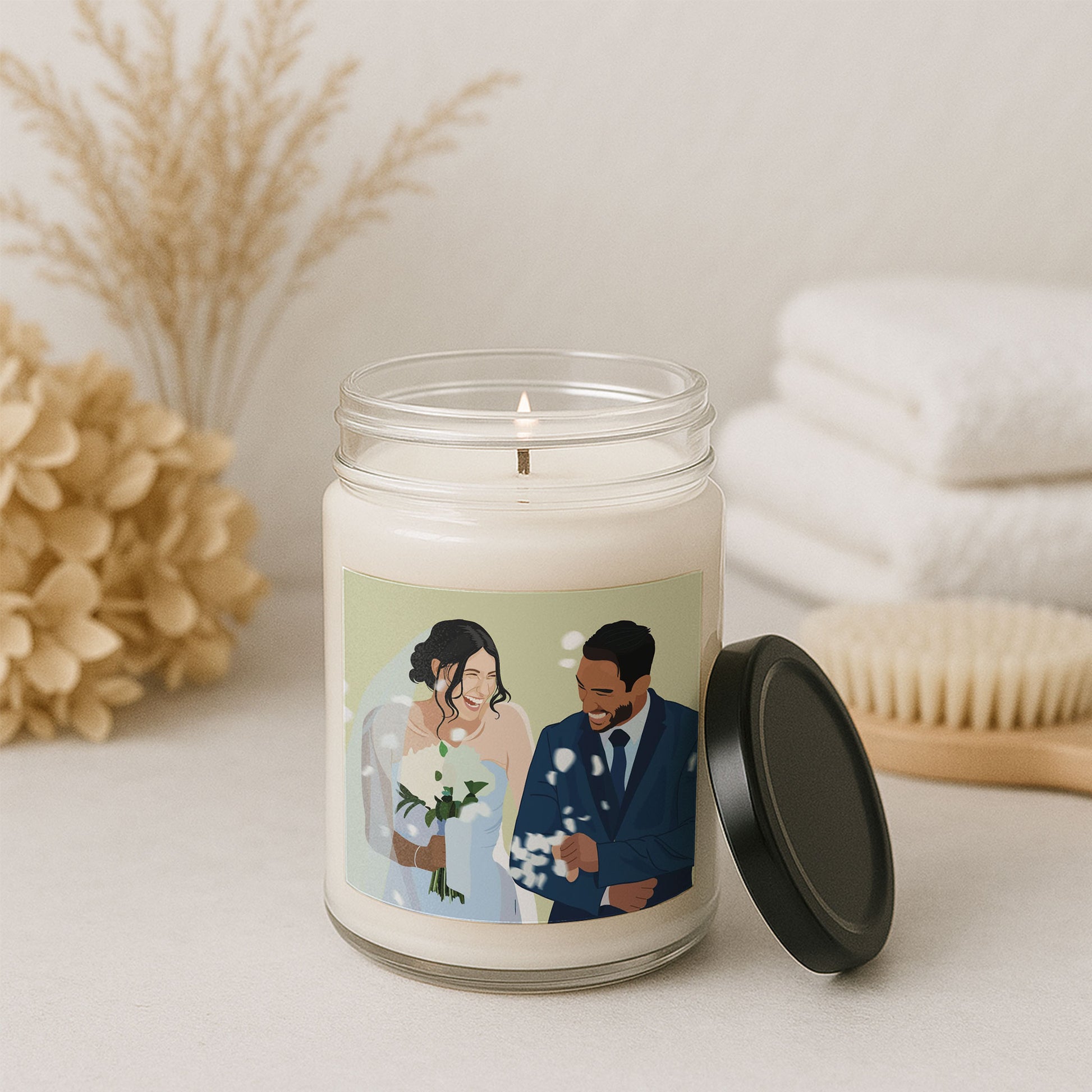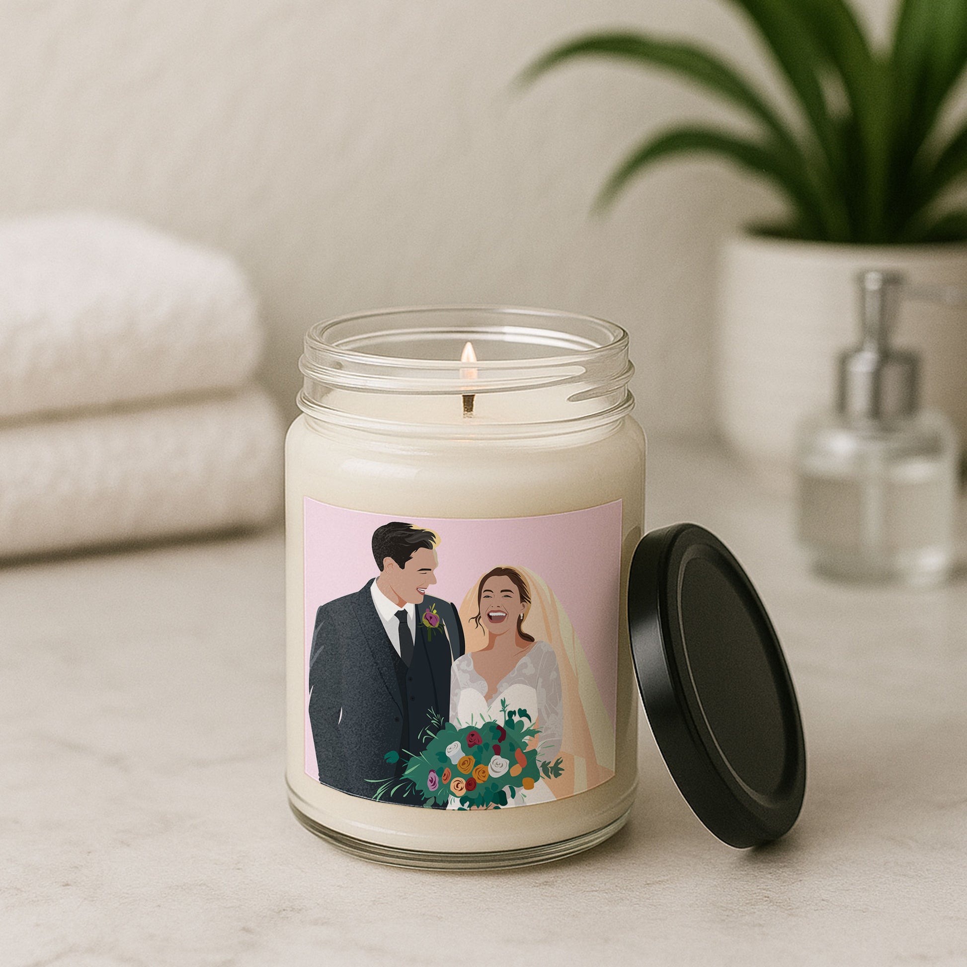 Personalized Illustration from Photo Wedding Portrait 9oz. Scented Soy Candle Digital Art Style Unique Gift for Newlyweds and Wedding Anniversary