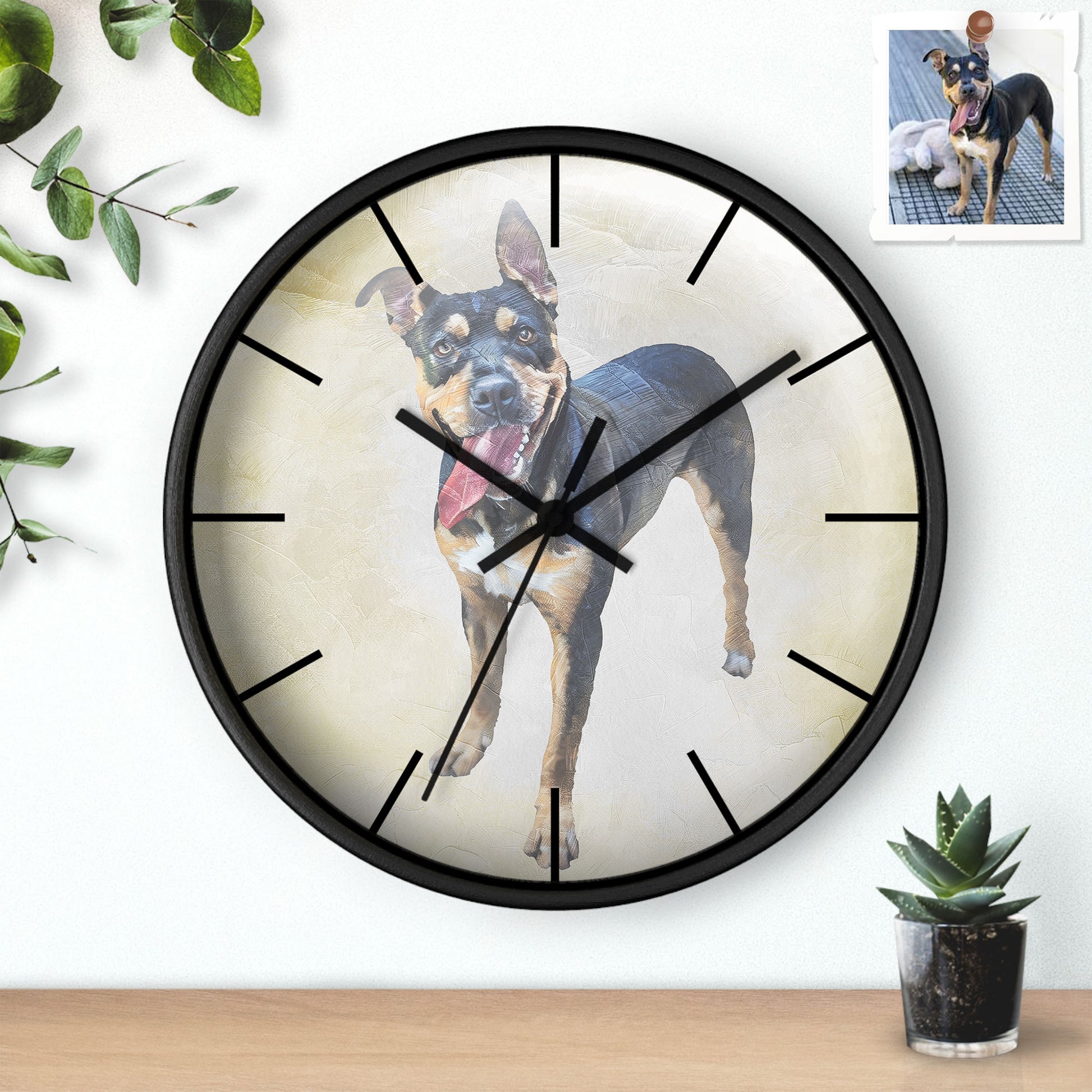 Custom Turn Photo into Art Pet Portrait Wall Clock Minimal Oil Painting Style Pet Lover Gift