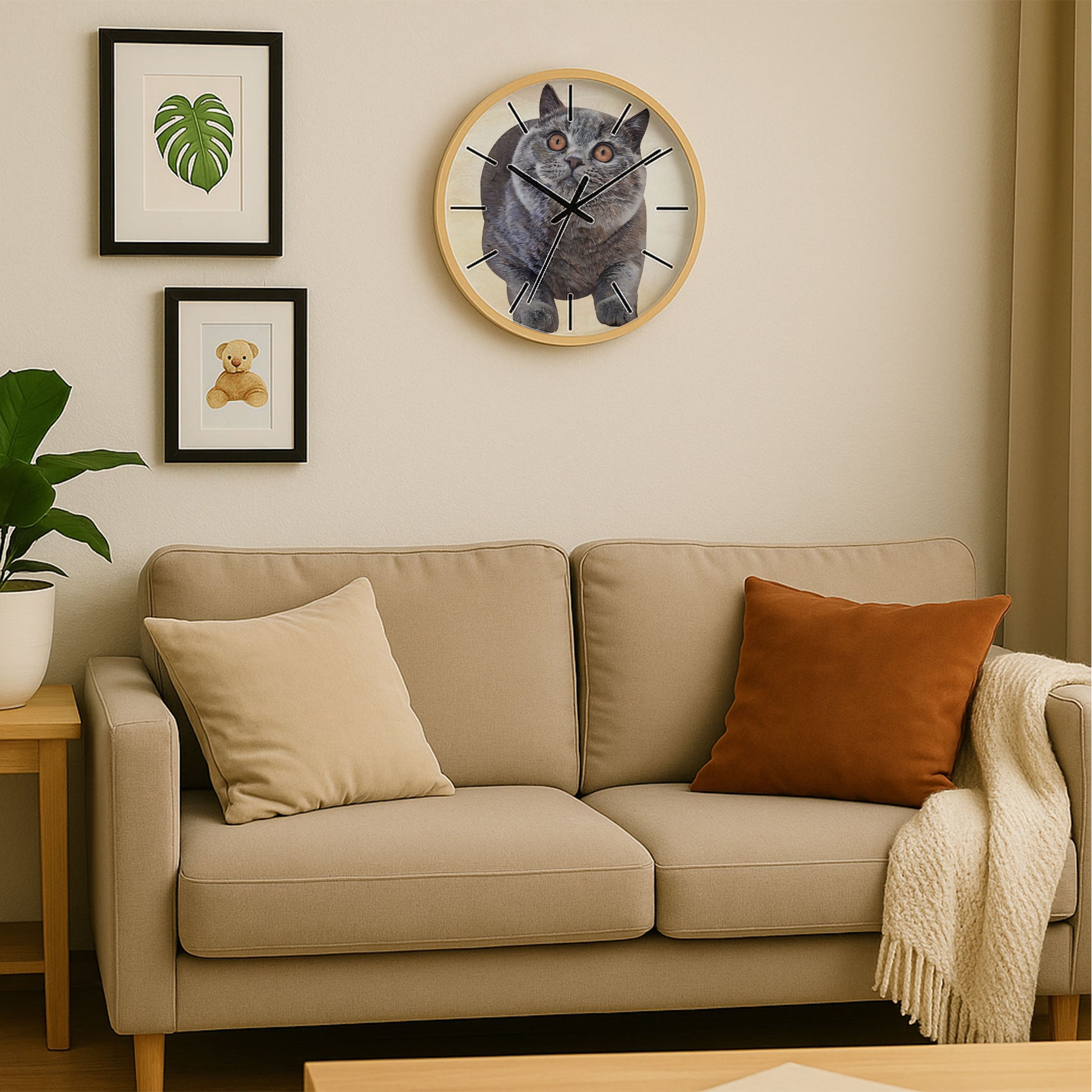 "There was something about their quiet dignity—the way the light caught their fur, the stillness in their gaze—that a photograph could never truly honor. I imagined them not in vivid detail, but in essence: subtle tones, soft contrasts, the soul behind the eyes rendered in thoughtful, minimal strokes. The oil painting style lent their portrait a timeless, almost reverent quality—a quiet masterpiece for my everyday moments. Now, as the clock’s hands circle their image, time itself feels slower, softer, as if pausing to admire the graceful simplicity of the companion who made my world whole."
