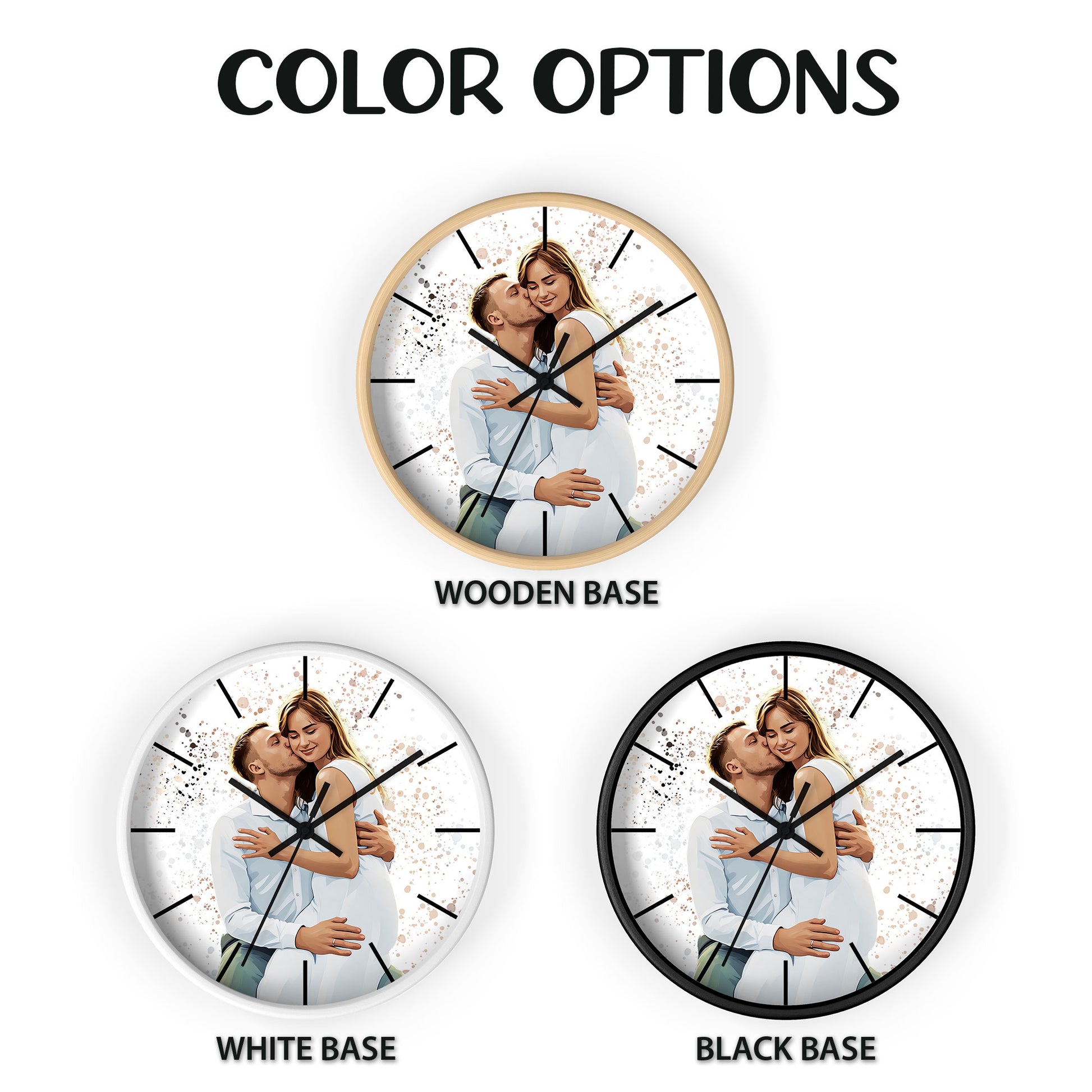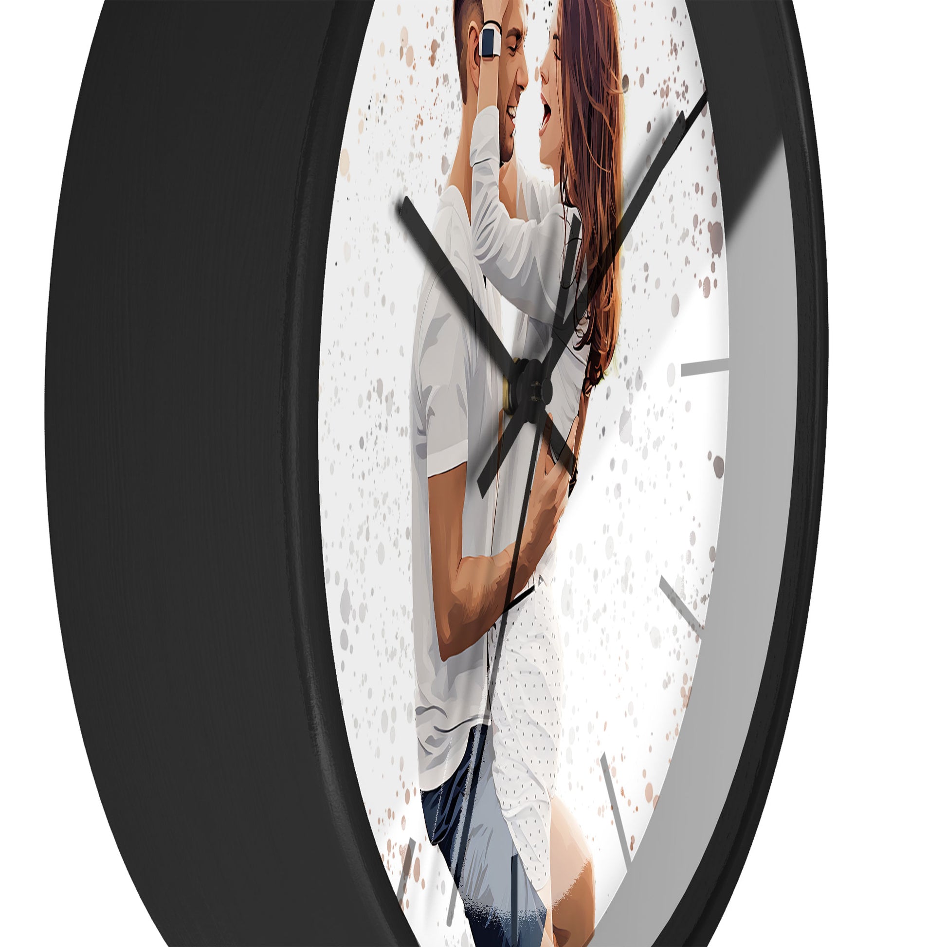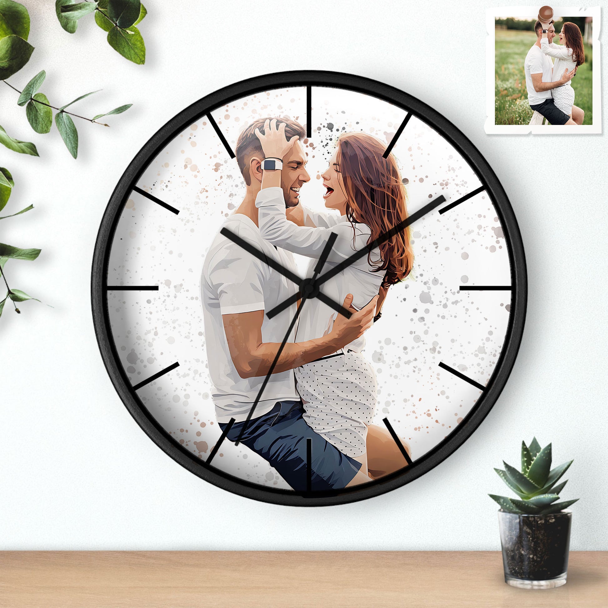 Custom Turn Photo into Art Couple Moment Wall Clock Illustration Style Romantic Gift
