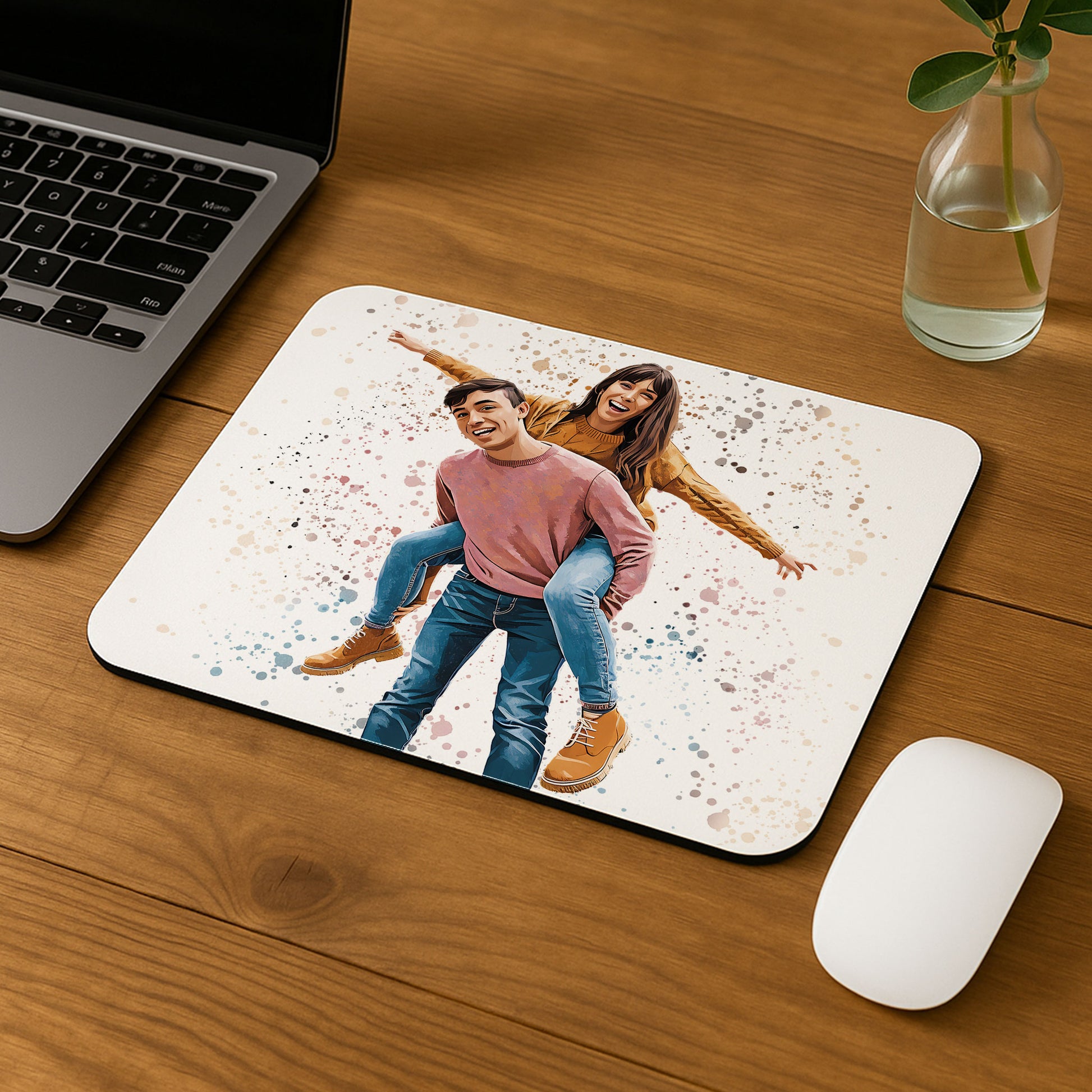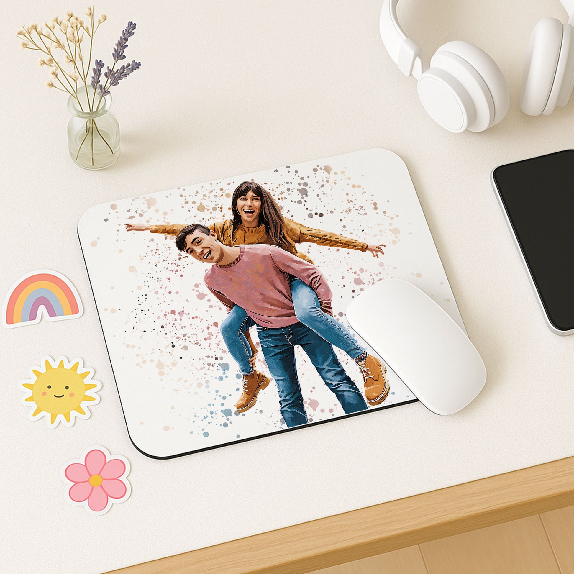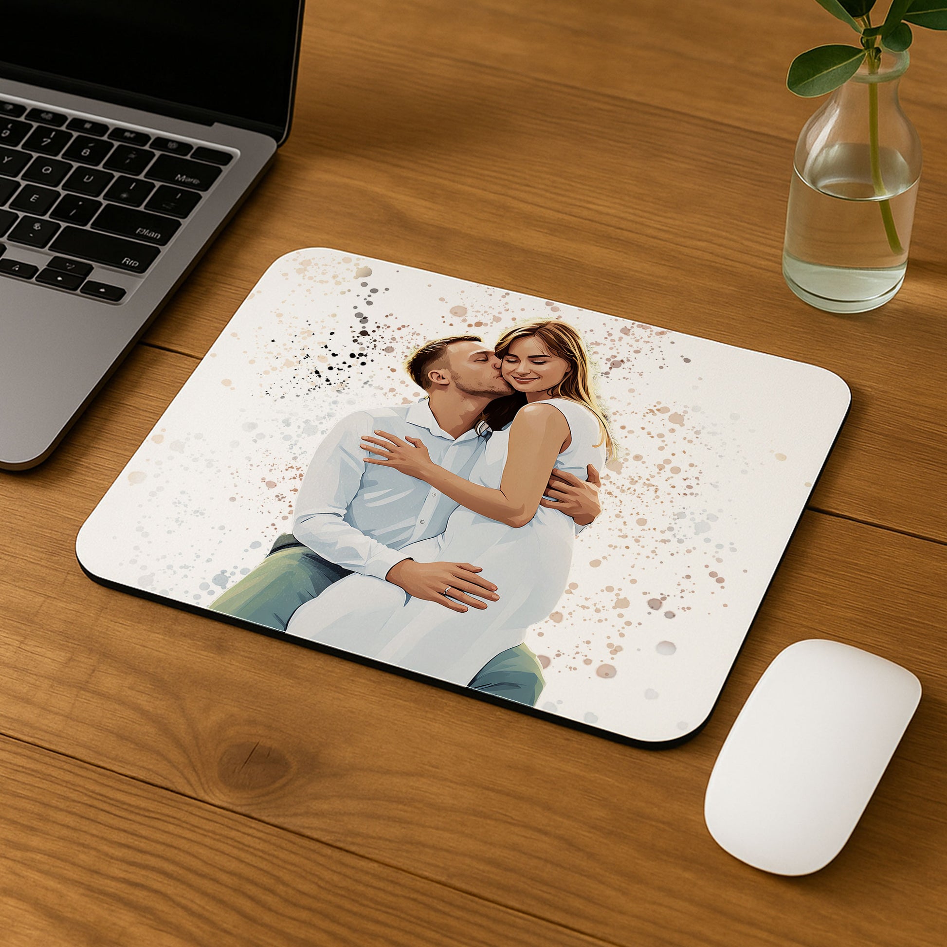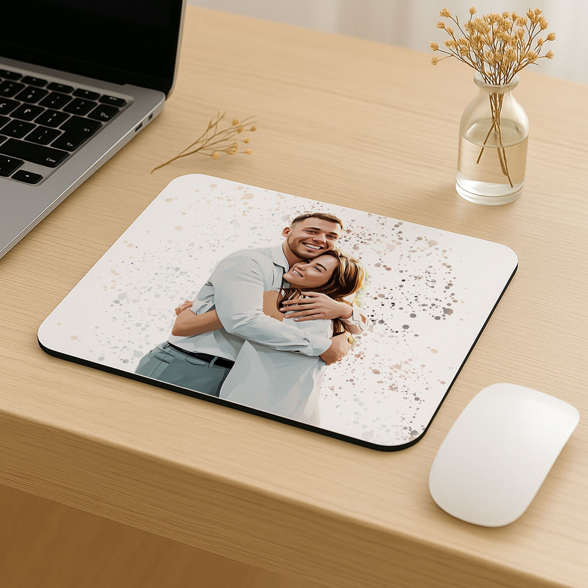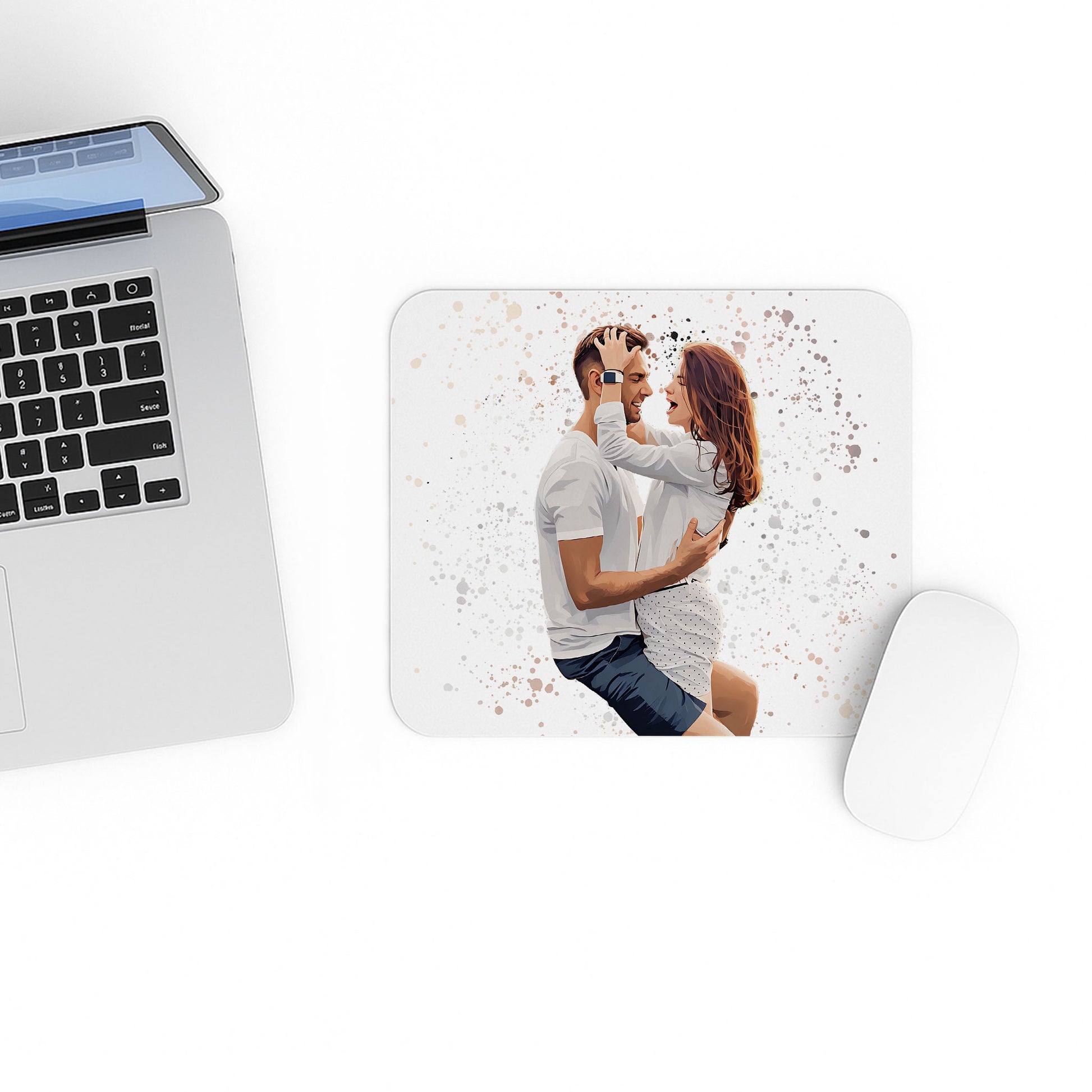Custom Turn Photo into Art Couple Portrait Rectangle Mouse Pad Illustration Style Gift For Couple