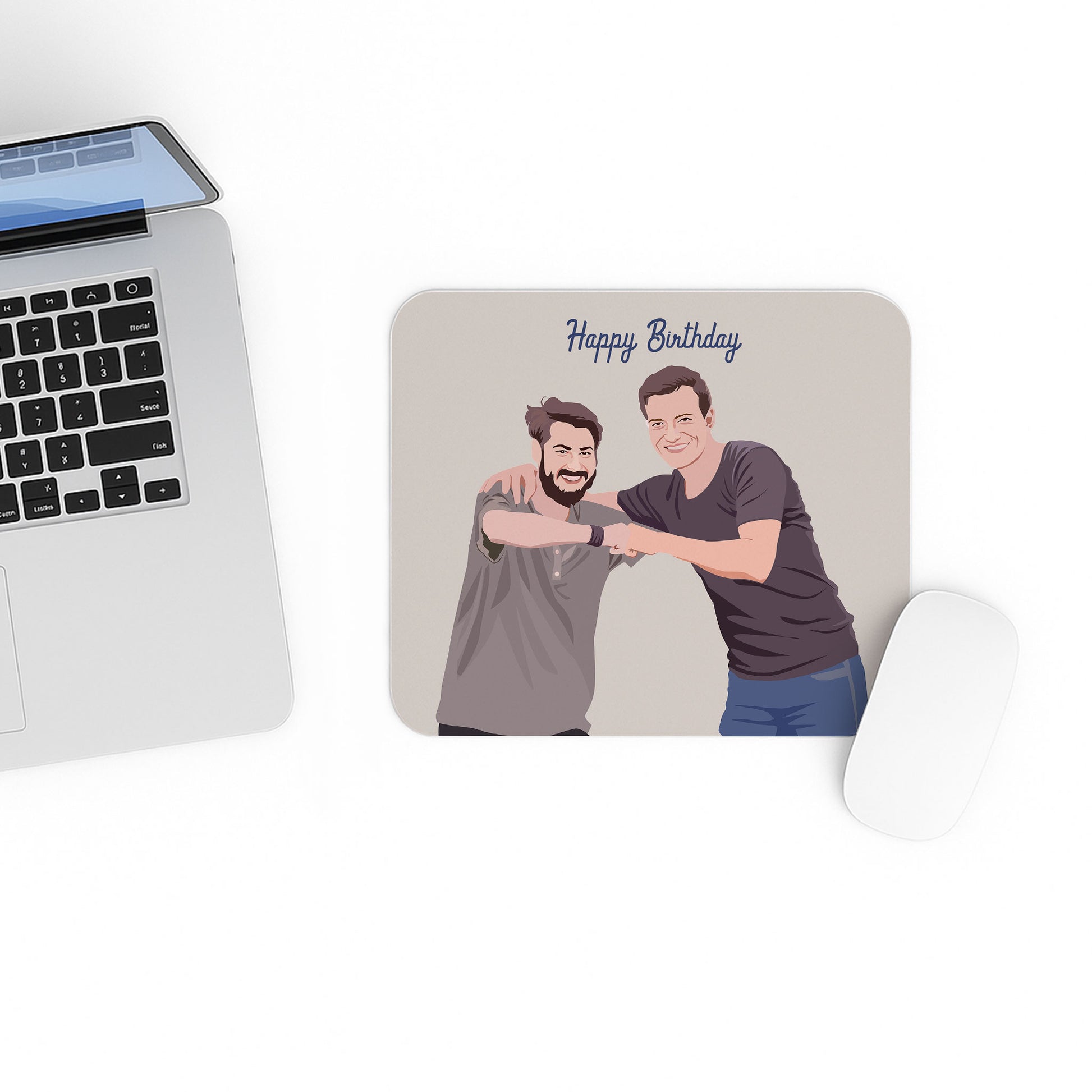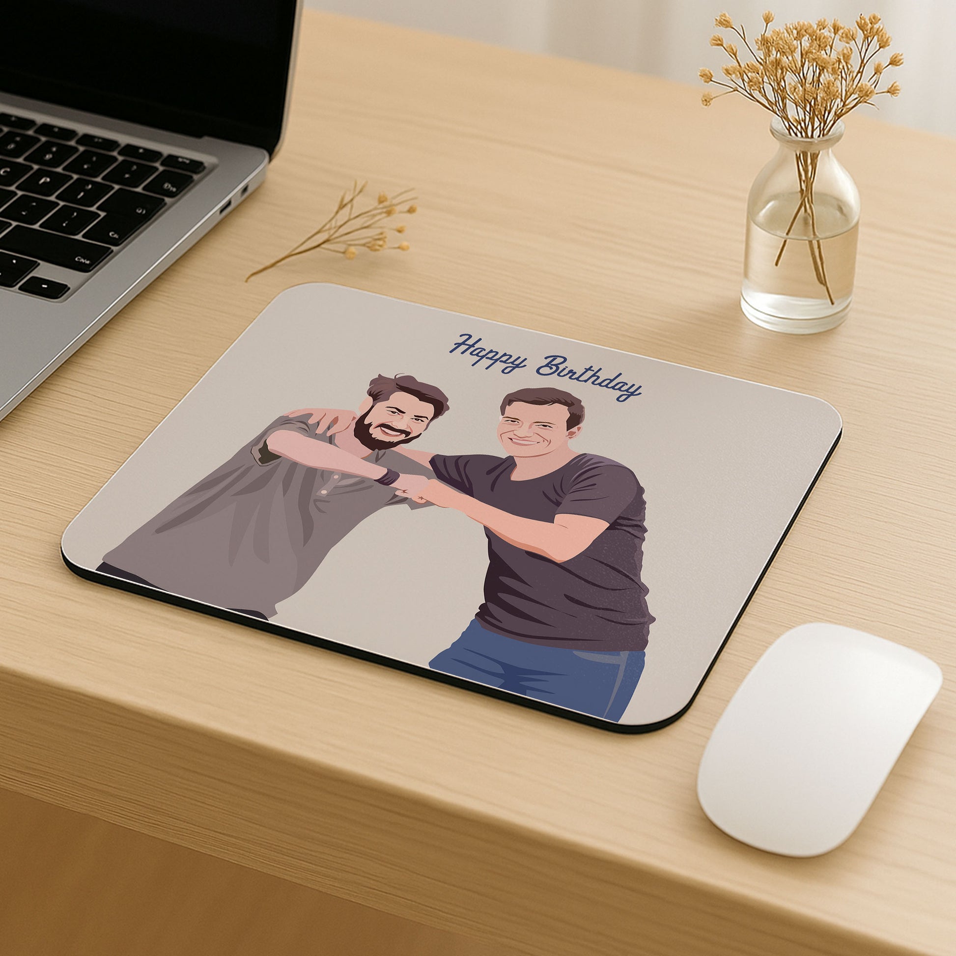Custom Turn Photo into Art Best Friend Portrait Rectangle Mouse Pad Illustration Style Thoughtful Friendship Gift